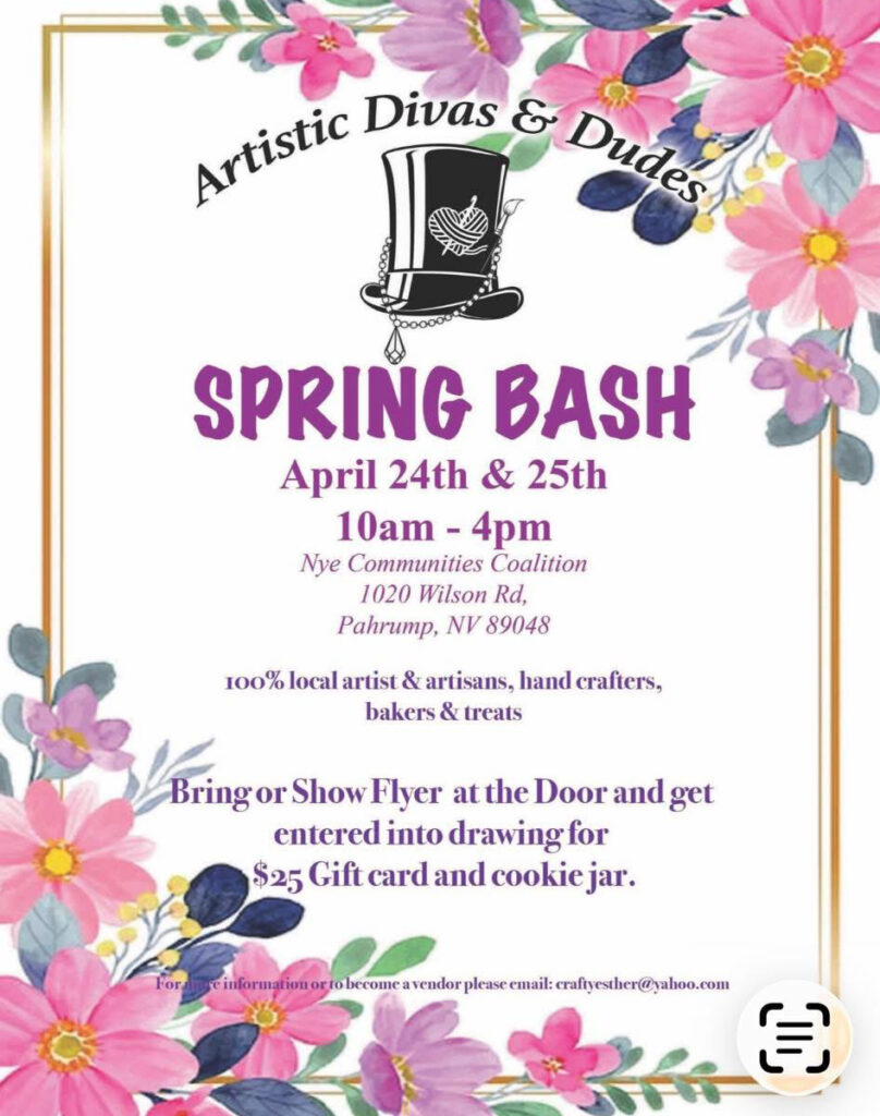 Set for April 24 and 25 from 10 a.m. to 4 p.m., the two-day event will take place at the Nye Communities Coalition, located at 1020 Wilson Road. The Spring Bash promises to bring together a wide variety of local talent, all in one place.