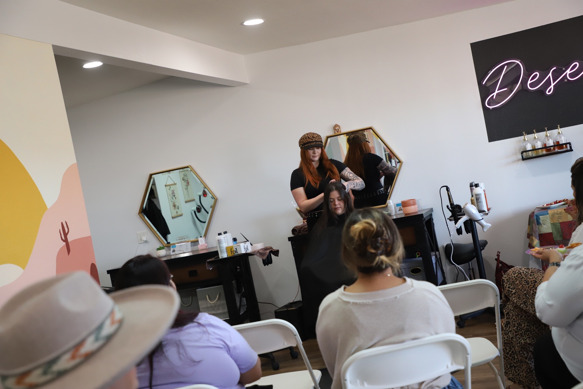 Stylists in attendance included Kami Saunders, Hailey Hosino, and Bianca Baron from Desert Lotus; Alex Olszanecki of Bella Salon; Mindy Coles of Today’s Image; and Stephanie Weske of New You. Misty Bowlin served as the model for the class, allowing participants to see each stage of the transformation up close.