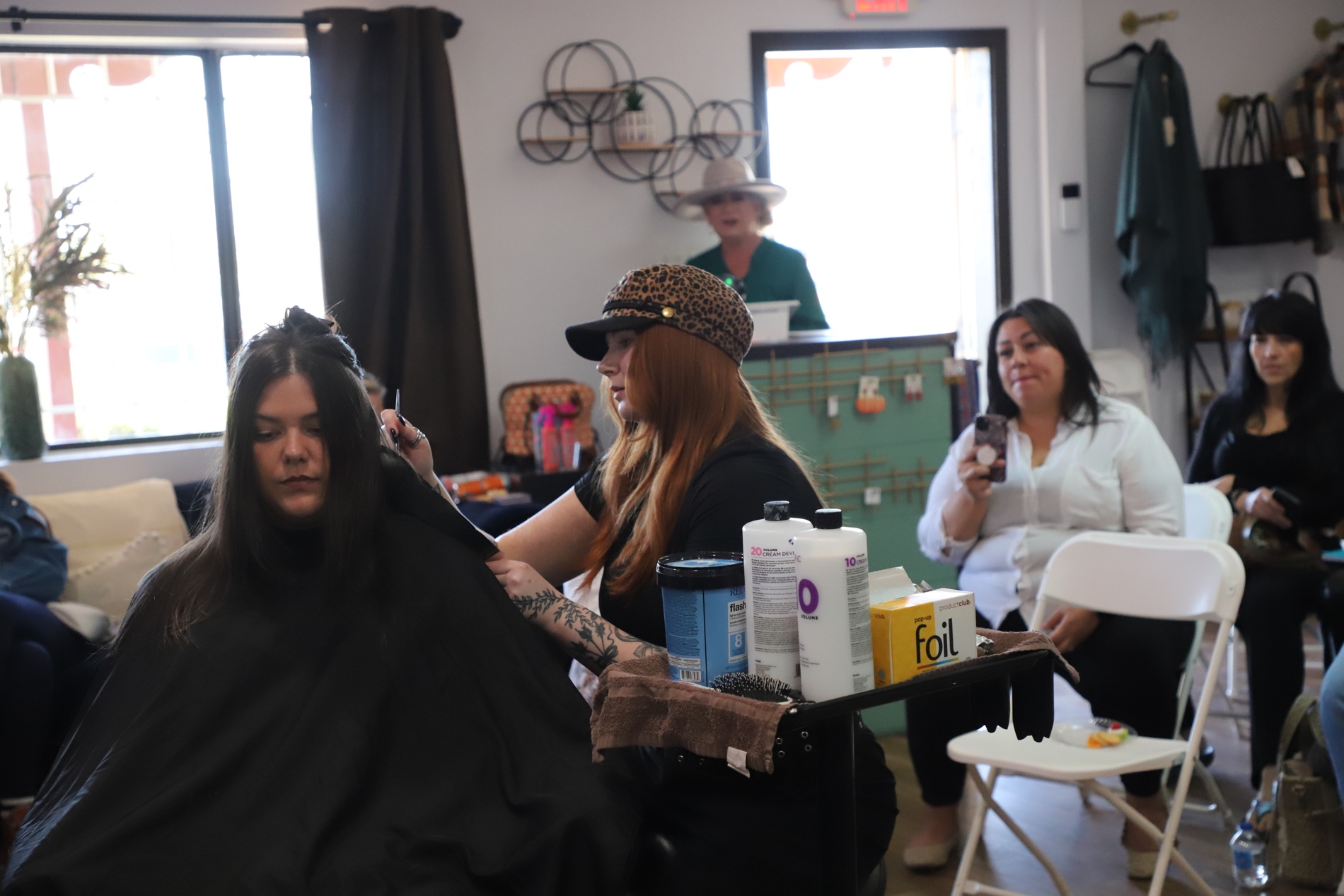 The class was led by Miranda Knight, a Pahrump Valley High School alumna and owner of VALURE Knight & Co.—a boutique salon based in Las Vegas. Knight instructed attendees on how to avoid over-foiling and gave a live demonstration of the balayage technique, walking participants through her process step by step.
