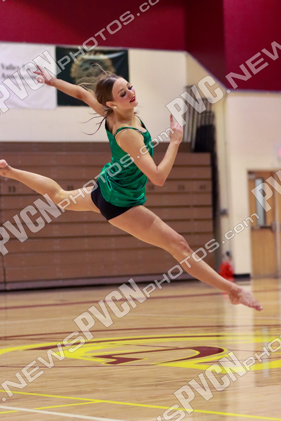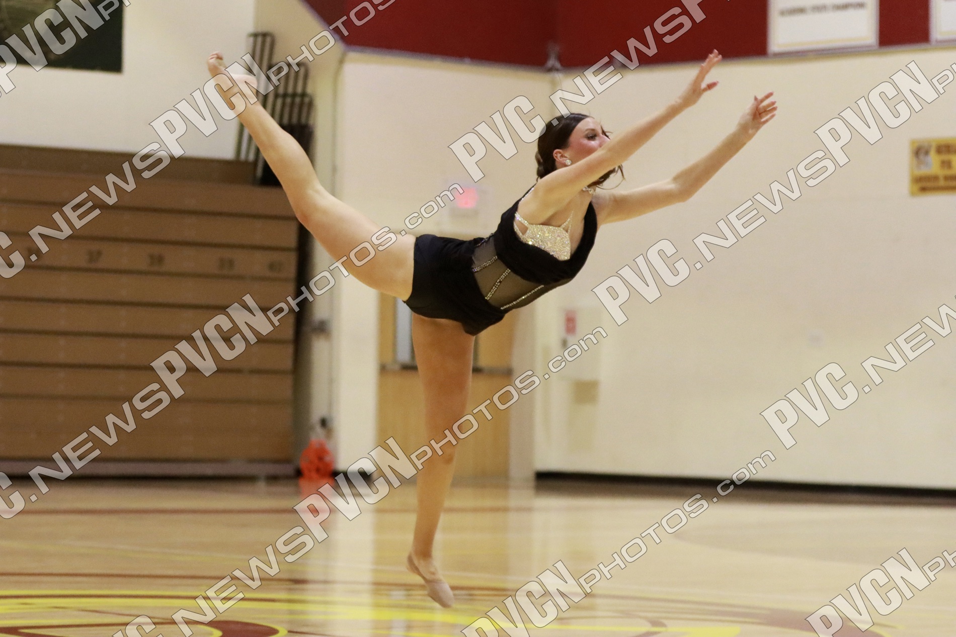 The evening began with “Rock That Body,” a pom quarter break routine that immediately energized the audience. The team followed with “Let’s Get Loud,” a vibrant jazz number, before returning to the floor with “Fire Burning,” another high-energy pom routine.