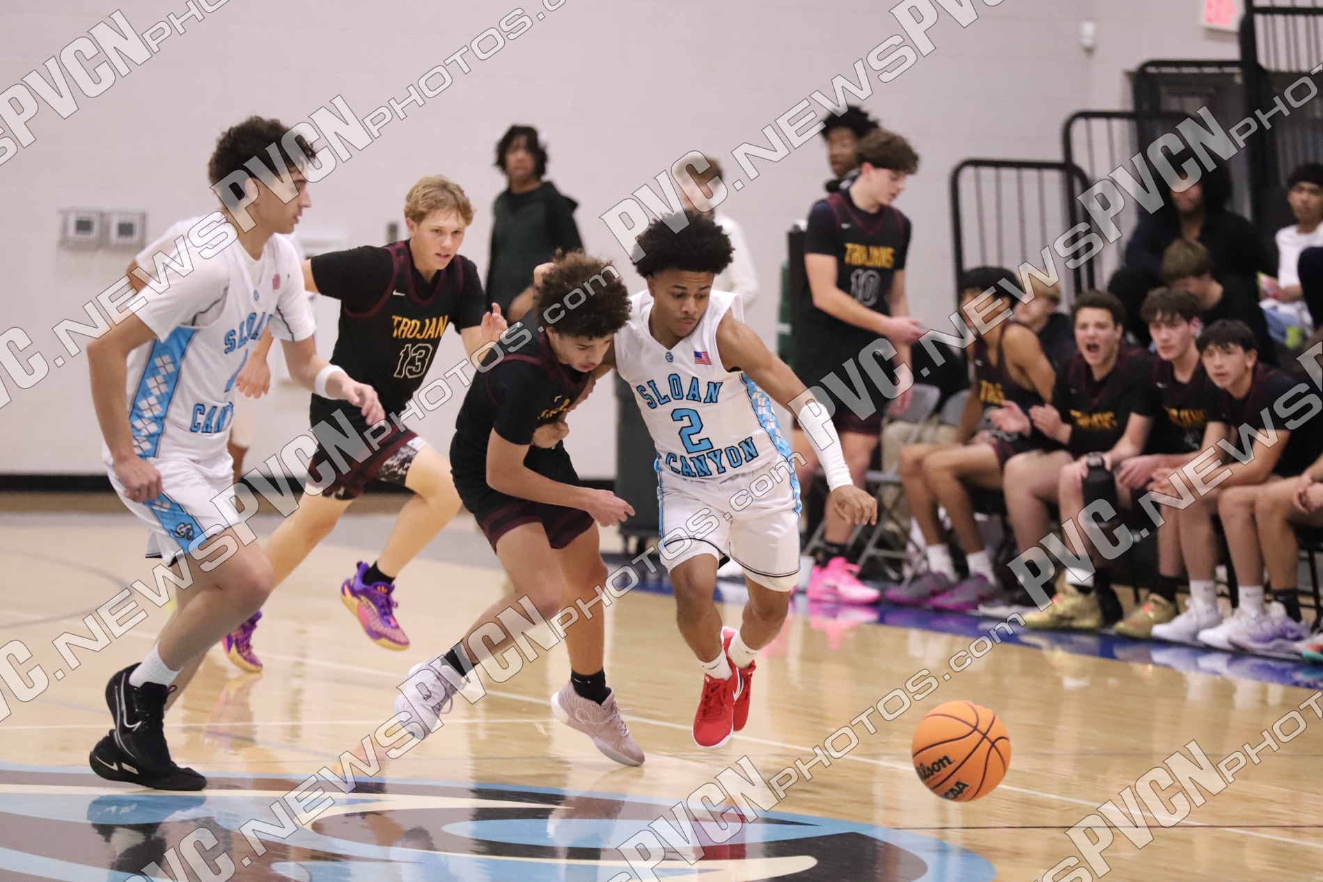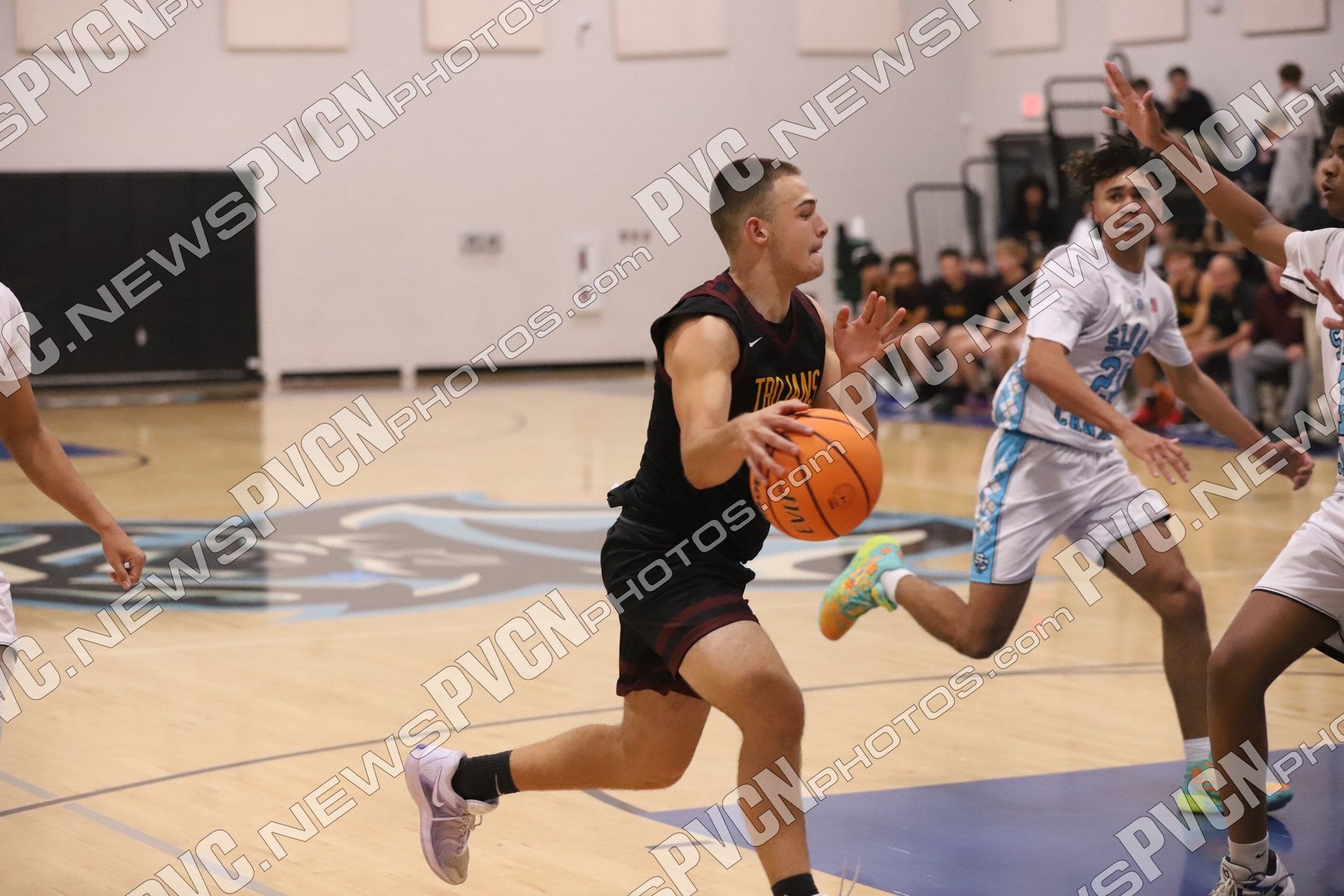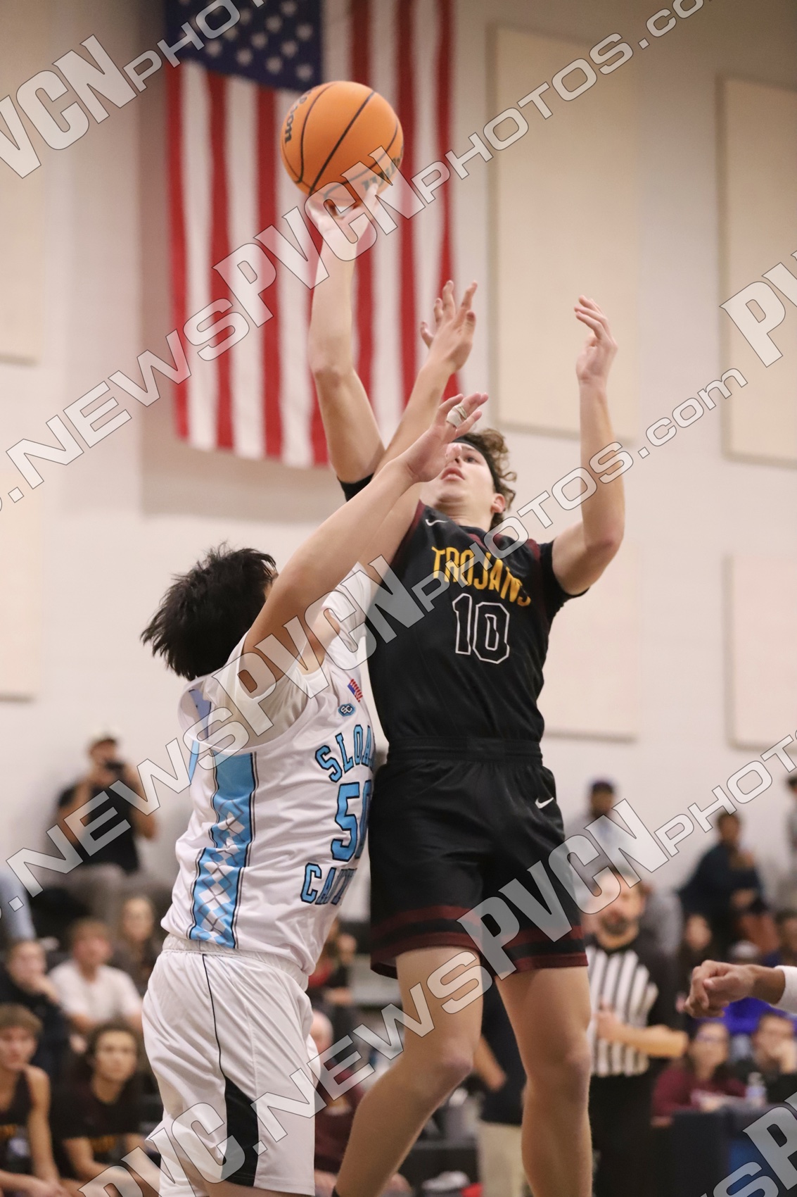PVHS came out with energy to start the night, winning the tip and getting on the board immediately as senior Keir Sheppard drew a foul and sank both free throws for a 2–0 lead. Moments later, Lucas Gavenda attacked the basket and earned a trip to the line, and Sam Mendoza came up with a steal to keep the Trojans’ defense active. Sloan answered quickly, tying the game and pushing ahead as both teams implemented an aggressive full-court press from the opening minutes.