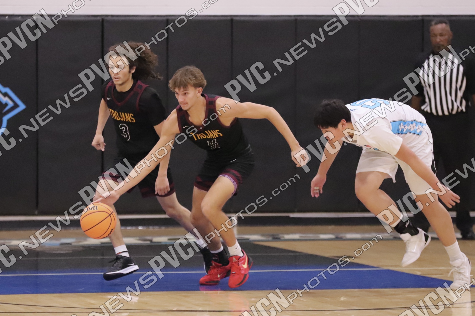 The Pahrump Valley High School Trojans boys’ varsity basketball team showed grit, heart, and unwavering determination on Friday, December 5, as they traveled to Pinecrest Academy Sloan Canyon. Despite falling behind early and trailing by as many as 25 points, the Trojans stormed back in the second half, ultimately closing the deficit to just four points before the Mustangs held on for a 69–61 win.