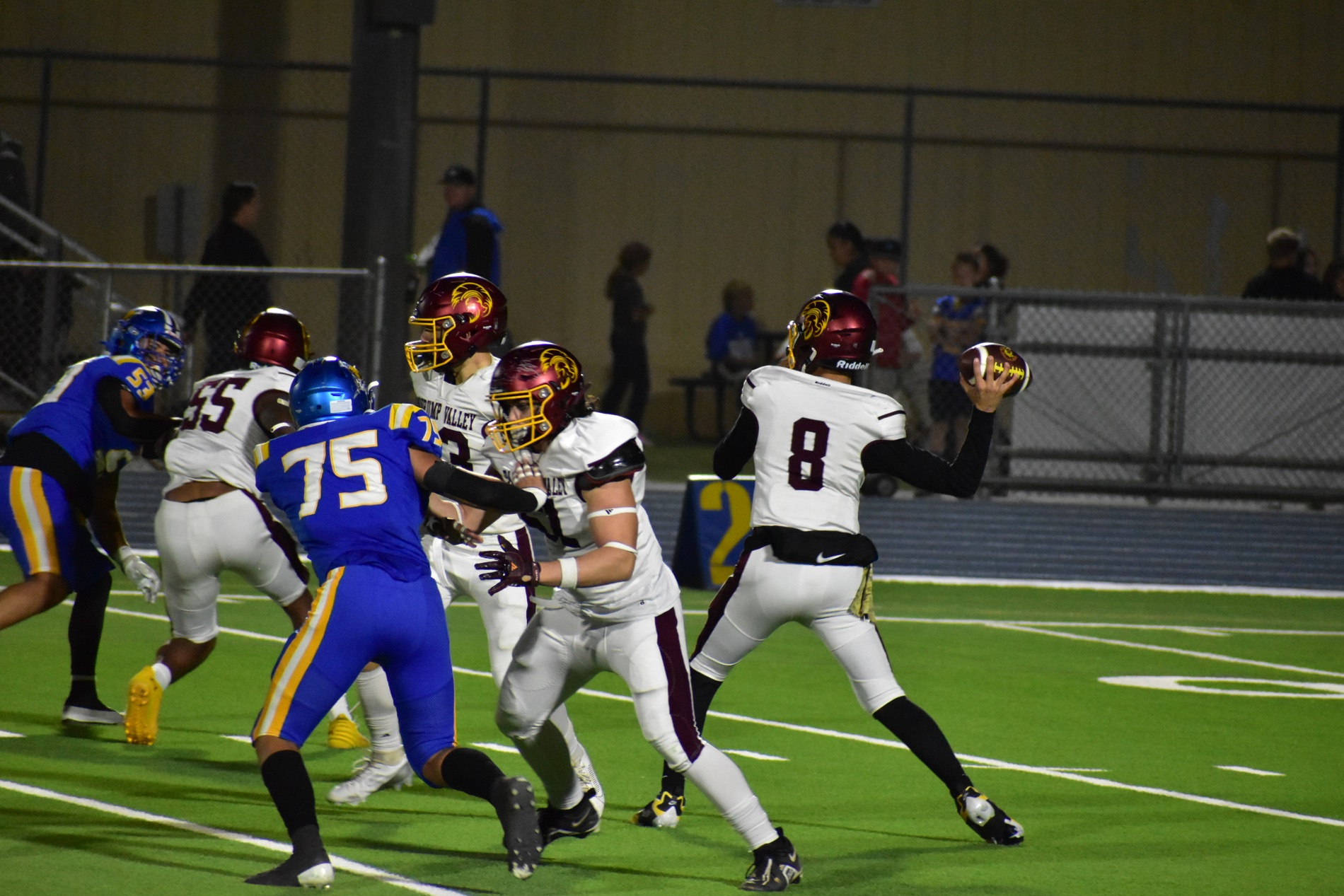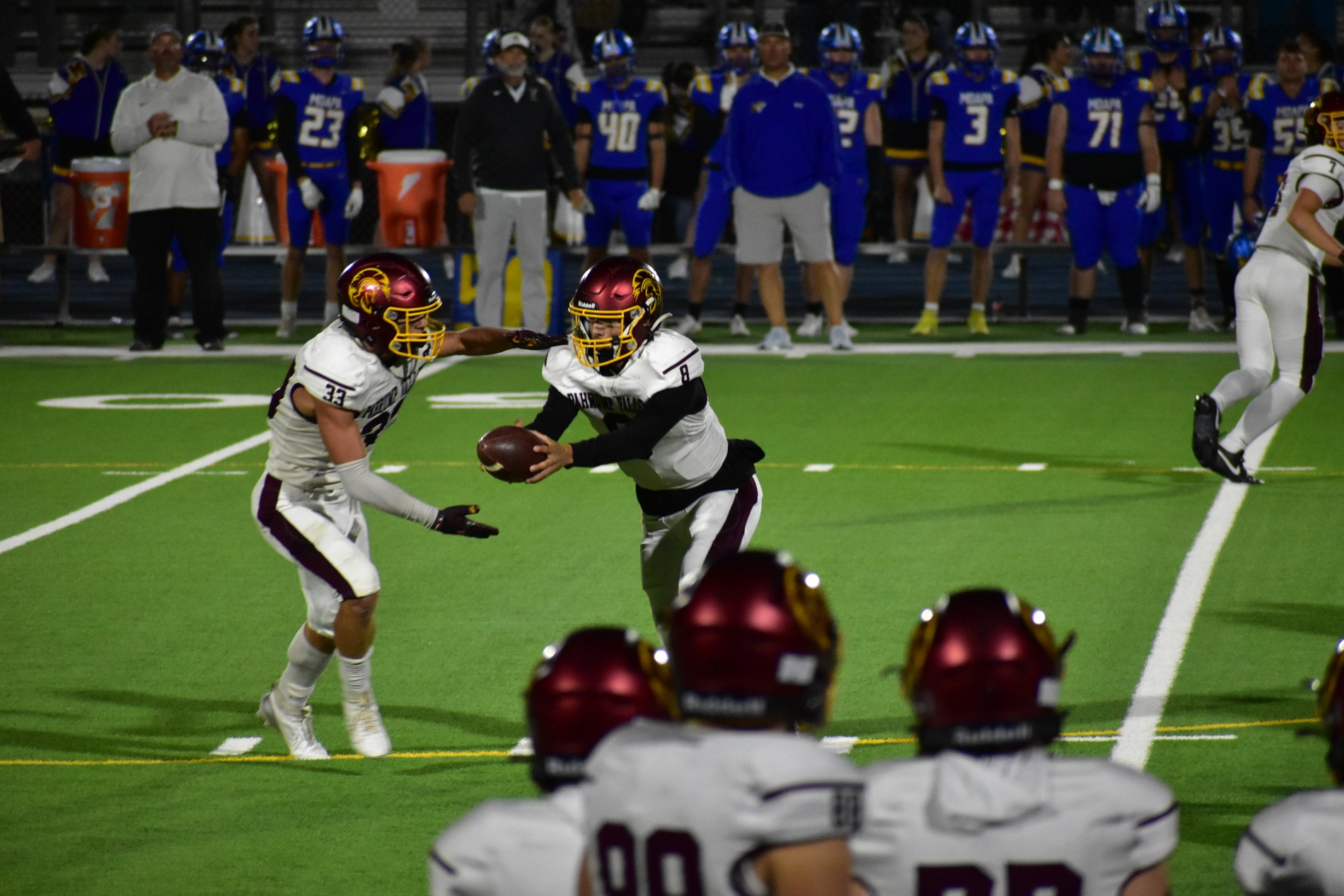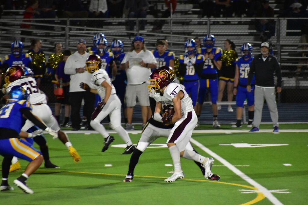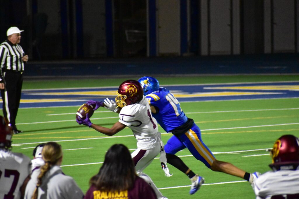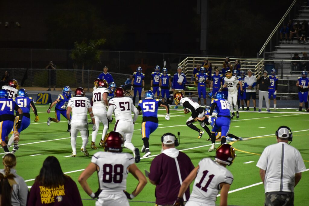Refusing to quit, the Trojans fought back in the fourth quarter. Horibe found Gavenda again for his second touchdown of the game, and Slusher’s kick brought the score to 28–21. Moapa answered quickly with another touchdown, pushing their lead to 35–21.