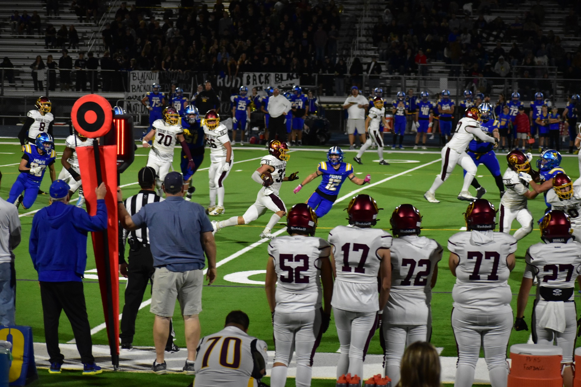 With time running down, Alvarez gave Trojan fans one more reason to cheer. He broke free for a 51-yard run and later powered into the end zone for a touchdown, making it 35–27. Though the extra point missed and Moapa recovered the onside kick, Pahrump continued to fight until the final seconds. The Pirates held on, running out the clock to secure their trip to the state championship.