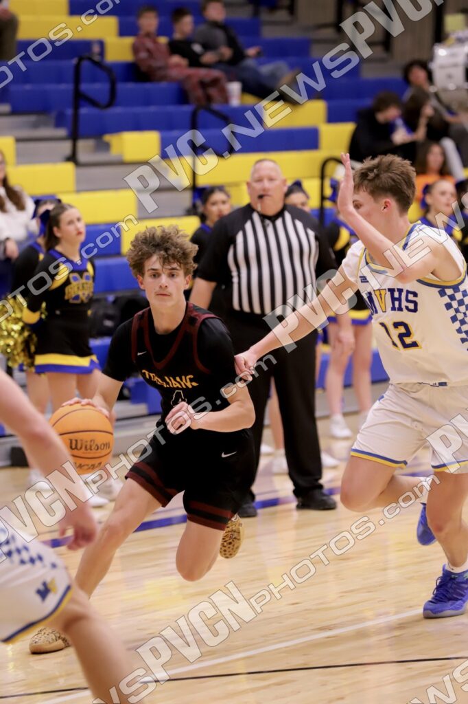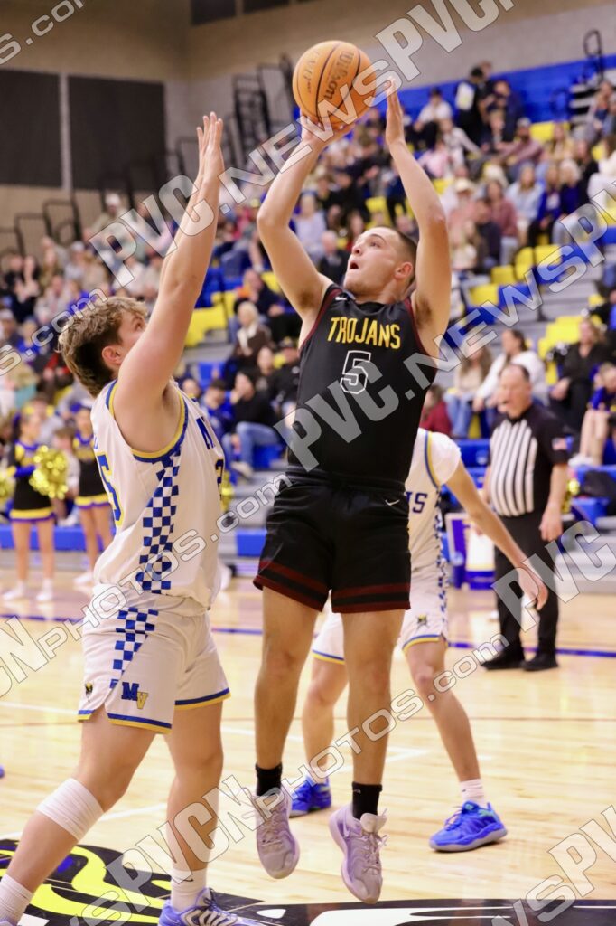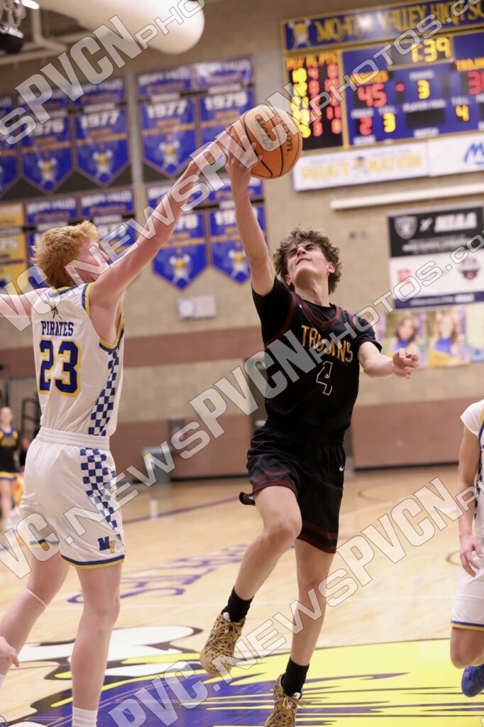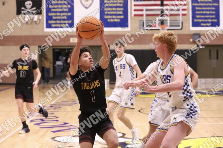 The Pahrump Valley High School boys’ basketball team hit the road Friday night, traveling to Moapa Valley to face the Pirates in a fast-paced, physical matchup that challenged the Trojans from start to finish. Despite the final score favoring the home team, the Trojans showed steady fight from the opening tip through the closing minutes, using the contest as a valuable tune-up as the postseason approaches.