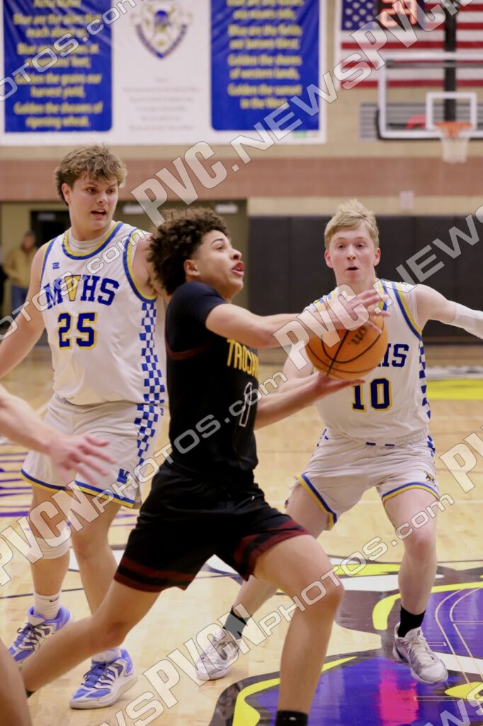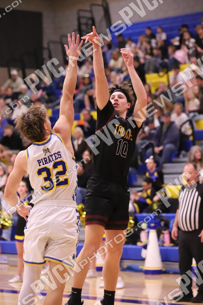 Sheppard remained active attacking the basket, finishing through defenders to keep the Trojans within striking distance. Gavenda closed the third quarter with an and-one opportunity after receiving an inbound pass and finishing through contact, cutting into the Pirates’ lead before entering the fourth quarter 47-35.