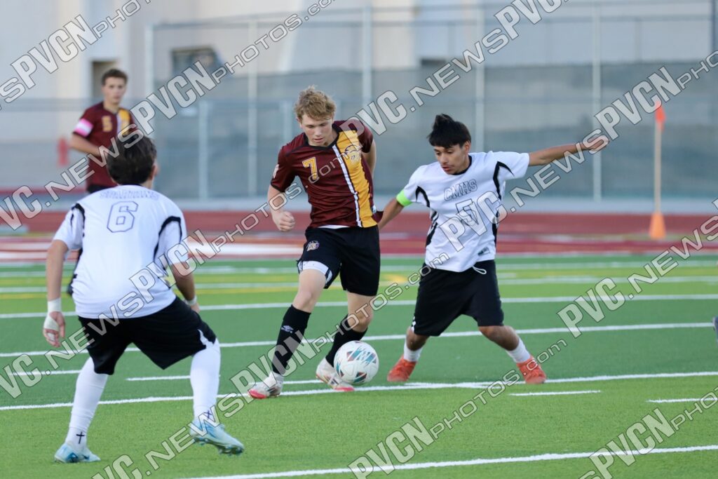 Momentum began to swing in Pahrump’s favor midway through the first half. The Trojans’ offense found rhythm through crisp passes and set-piece opportunities. A strong connection from Ryan Nunez Manzo to TC Hone led to a header on goal in the 24th minute, but it was caught by Cimarron’s keeper. A few minutes later, Randall drove in a shot that forced a penalty on Cimarron, setting up a pivotal moment.