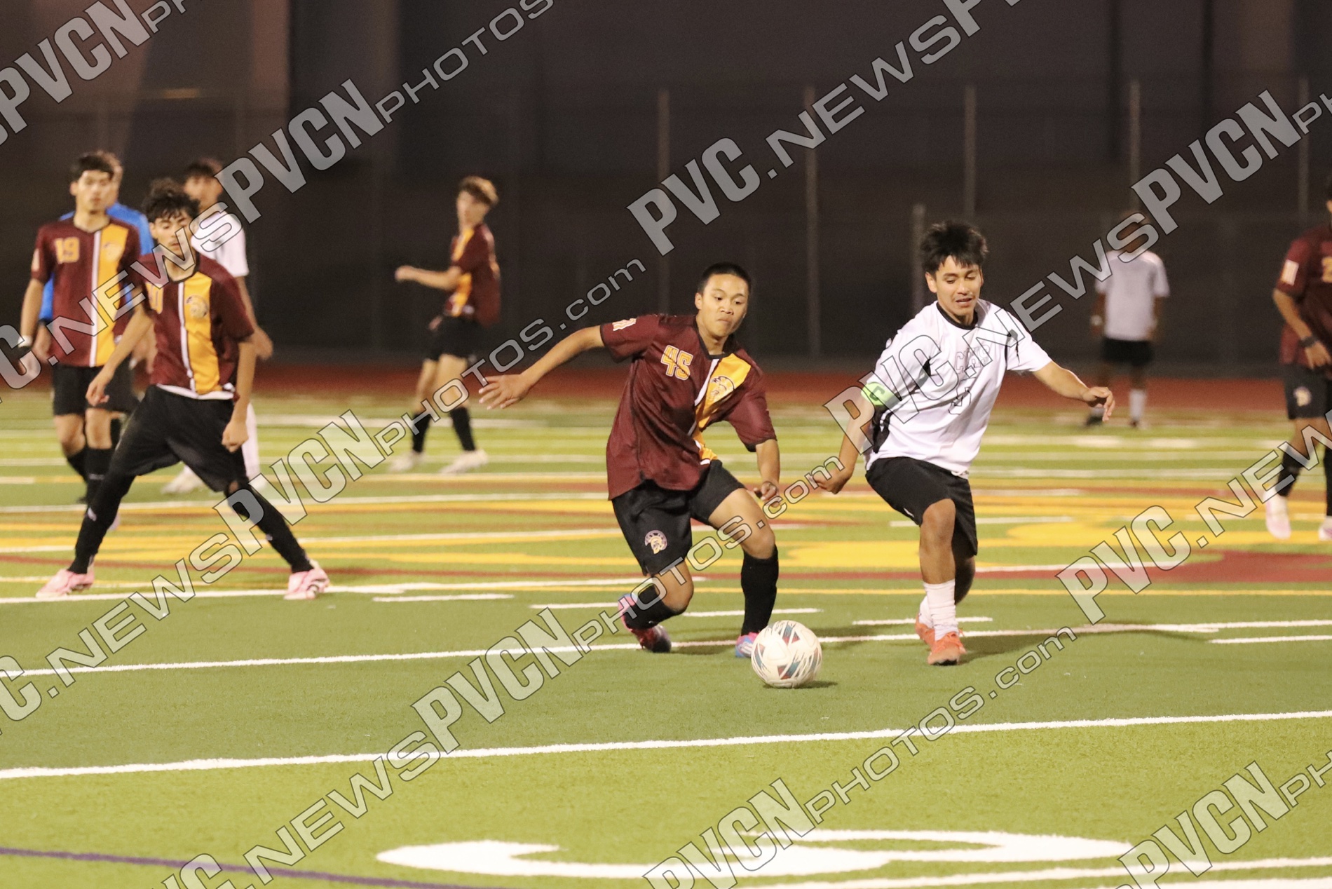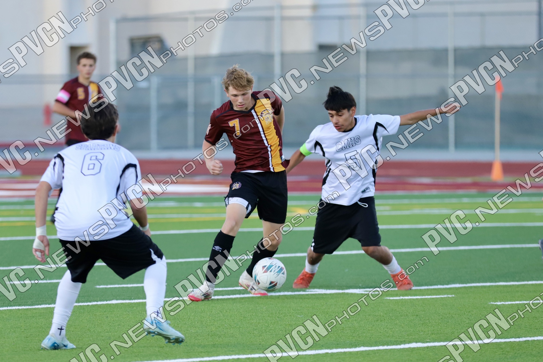 The Pahrump Valley High School Trojans boys’ soccer team put up an intense fight against the Cimarron-Memorial Spartans at home on Thursday, October 16, in a match that came down to the final minutes. Despite leading for much of the game, the Trojans fell 2–1 in a heart-pounding finish that showcased their determination and teamwork.
