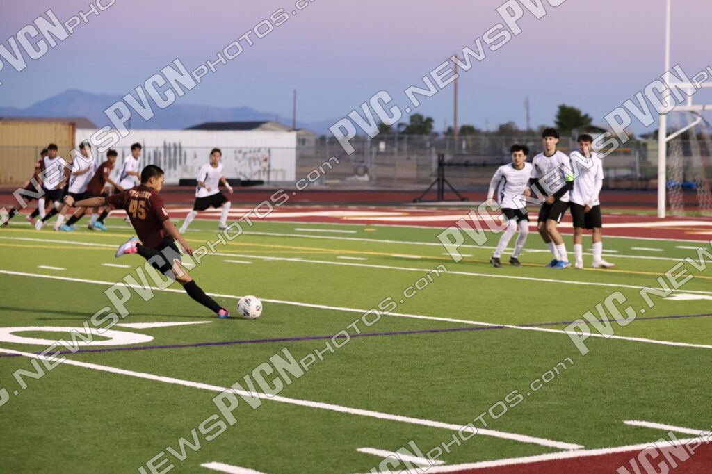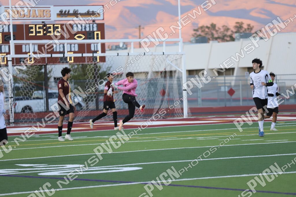 At the 9-minute mark, Berto Gonzalez-Gonzalez stepped up for the Trojans’ penalty kick and buried it into the back of the net to give Pahrump a 1–0 lead. The home crowd erupted as teammates celebrated the go-ahead goal. The Trojans nearly added another just before halftime when Adrian Dominguez-Leyva earned a penalty kick, but the shot was deflected high. Pahrump carried their 1–0 advantage into halftime after another defensive stop in the final two minutes.
