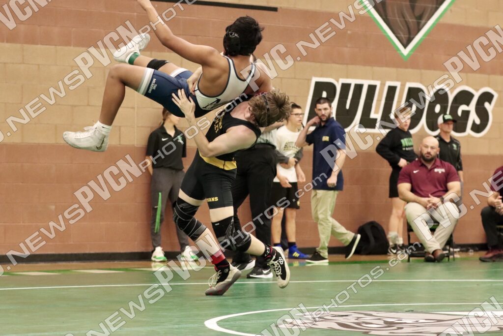 Pahrump Valley’s success was fueled by three individual regional champions. At 106 pounds, Timothy Stutzman secured first place with an impressive showing, finishing his day with a 6-0 score and sealing the title with a fall over Moapa Valley’s King Walker in 1:30. At 190 pounds, William Sparks delivered a dominant performance, earning the championship by tech fall over teammate Jacob Stepp in the finals after advancing through the bracket with two earlier pins. At 215 pounds, Iyan Bosket continued his undefeated run, finishing 8-0 and capturing the title with three rapid falls, including a championship match victory over Virgin Valley’s Jaden Flores in just 58 seconds. Heavyweight Julio Ackerman also added a title performance for the Trojans, finishing 6-1 and claiming first place with a fall over Ollie Zunga of Virgin Valley in the finals.