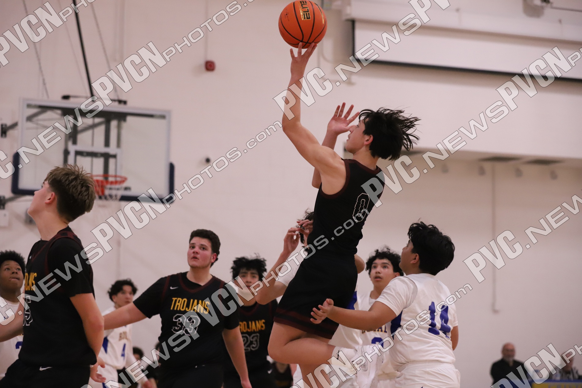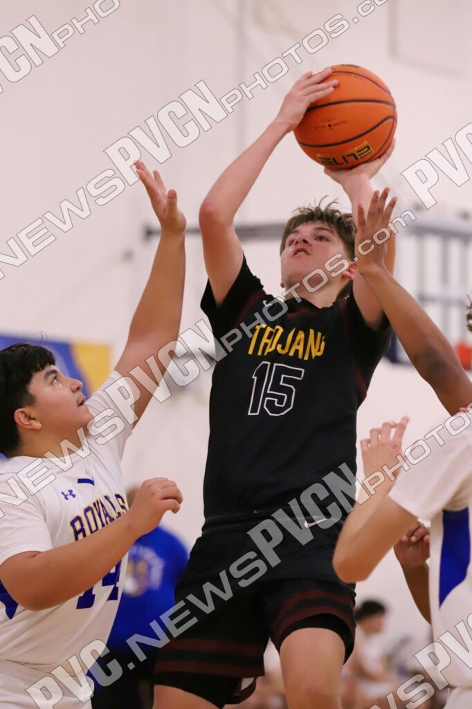 The Trojans continued to rotate players while keeping the pressure high. Levi Denton capitalized on a steal with a basket, and Sam Mendoza scored on a breakaway layup late in the half. Pahrump Valley headed into halftime with a 49–20 lead.