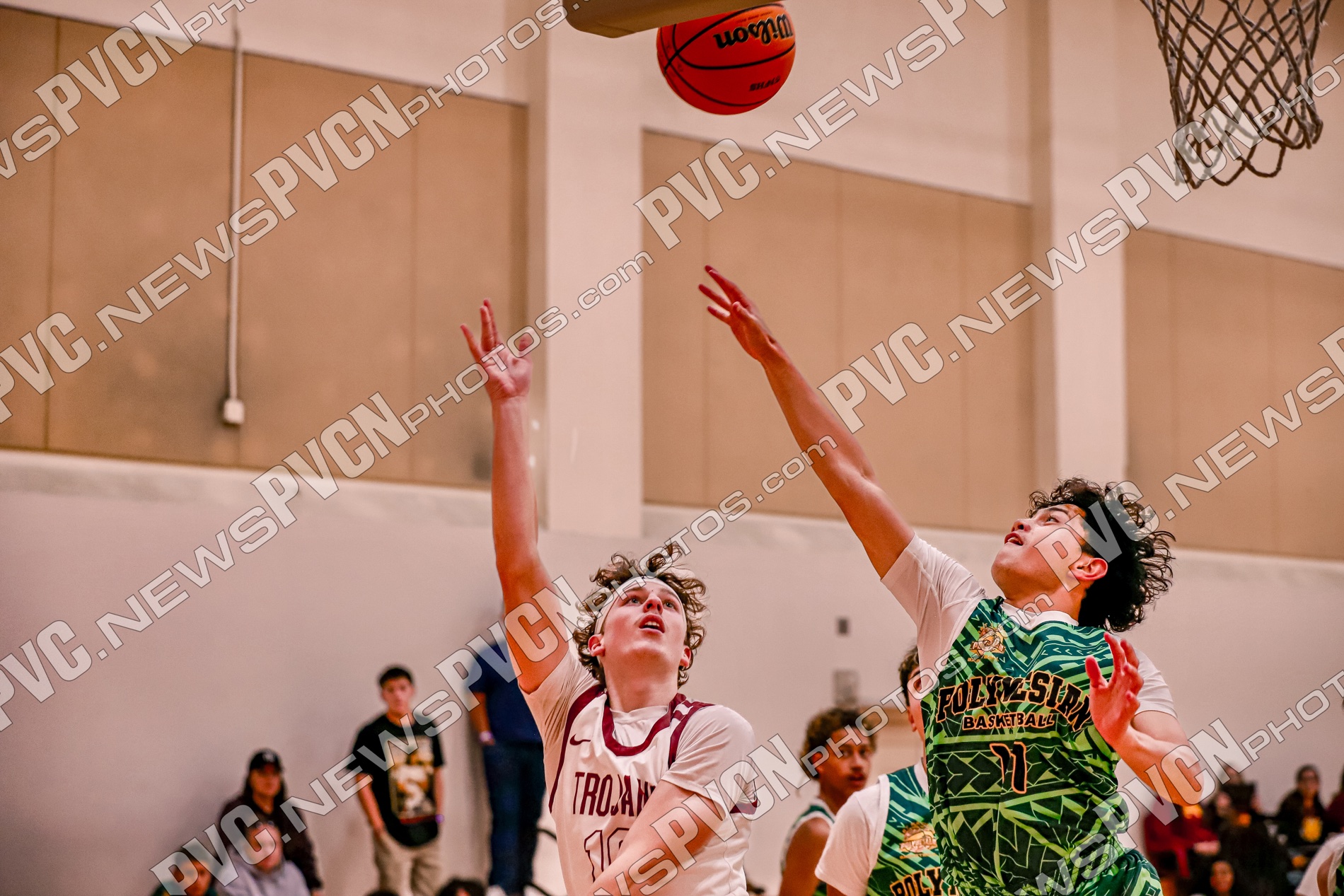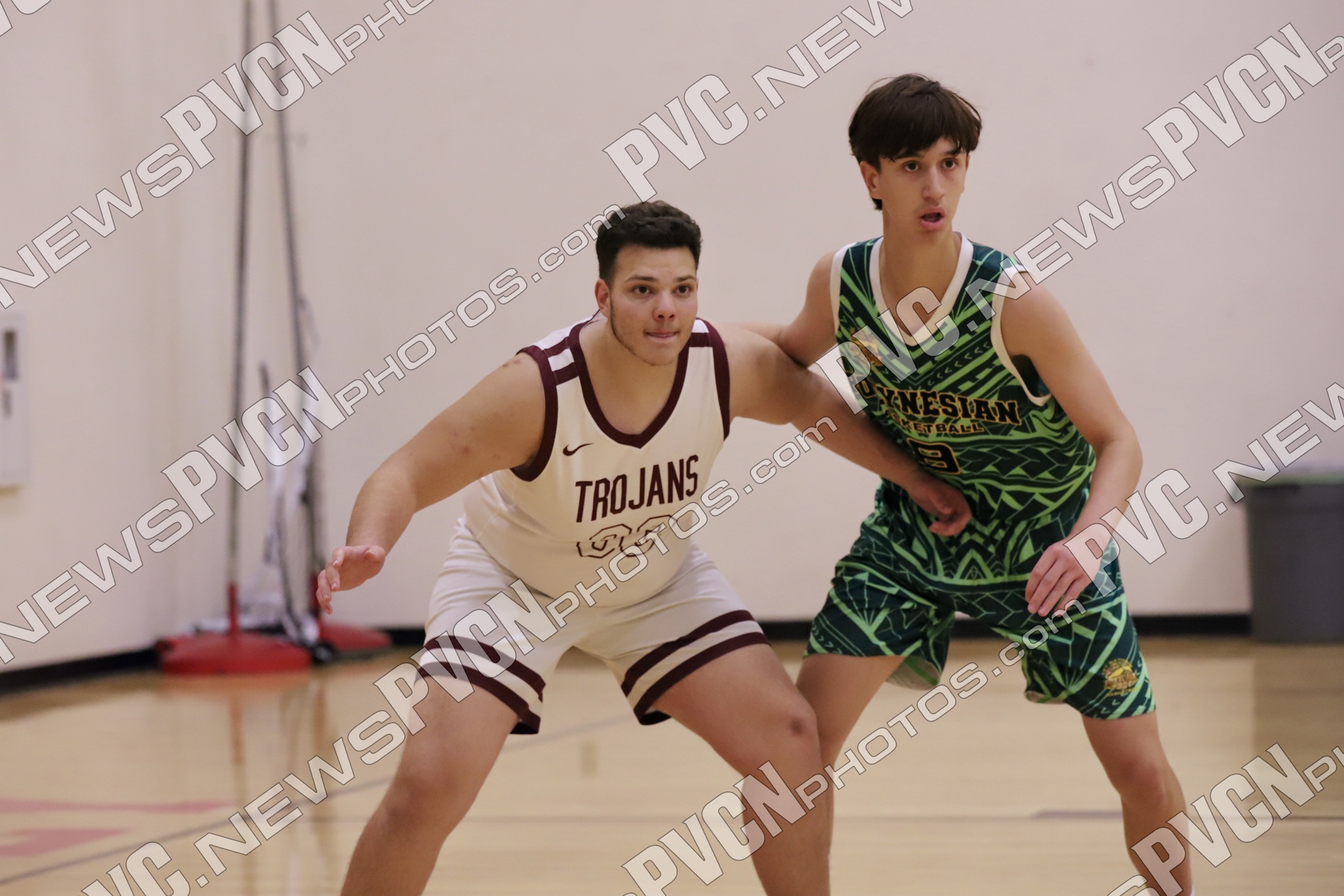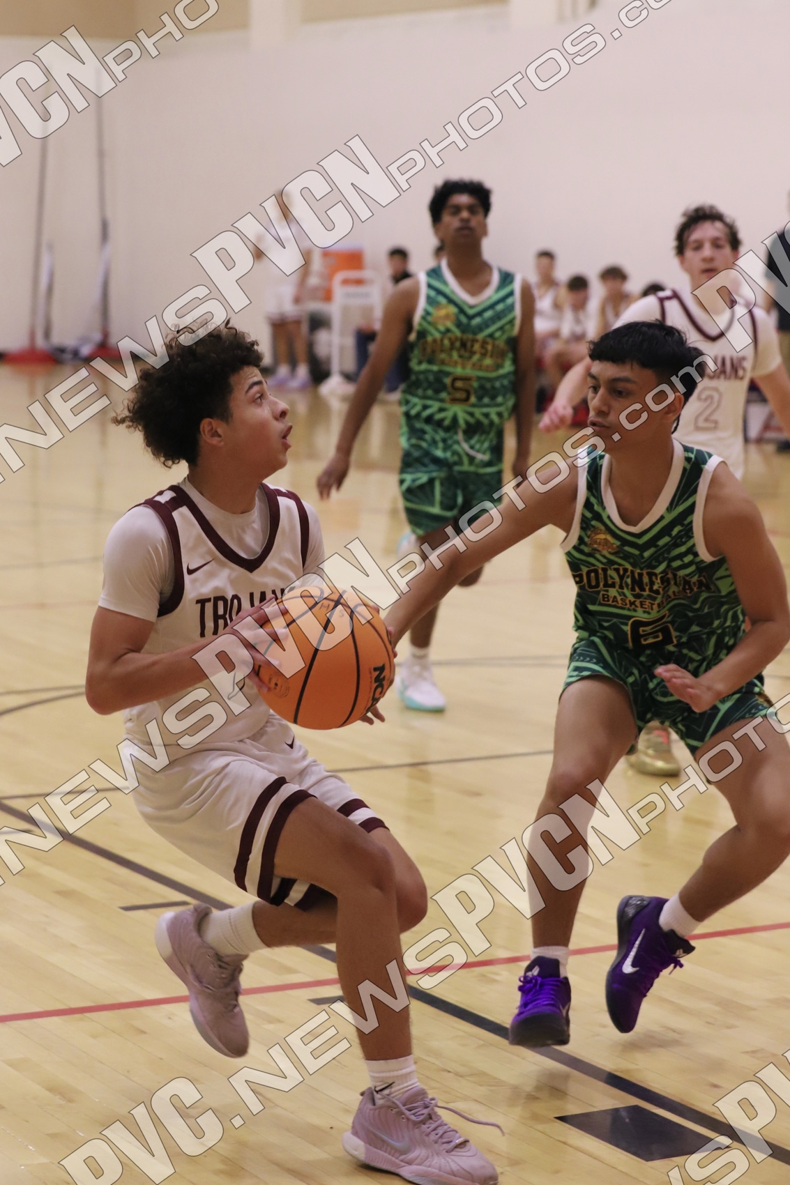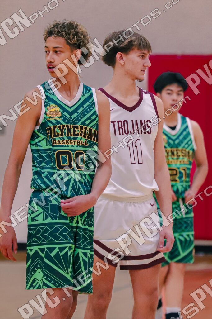 Pahrump Valley set the tone right from the opening tip, applying full-court pressure and forcing early mistakes. After the Polynesian side opened the scoring at the free-throw line, the Trojans responded quickly with a corner three from Caden Briscoe and a strong finish inside by Keir Sheppard to take control. Lucas Gavenda added a driving basket, and Sheppard followed with another three from the left corner as Pahrump Valley built a 10–1 advantage.