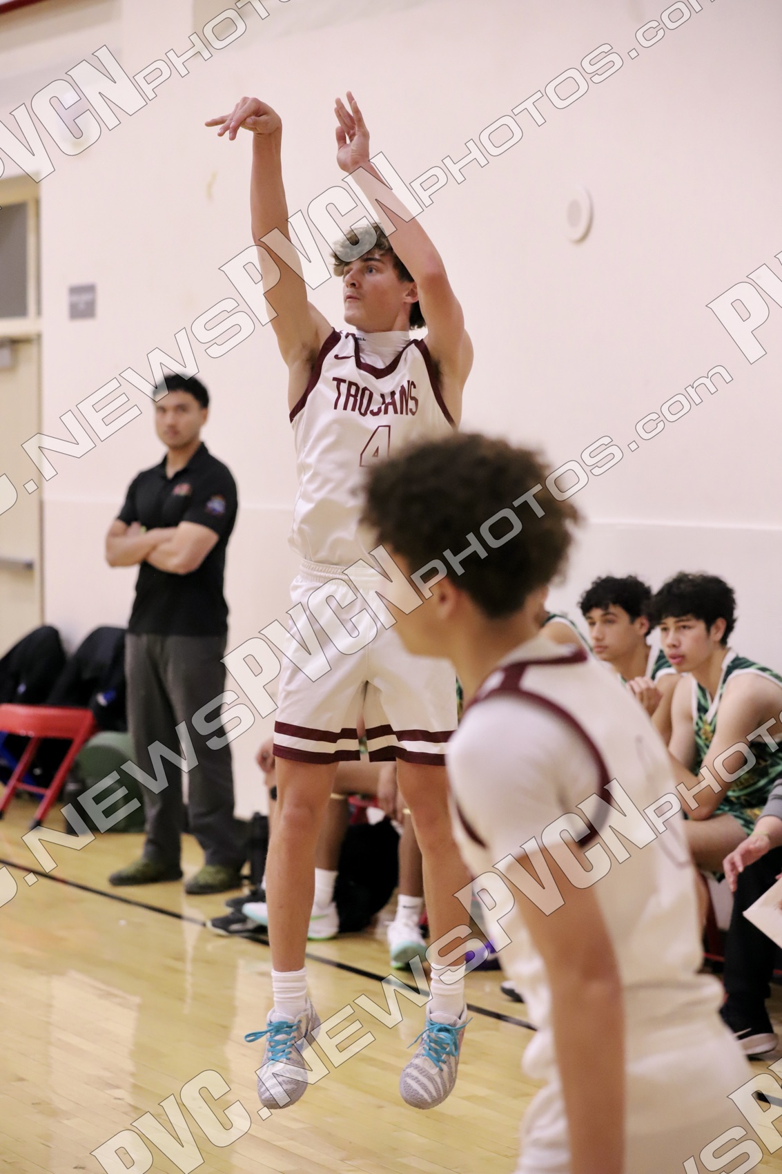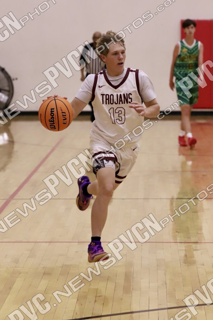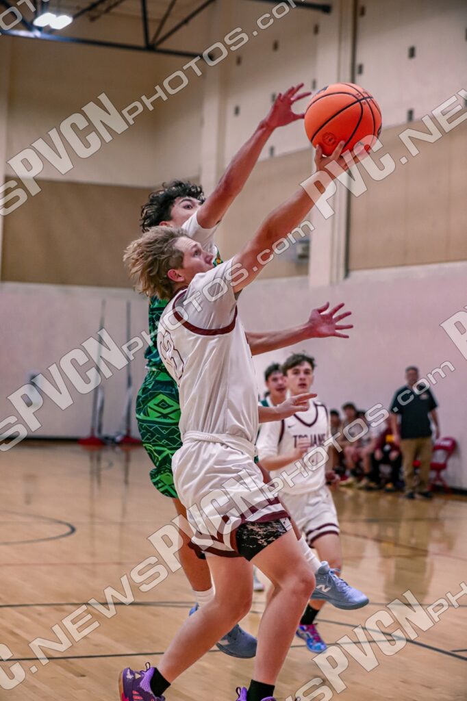 The momentum carried into the second half. A press breaker from Gavenda to Plein led to an early basket, and Sheppard followed his own blocked shot for another score. Sam Mendoza knocked down a deep three from the top of the key, then finished a steal with a half-court layup as the Trojans extended their lead to 48–22. Aydon Veloz added a pair of strong plays on both ends, including a kick-out assist for a three and continued defensive pressure.