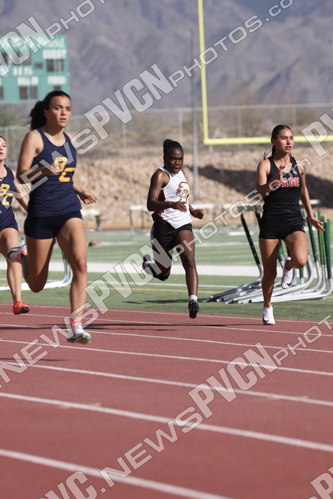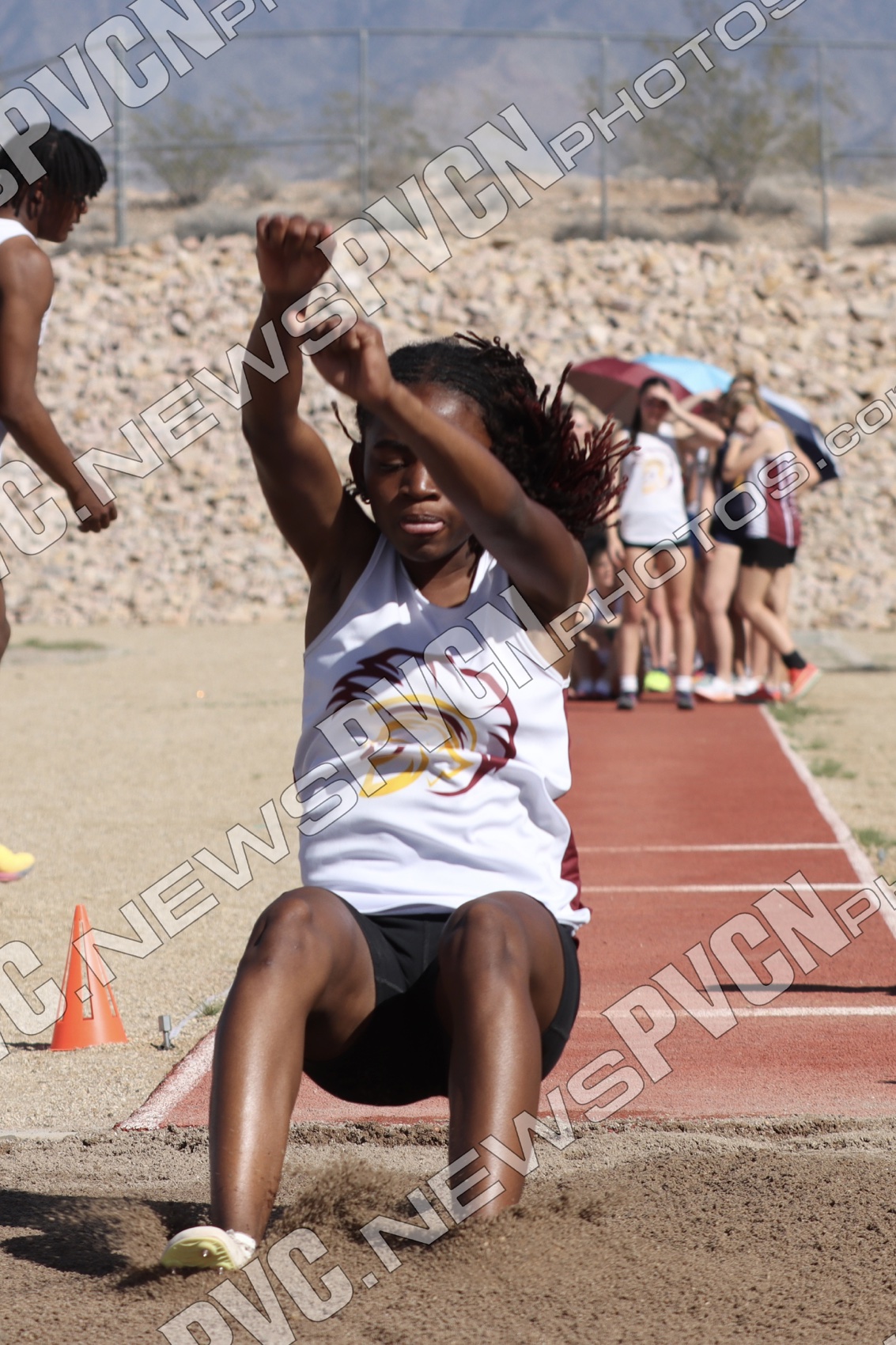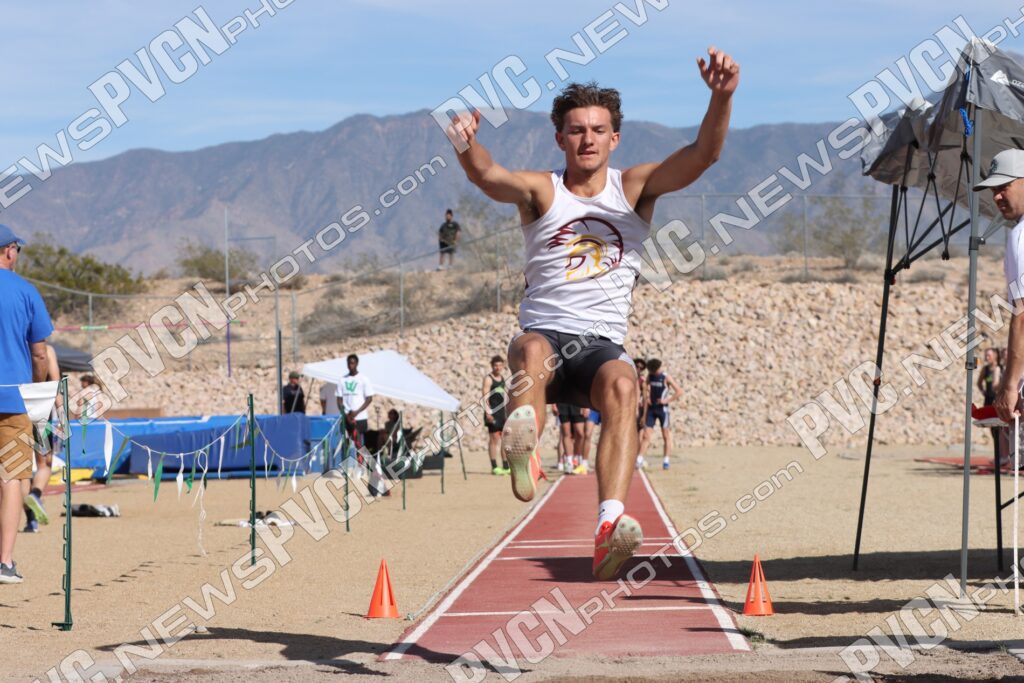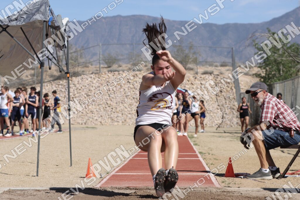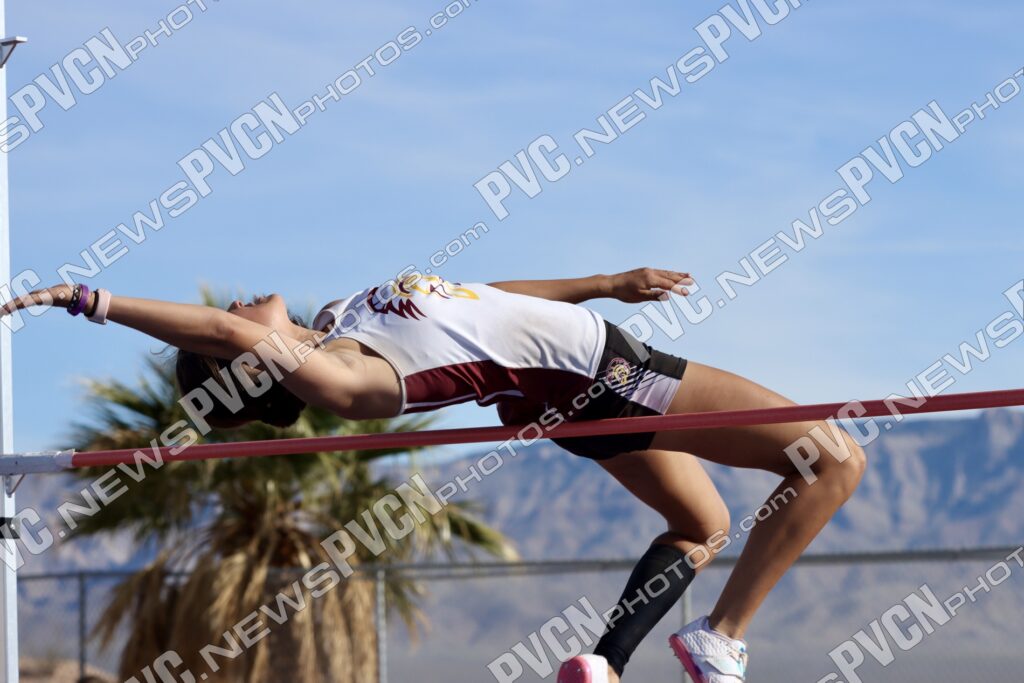 The Pahrump Valley High School track and field team turned in an impressive showing at the Ken Jensen Invitational, hosted by Virgin Valley High School on Friday, March 13, competing against a large and competitive field that included Boulder City, Eureka, Lincoln County, Lund, Moapa Valley, Page (Arizona), Pahranagat Valley, Spring Creek, Virgin Valley, Wells, West Wendover, White Pine and Pahrump Valley.