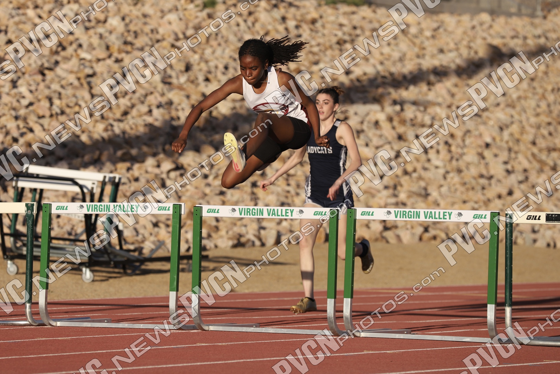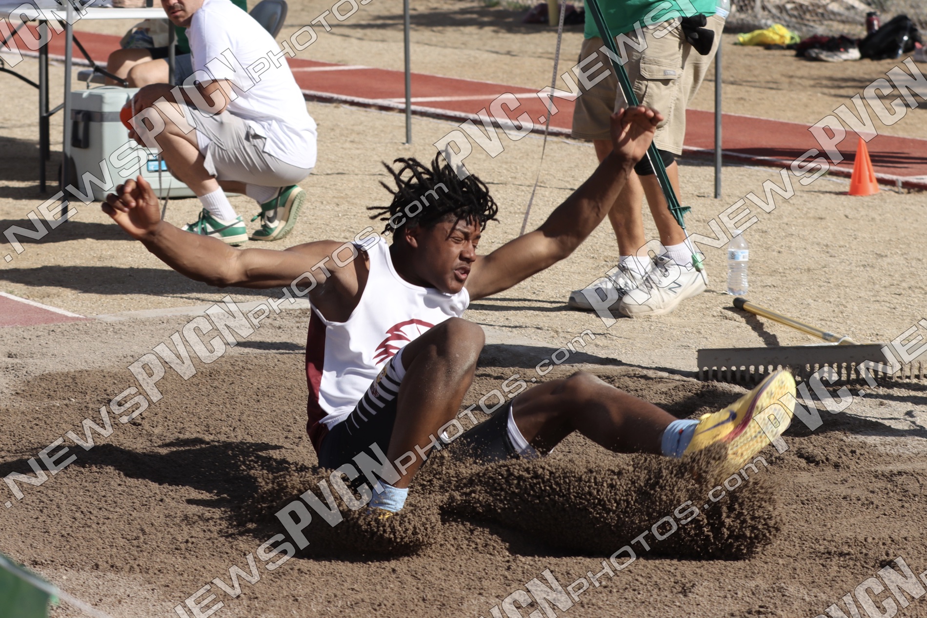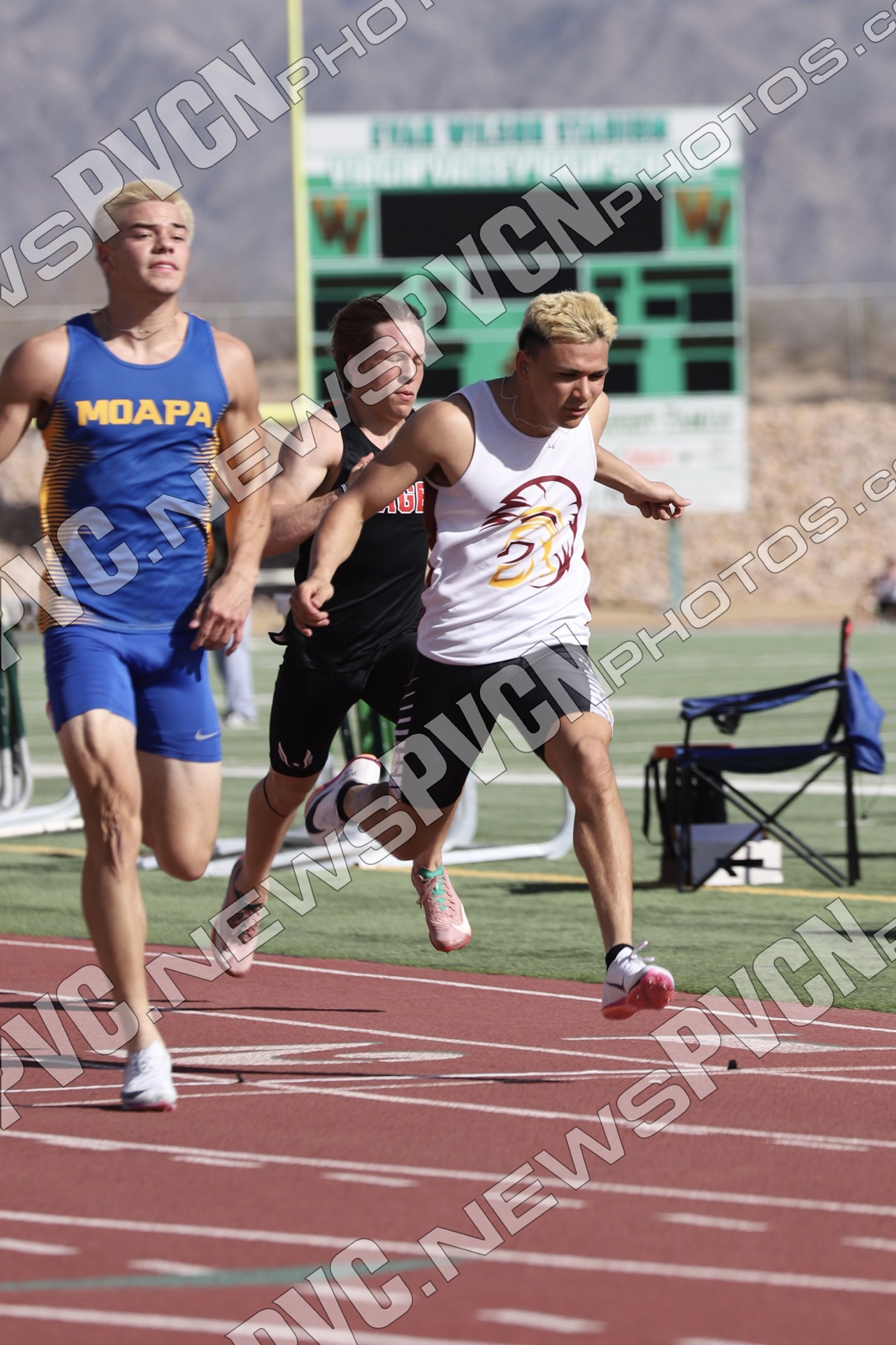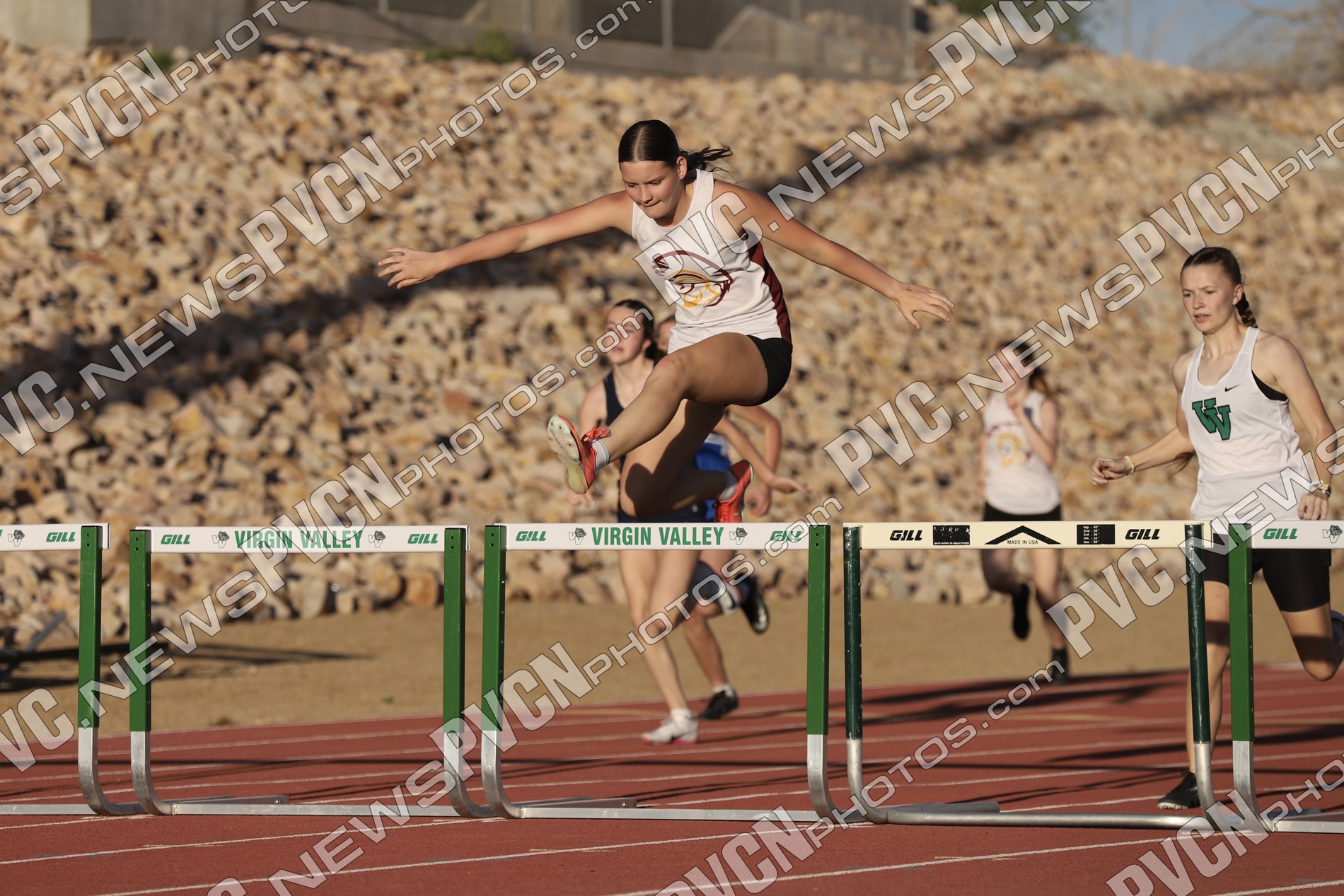 The Pahrump Valley High School track and field team turned in an impressive showing at the Ken Jensen Invitational, hosted by Virgin Valley High School on Friday, March 13, competing against a large and competitive field that included Boulder City, Eureka, Lincoln County, Lund, Moapa Valley, Page (Arizona), Pahranagat Valley, Spring Creek, Virgin Valley, Wells, West Wendover, White Pine and Pahrump Valley.