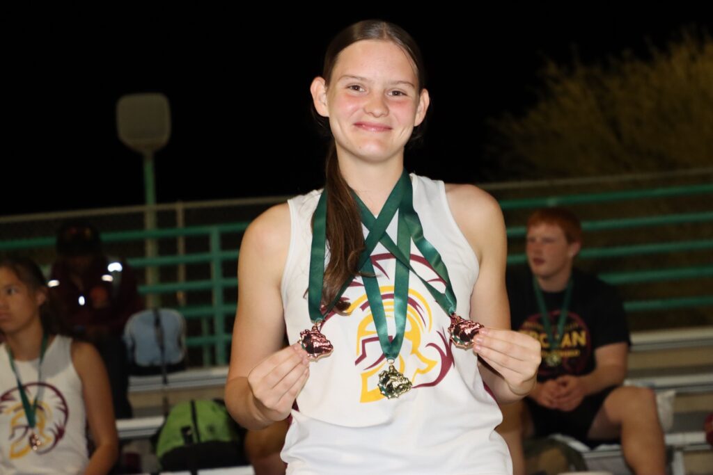 Jayden Crisler showcased his versatility with a first-place finish in the long jump at 19 feet, 2 inches and another first-place finish in the triple jump at 43 feet, 1.25 inches. Aydon Veloz added a fourth-place finish in the long jump with a personal best of 18 feet, 1.25 inches, while Daniel Thompson also recorded a personal best. For the girls, Aurora Bowers placed second in the long jump with a personal best of 15 feet, 3 inches, with additional contributions from Diona Nixon, Sedona Norton and Savannah Thompson.