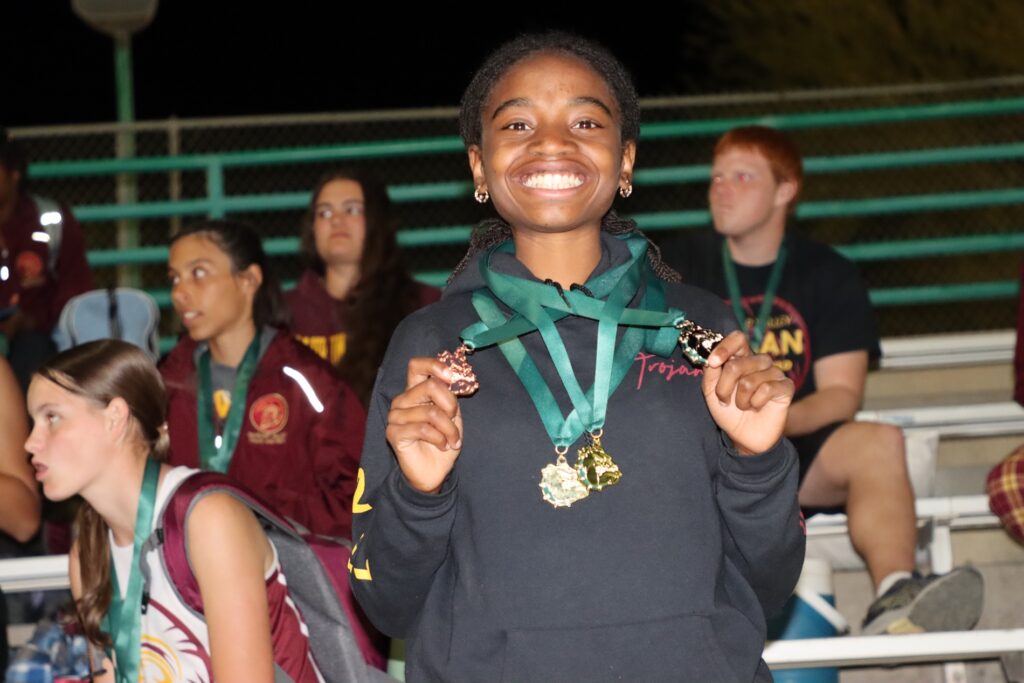 Middle-distance races added to the Trojans’ scoring totals. Joaquin Flores placed second in the boys 800 with a personal best of 2:06.09, followed by Aydon Veloz in fifth (2:11.74), Daniel Thompson with a personal best of 2:20.58 and De Santiago at 2:21.91. On the girls side, Jules Ondrisko placed second in 2:38.80, Addi Nelsen finished third with a personal best of 2:40.00, Ava Bowers recorded another personal best at 2:45.75 and Rosie Miller placed eighth in 2:54.00.