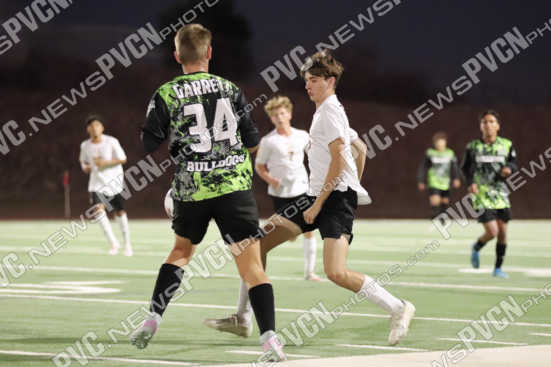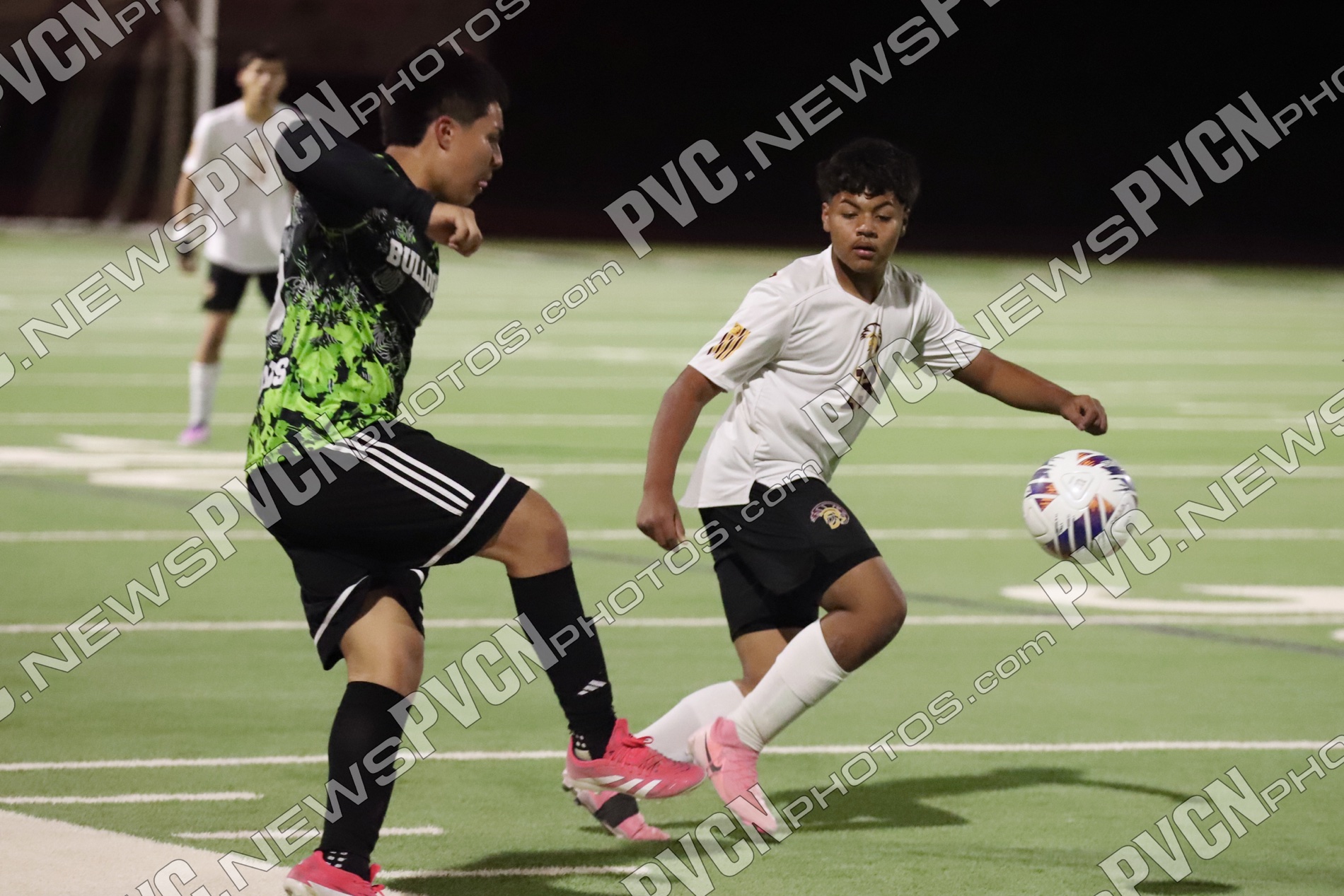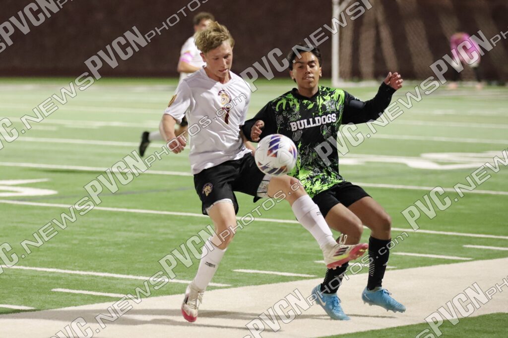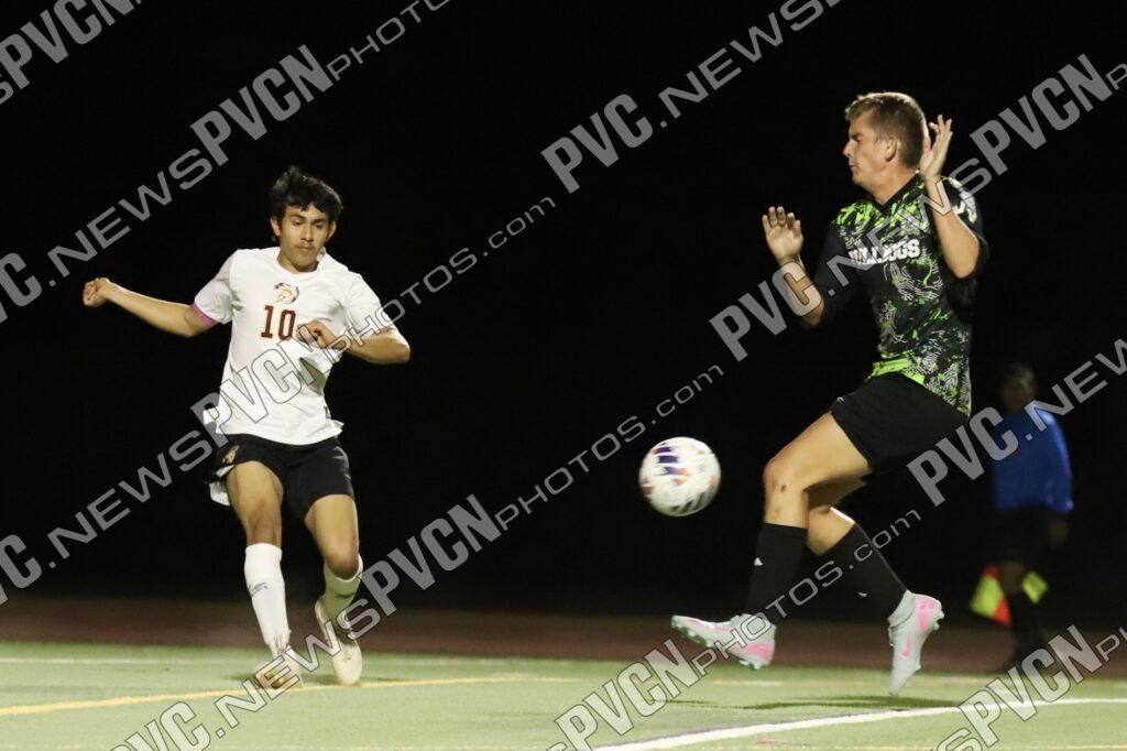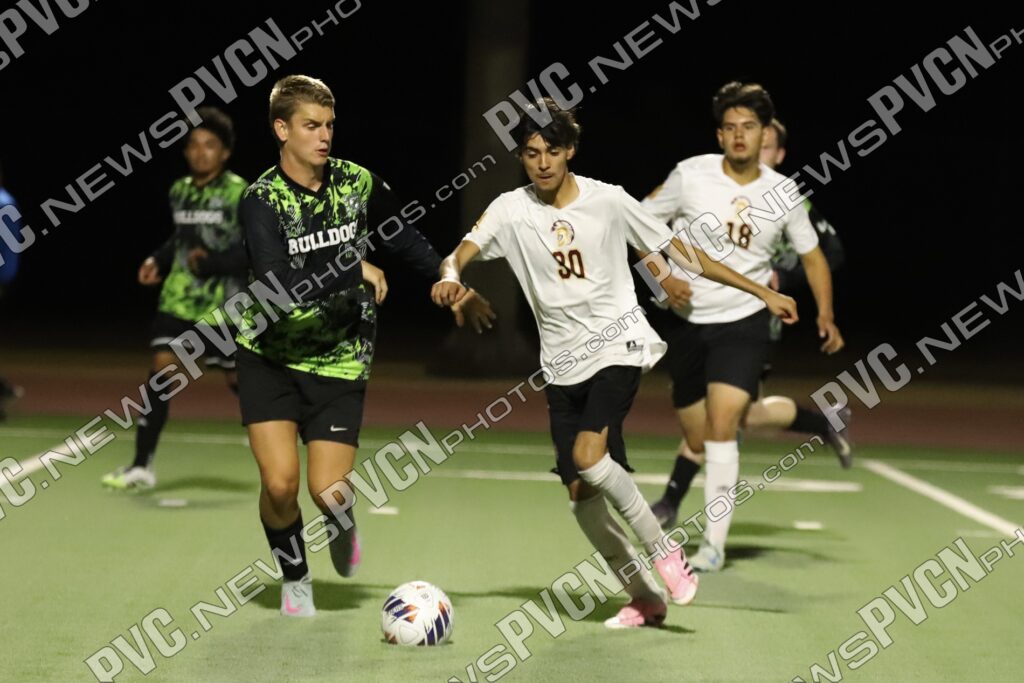The game opened with intensity from both sides. In the first minute, Pahrump was awarded a penalty kick after a handball in the box, but Adrian Dominguez-Leyva’s shot just skimmed the top bar and flew over. From there, the Bulldogs applied pressure, but the Trojans’ defense, anchored by goalkeeper Cayden Cowley, stood tall. Cowley made several diving saves, including a critical stop on a 12-yard penalty kick that kept the Trojans within reach early on.