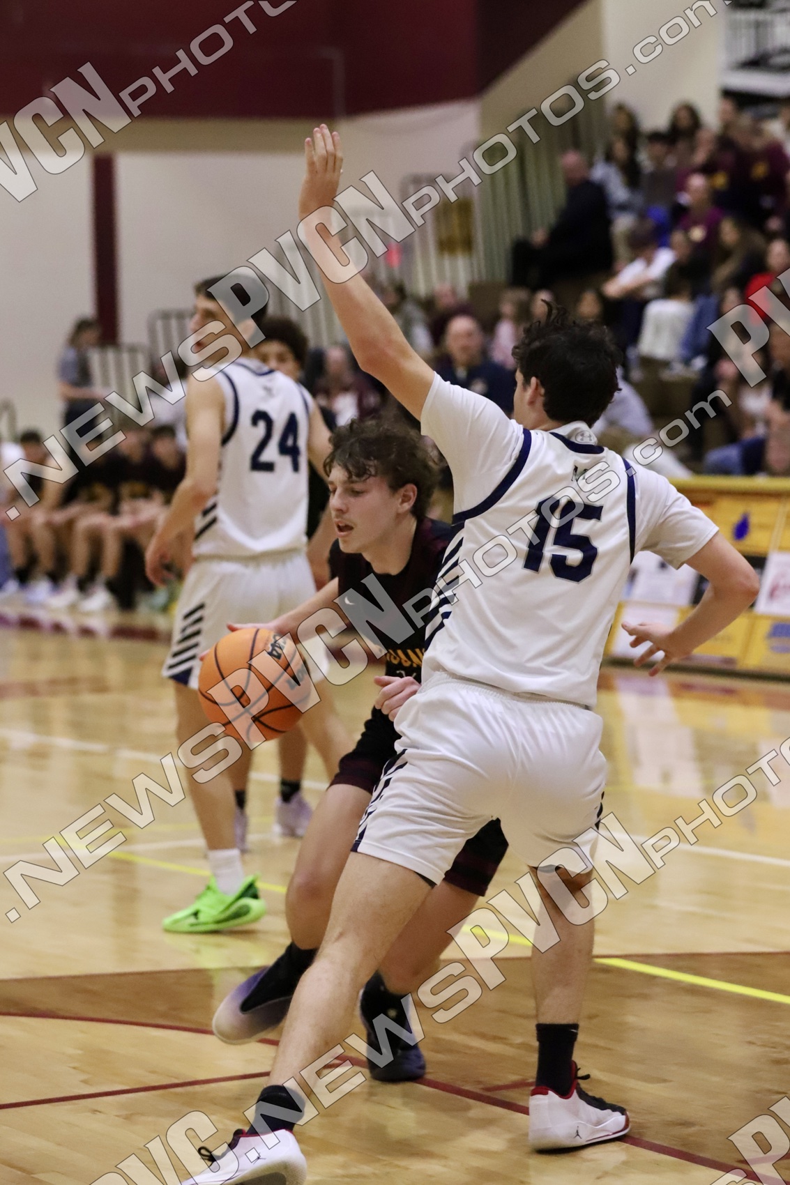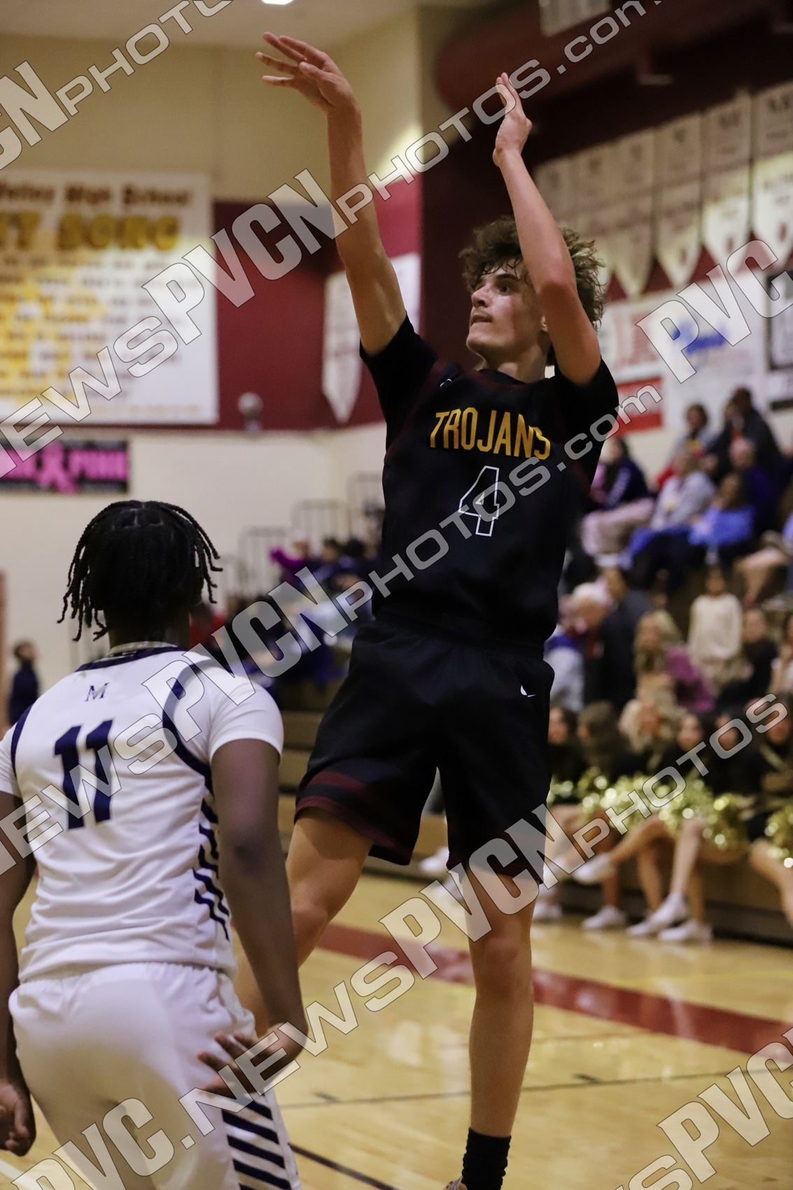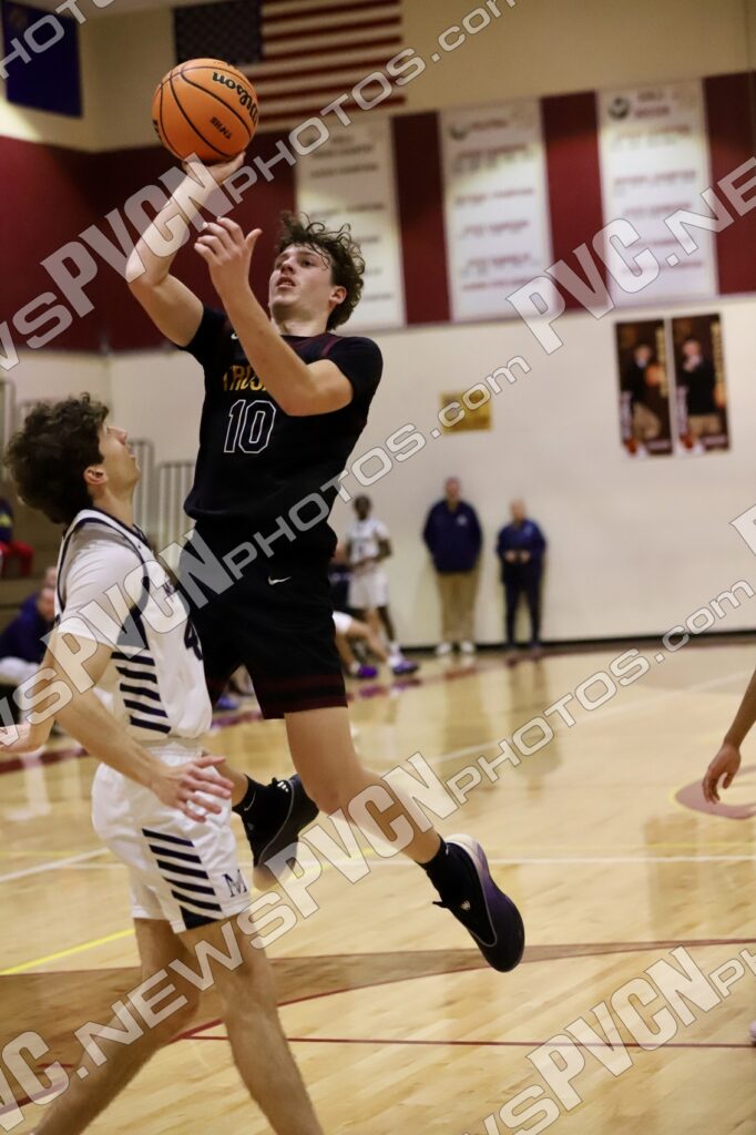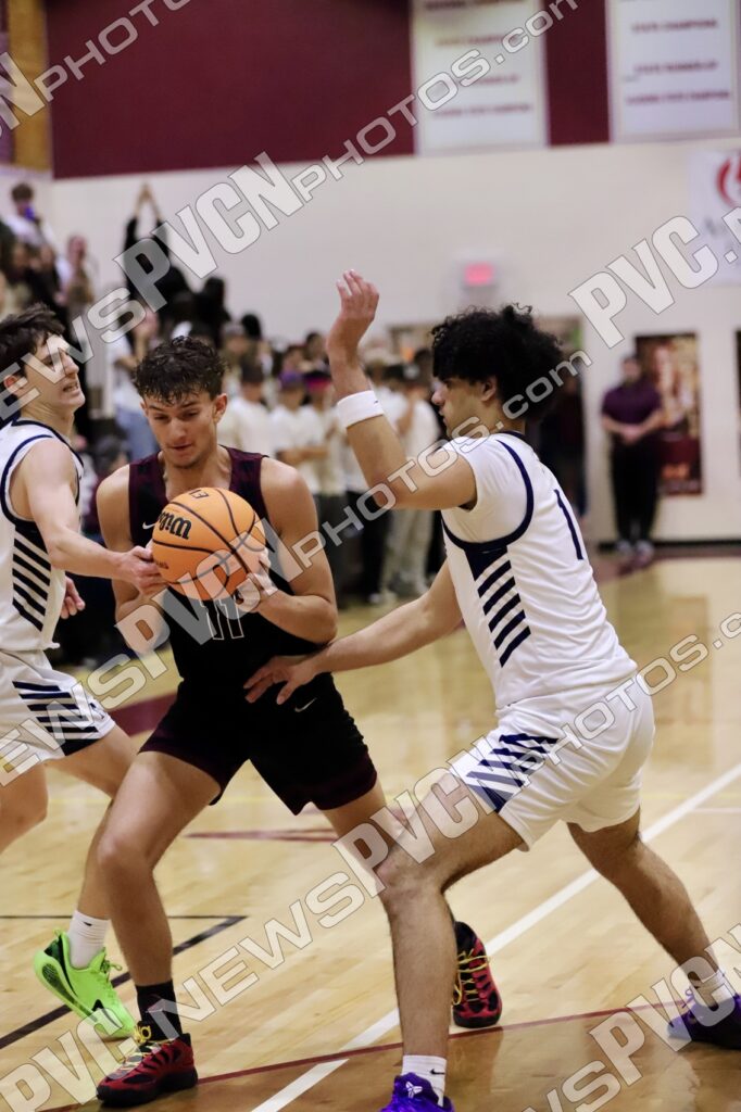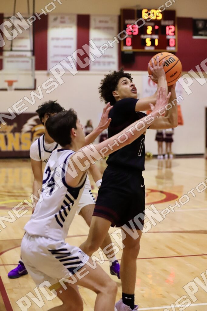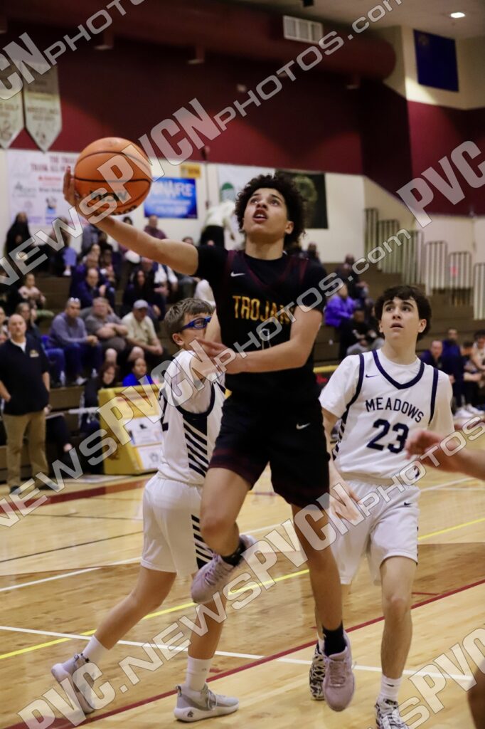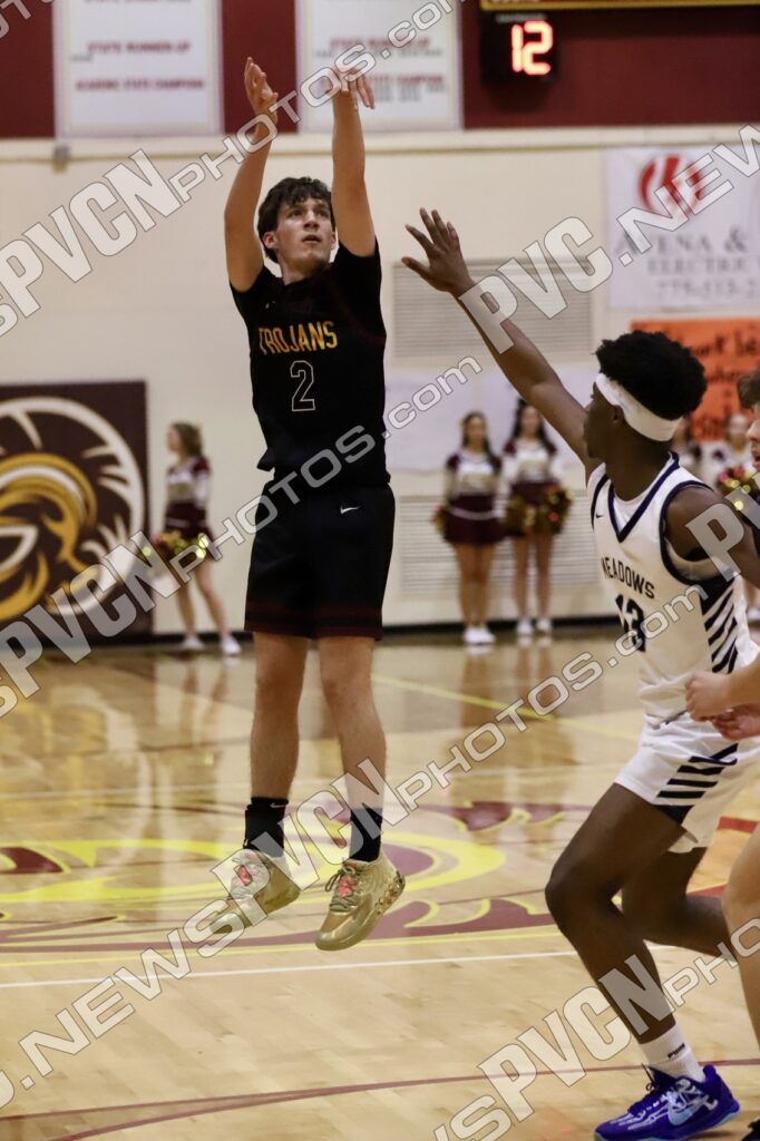The second quarter showcased Pahrump Valley’s defensive effort and determination. Aydon Veloz provided one of the biggest highlights of the night, recording multiple emphatic blocked shots that brought energy to the home crowd and shifted momentum defensively. The Trojans continued battling possession by possession, with Josh Slusher adding a basket inside while the defense worked to slow Meadows’ attack. Despite the strong effort, Meadows continued to find its rhythm offensively and took a 35–14 lead into halftime.