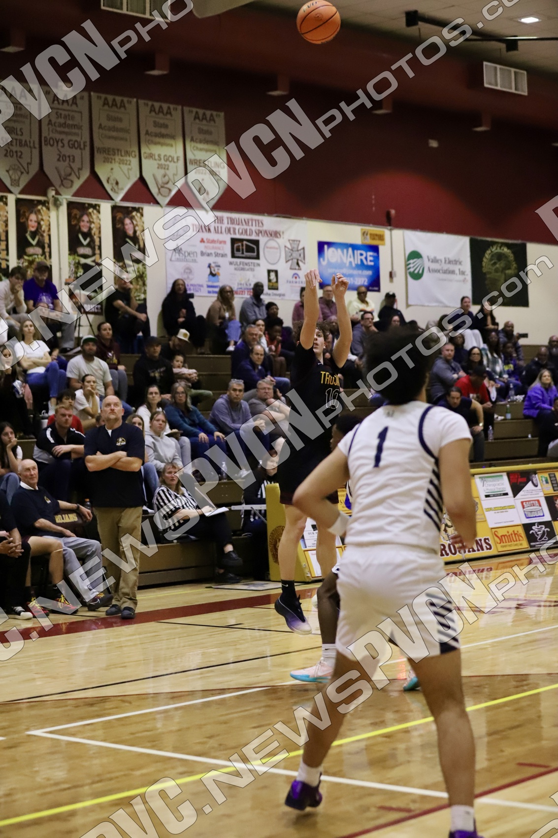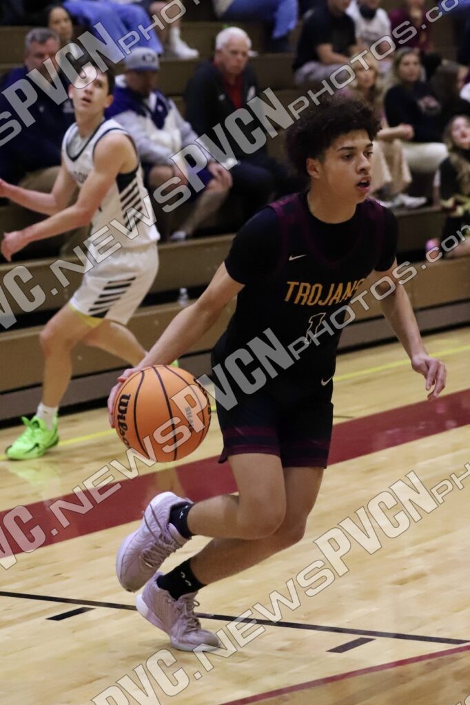 Trae Plein sparked Pahrump Valley’s offense with a strong drive to the basket for two points, followed by an aggressive inside jumper from Lucas Gavenda, who pushed through traffic to keep the Trojans within striking distance. Late in the quarter, Gavenda delivered a key offensive lift, knocking down back-to-back three-pointers that energized the crowd and helped close the gap as the Trojans trailed 21–12 at the end of the opening period.