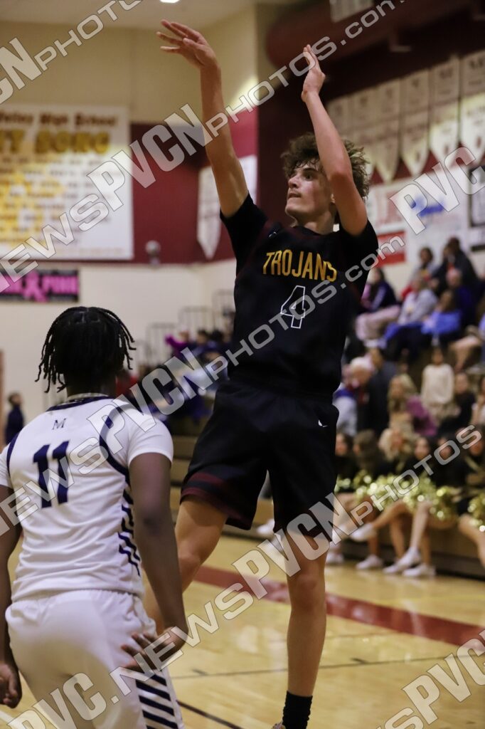 Even as Meadows extended its lead, the Trojans continued to fight. Plein added another three-pointer later in the third quarter and followed it with a determined drive to the basket in the fourth. Pahrump Valley’s effort never wavered as players continued battling through the final minutes. With the running clock in effect late, the Trojan bench entered the game, closing out the contest together as a team. Meadows ultimately claimed the 69–29 victory, but the final score did not fully capture the competitiveness and effort shown by the Trojans throughout the night.