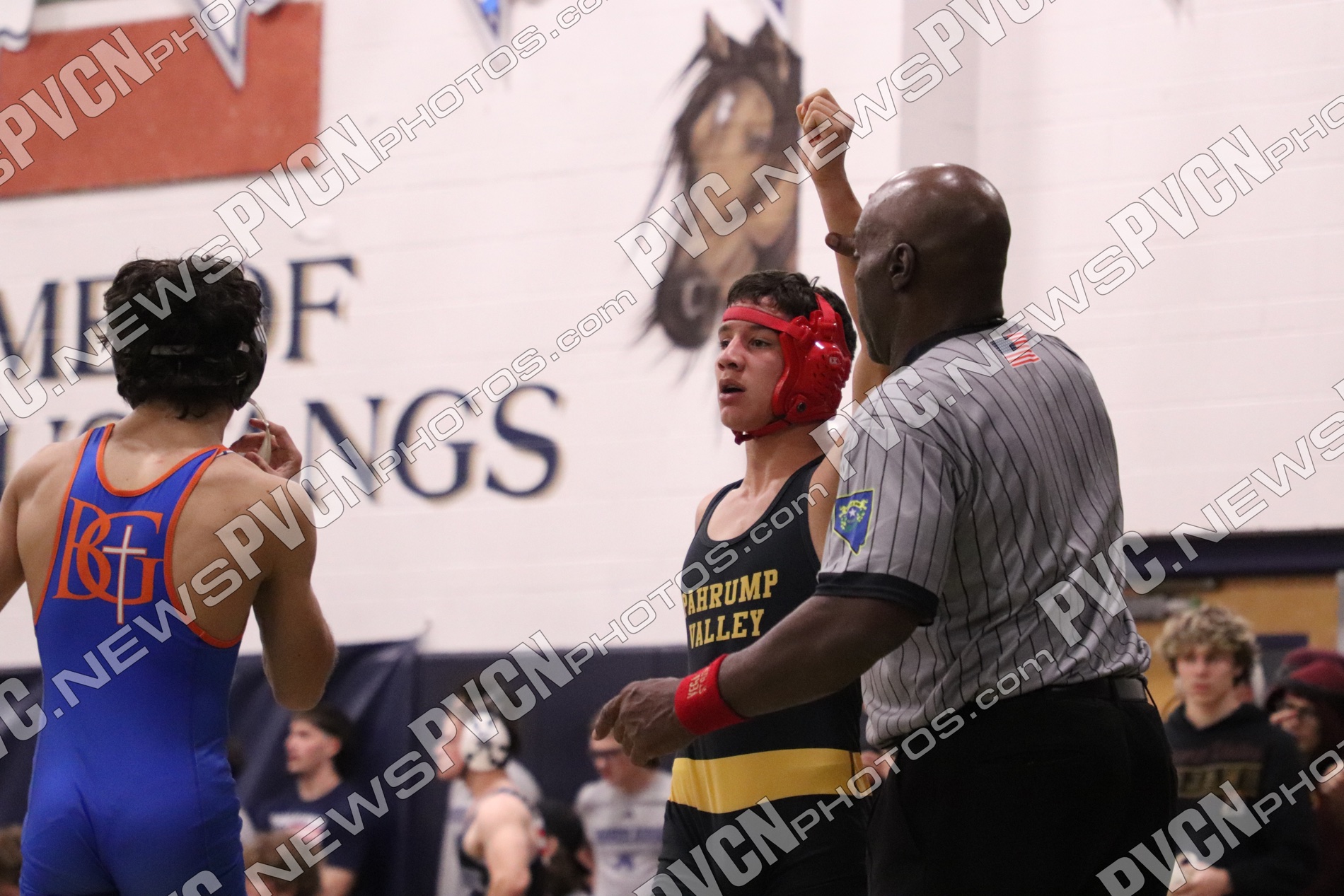 Friday’s action set the tone early as Pahrump Valley picked up a 49–28 victory over Kofa High School. The Trojans jumped out quickly behind a series of dominant performances, including falls from Ethan Rouse at 113 pounds, Joaquin Flores at 132, and multiple forfeits that helped build momentum throughout the dual. Zachary Hulderson added a decisive major decision at 120, while Wesley Cruff controlled his match at 157 with a 6–2 decision. The opening win reflected a balanced effort, with contributions spread throughout the weight classes.