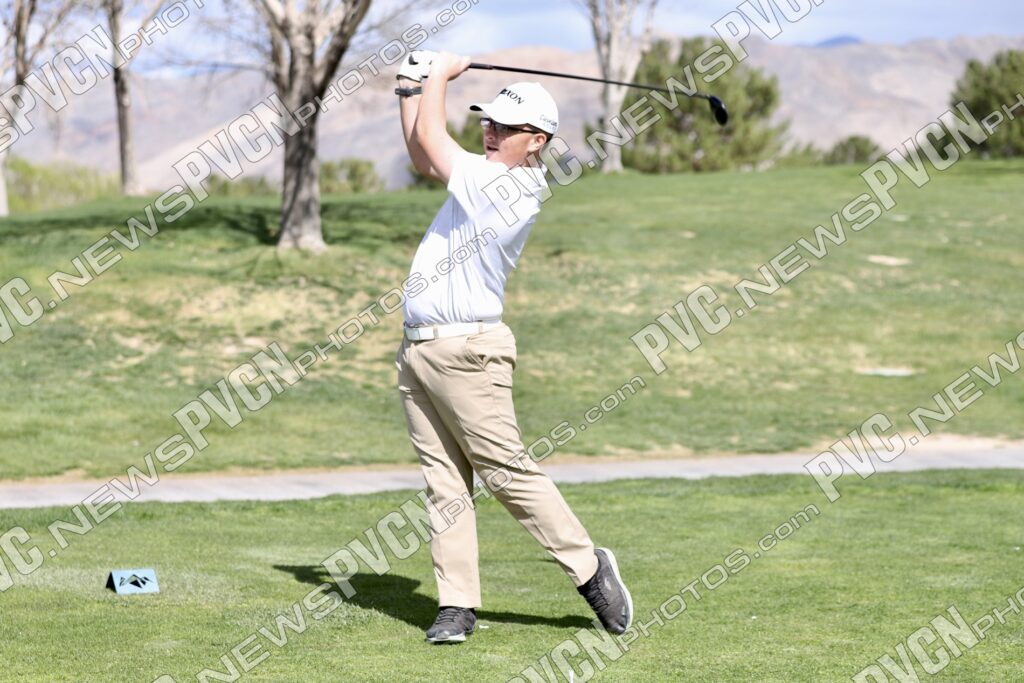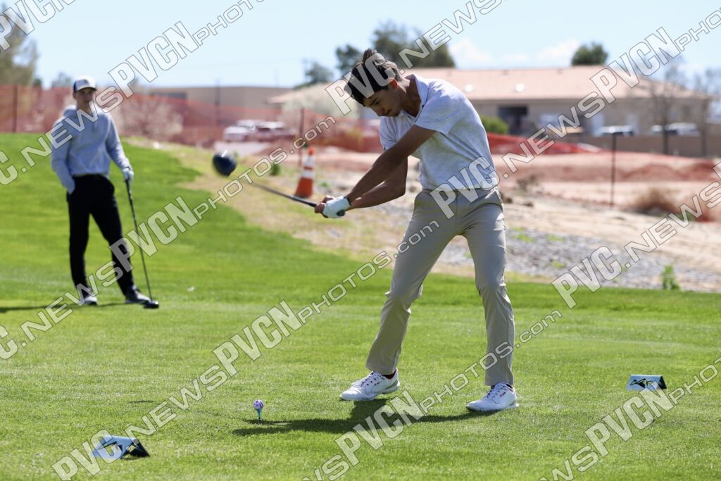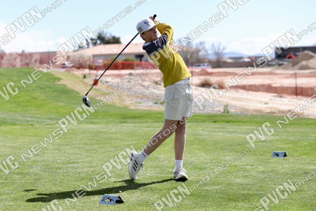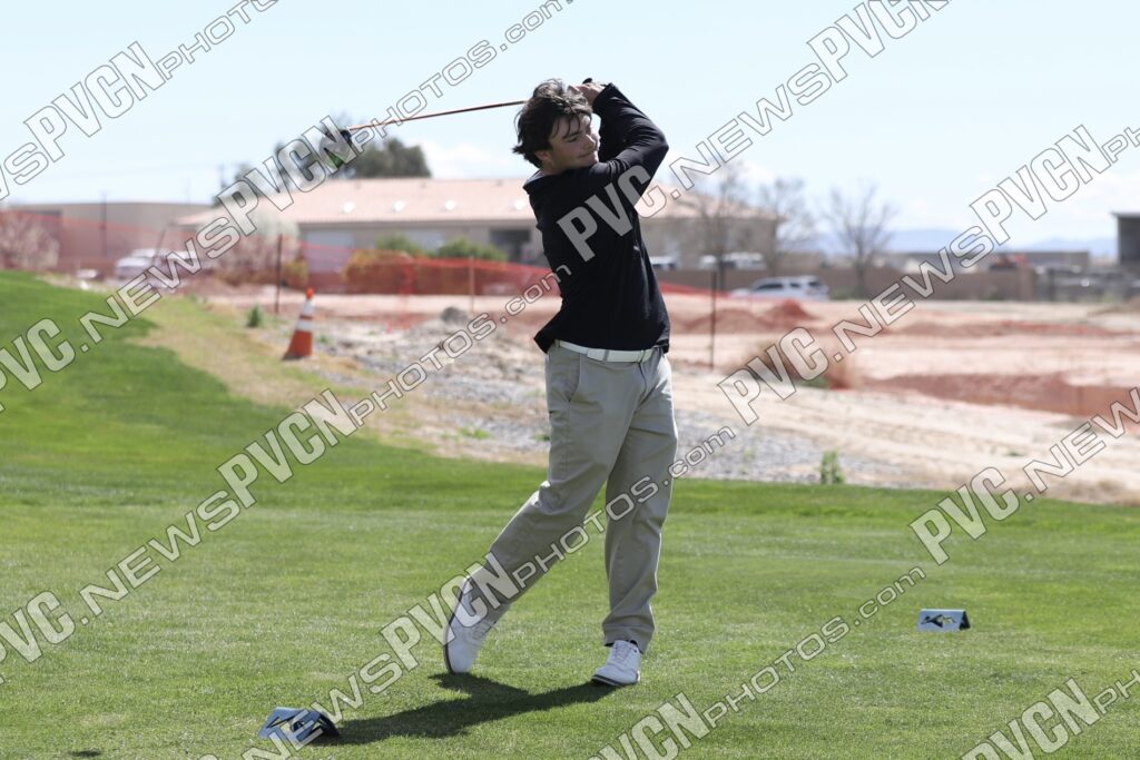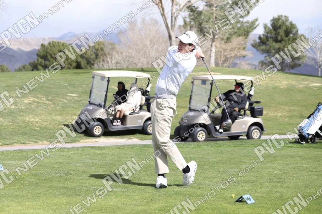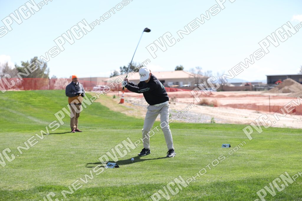 The Pahrump Valley High School boys’ golf team opened its league schedule on Thursday, March 5, competing on their home course at Mountain Falls Golf Club in Pahrump. Unlike the warm, sunny conditions just a week earlier when the Trojans hosted the 37th annual Pahrump Valley Invitational in temperatures in the 80s, the first league match brought much colder weather and steady winds, creating a more challenging day on the course.