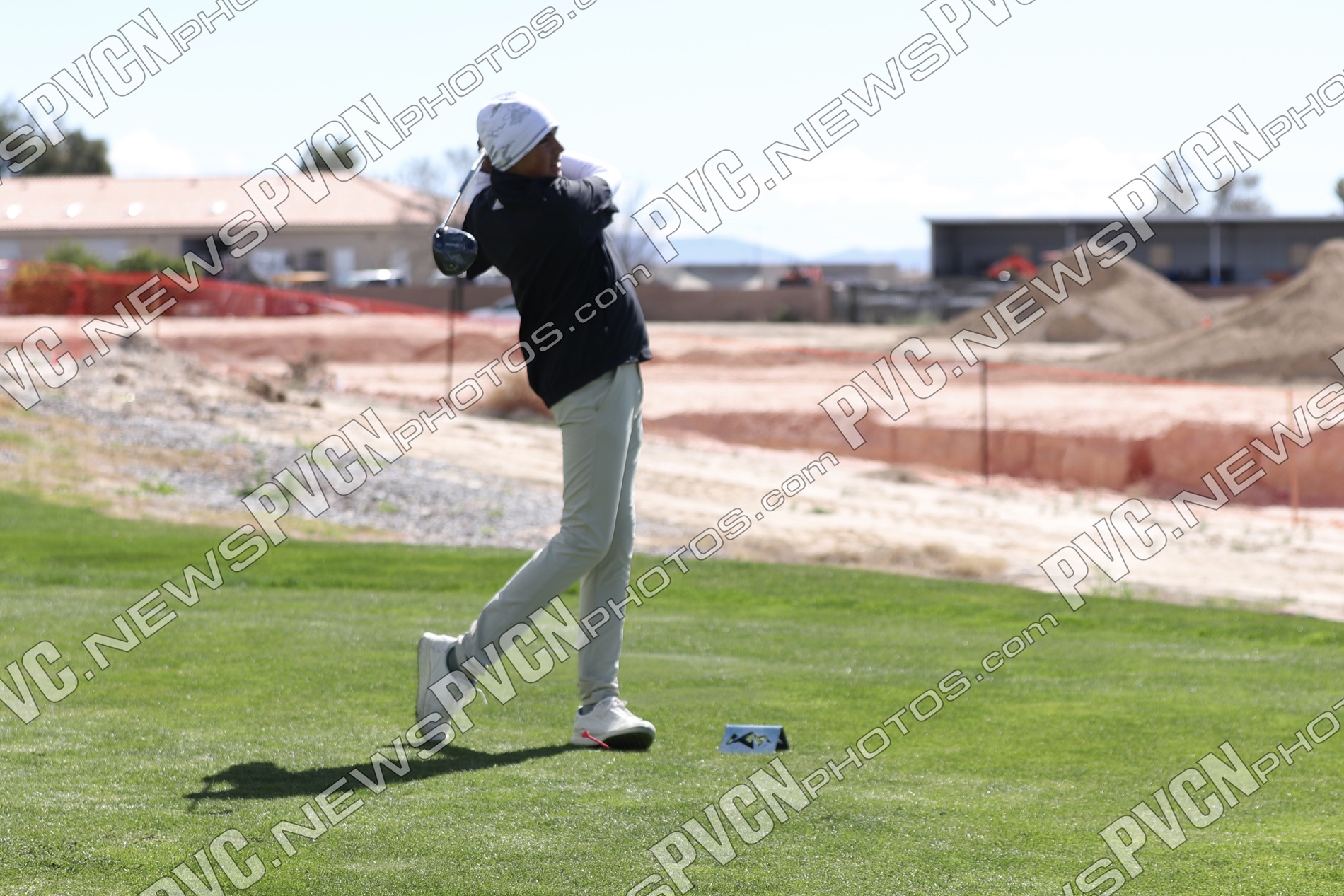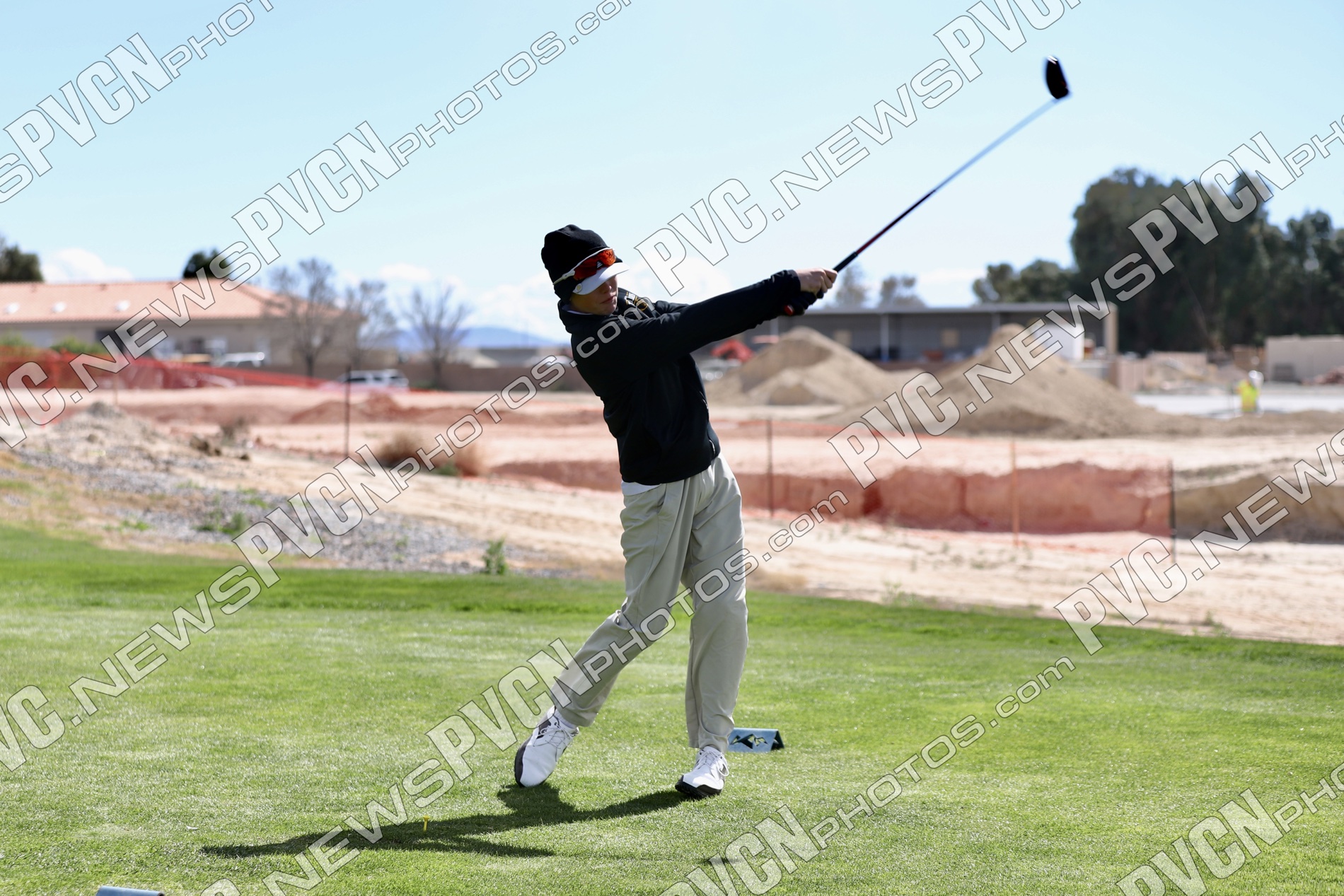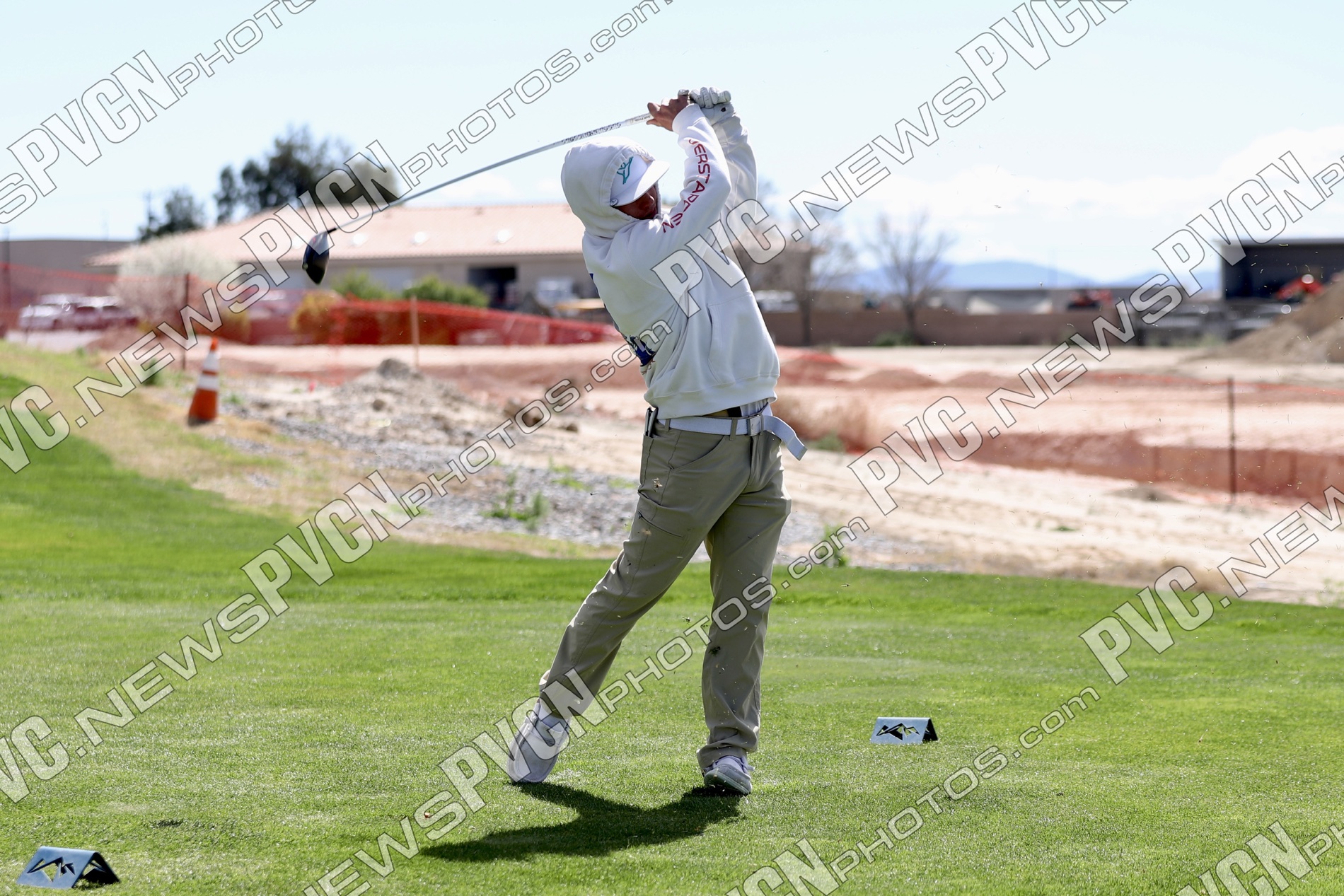 The Pahrump Valley High School boys’ golf team opened its league schedule on Thursday, March 5, competing on their home course at Mountain Falls Golf Club in Pahrump. Unlike the warm, sunny conditions just a week earlier when the Trojans hosted the 37th annual Pahrump Valley Invitational in temperatures in the 80s, the first league match brought much colder weather and steady winds, creating a more challenging day on the course.