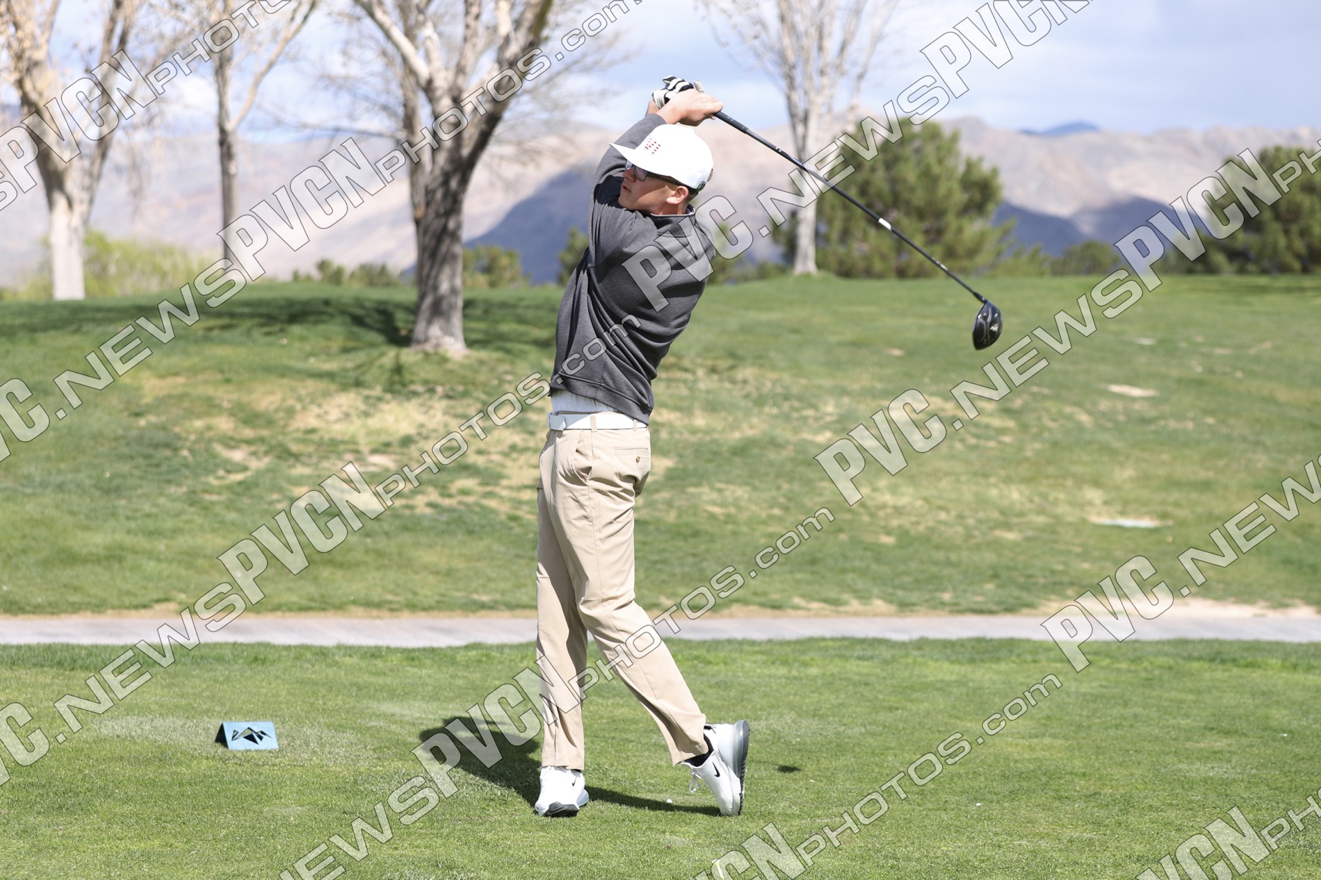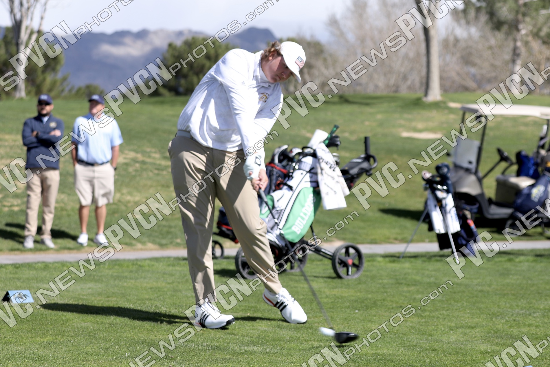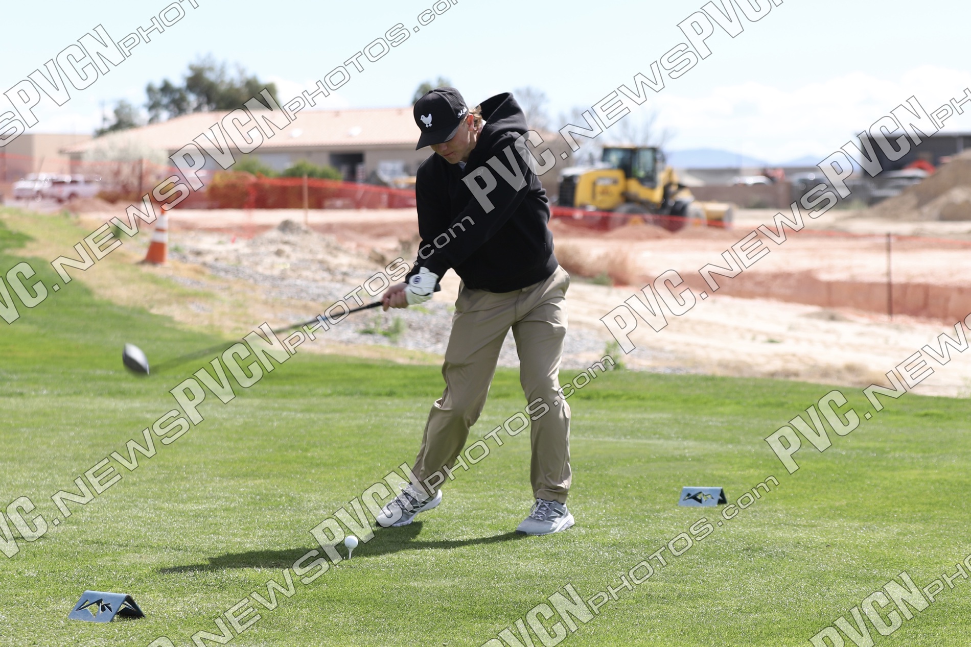 The Pahrump Valley High School boys’ golf team opened its league schedule on Thursday, March 5, competing on their home course at Mountain Falls Golf Club in Pahrump. Unlike the warm, sunny conditions just a week earlier when the Trojans hosted the 37th annual Pahrump Valley Invitational in temperatures in the 80s, the first league match brought much colder weather and steady winds, creating a more challenging day on the course.