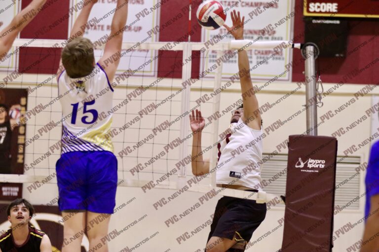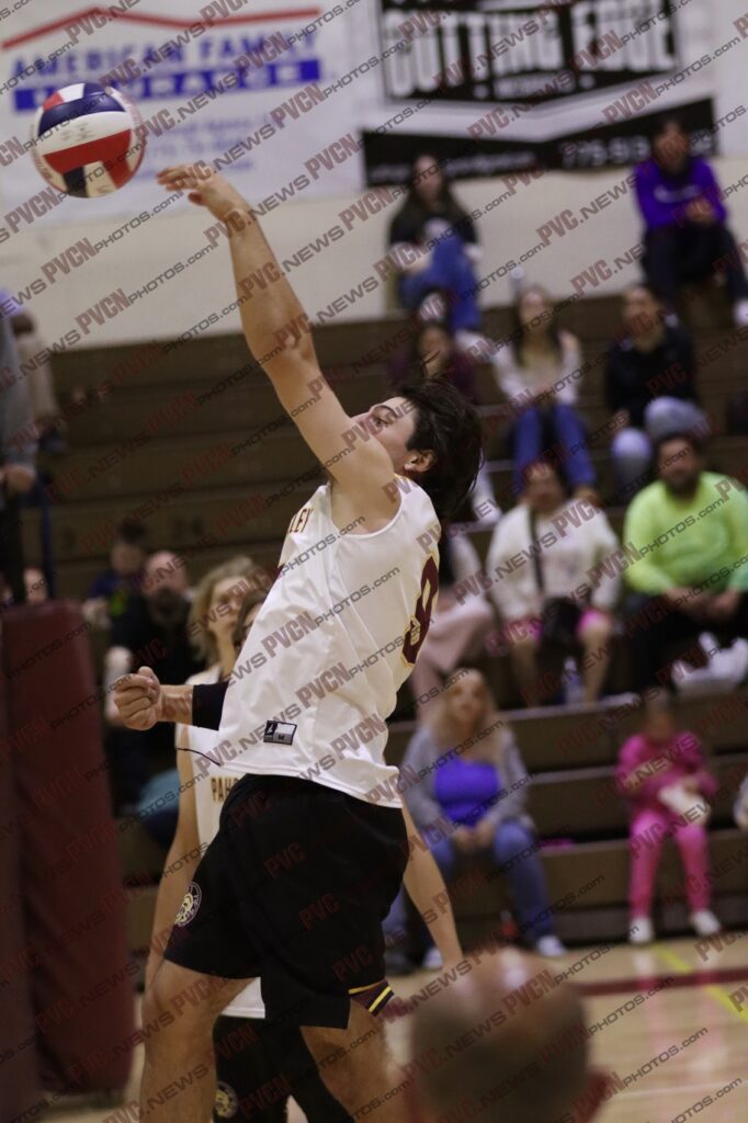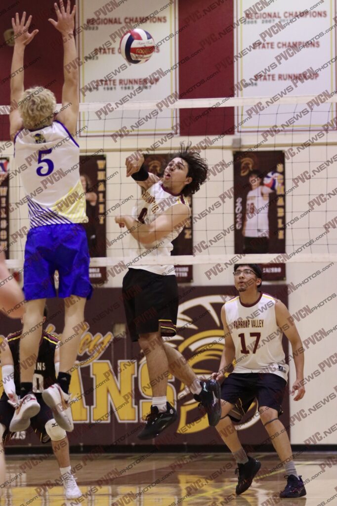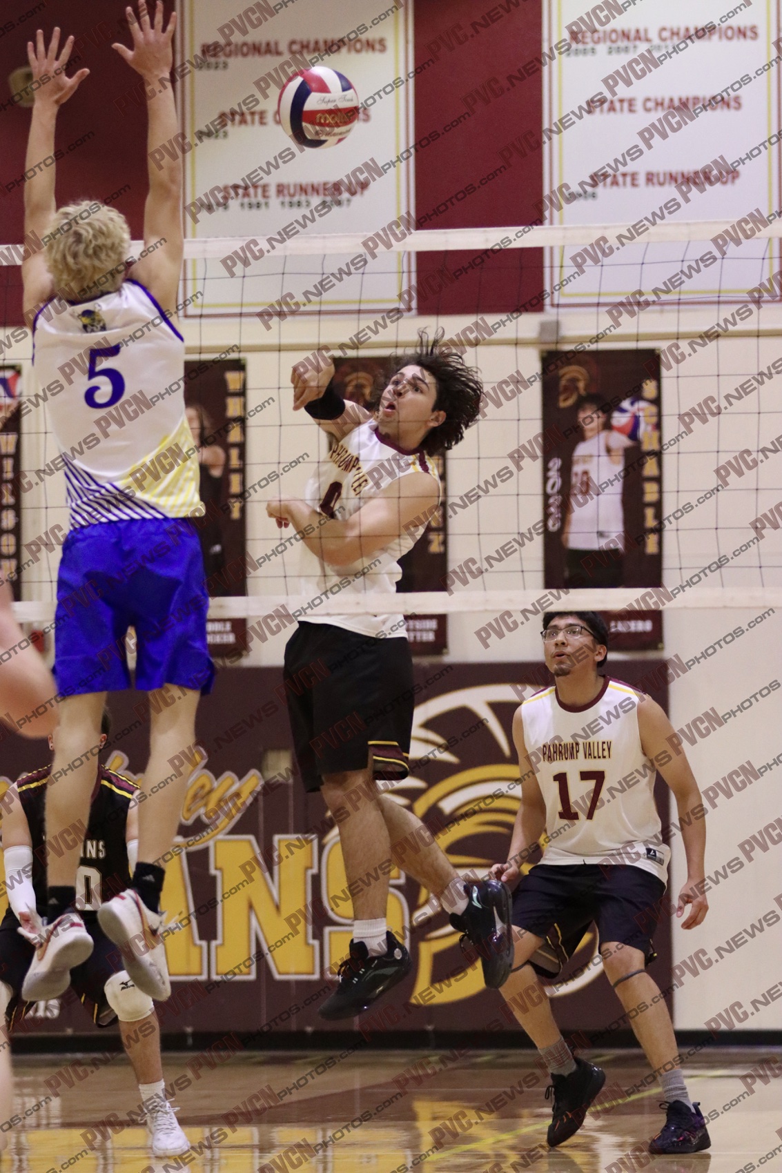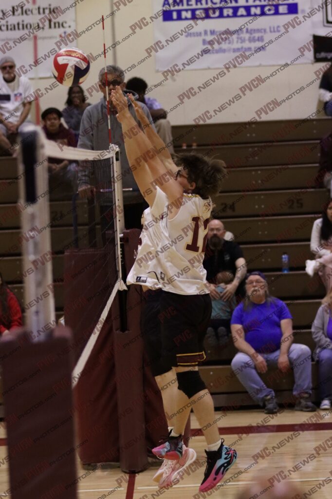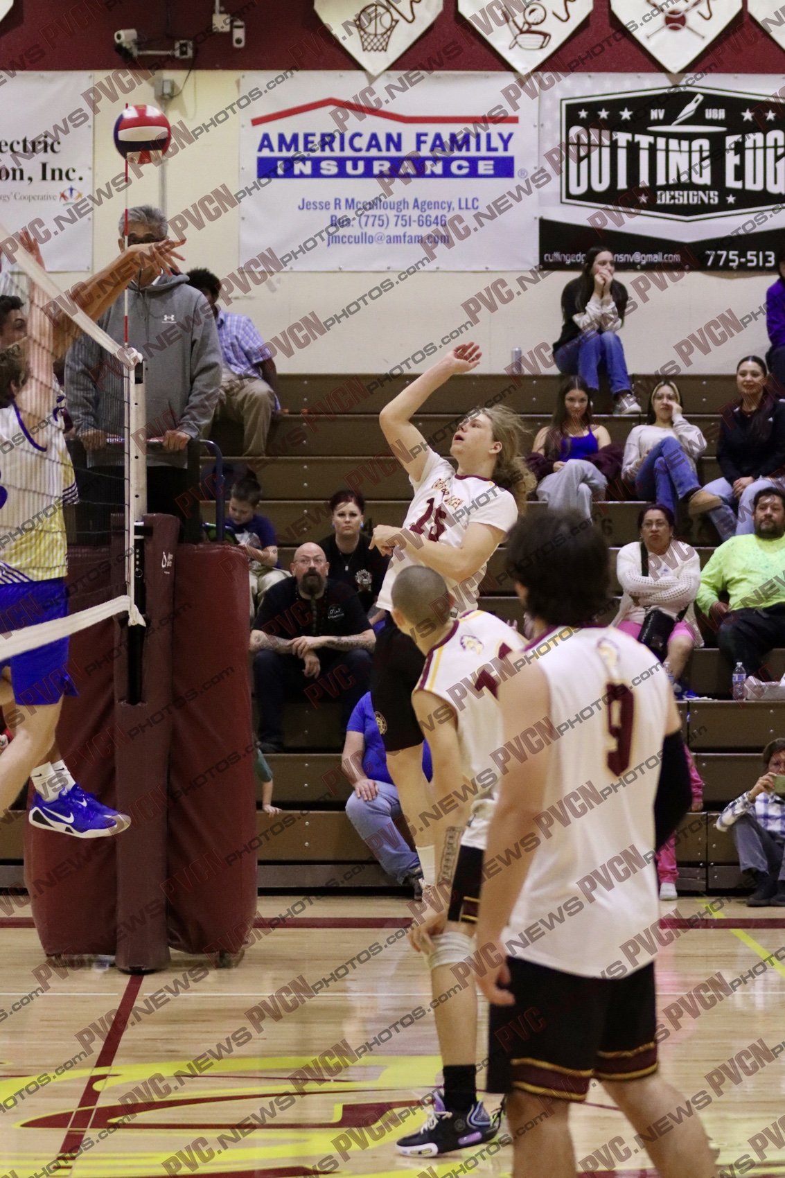 Pahrump Valley found its rhythm early in the opening set after falling behind 0-3. The Trojans responded with a steady run, highlighted by strong serving from William Coen and a series of defensive stops at the net. A block and back-to-back errors from Moapa Valley helped swing momentum, giving the Trojans a 6-3 lead.