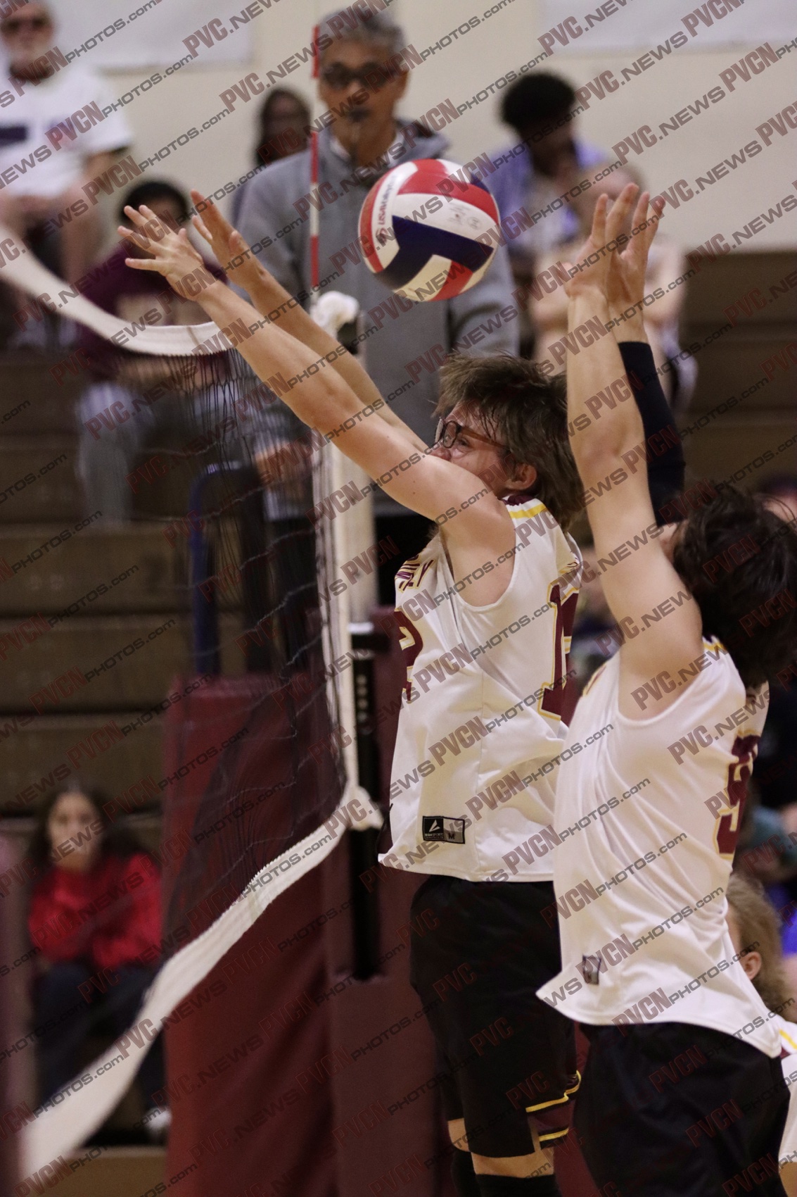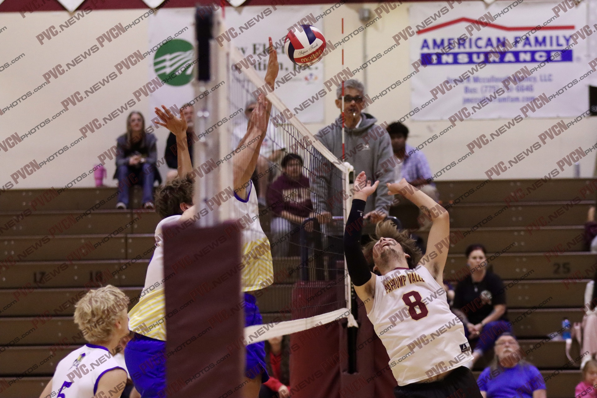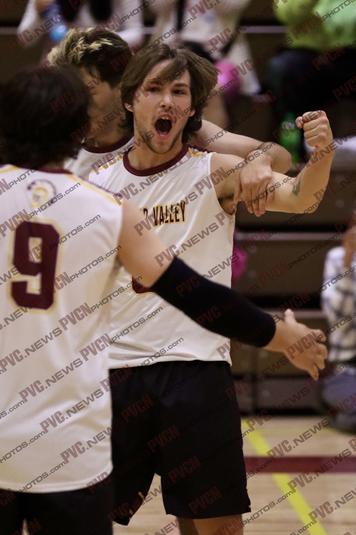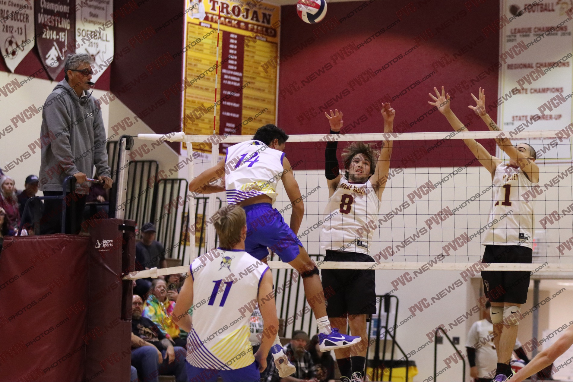 Pahrump Valley found its rhythm early in the opening set after falling behind 0-3. The Trojans responded with a steady run, highlighted by strong serving from William Coen and a series of defensive stops at the net. A block and back-to-back errors from Moapa Valley helped swing momentum, giving the Trojans a 6-3 lead.