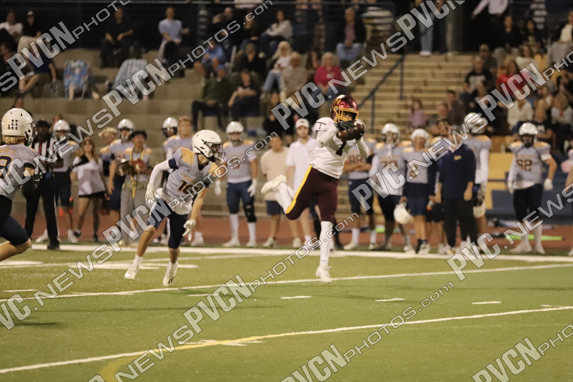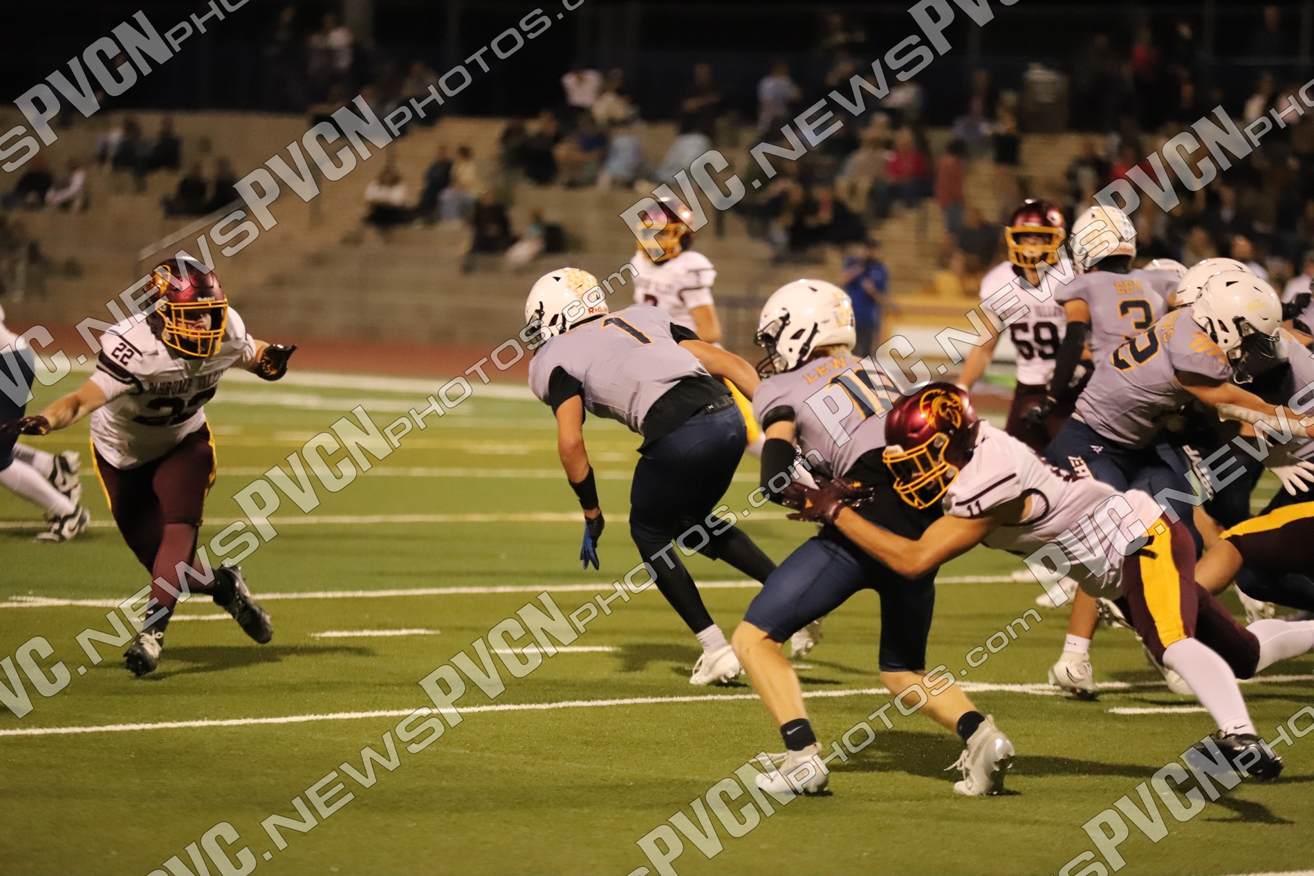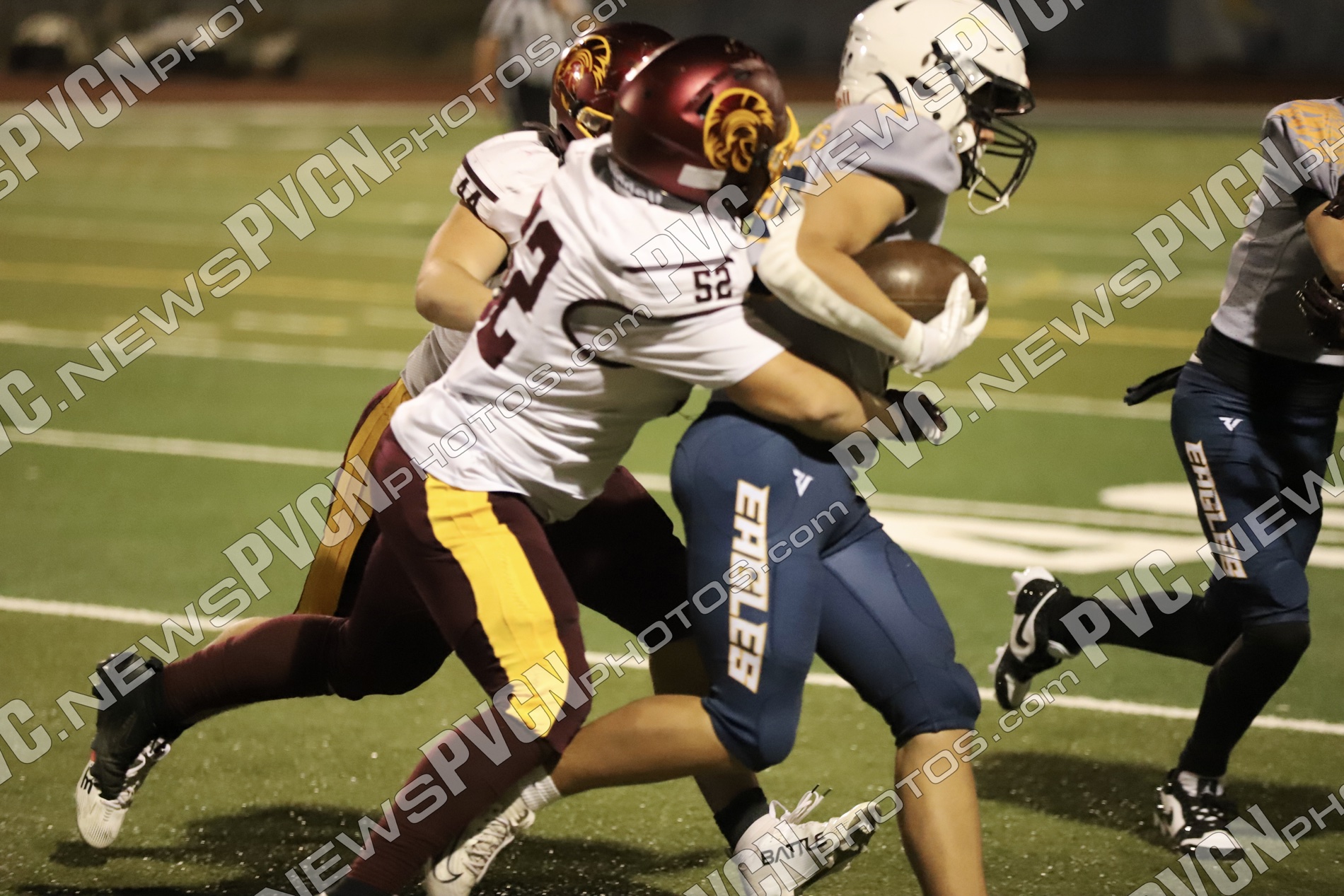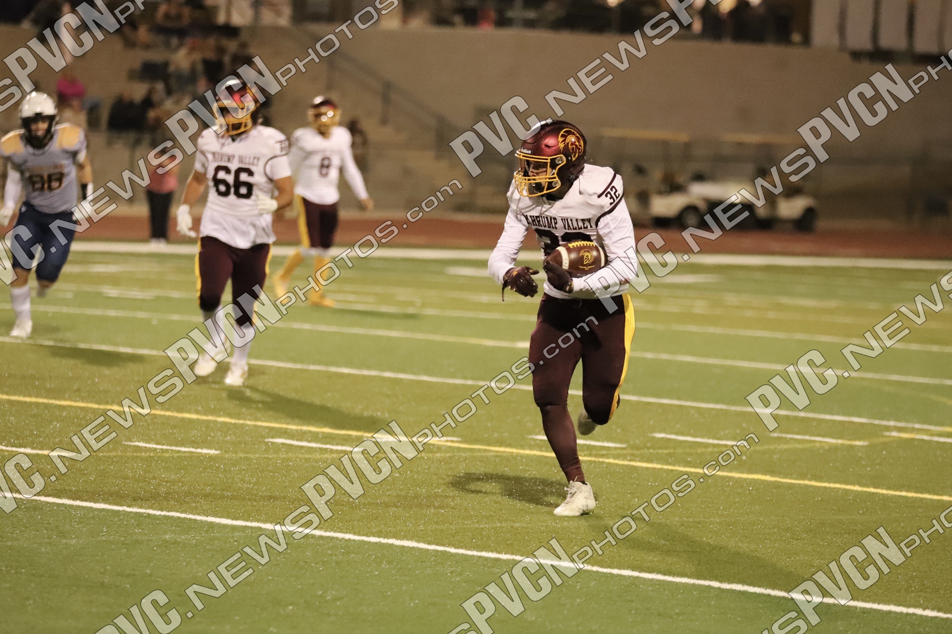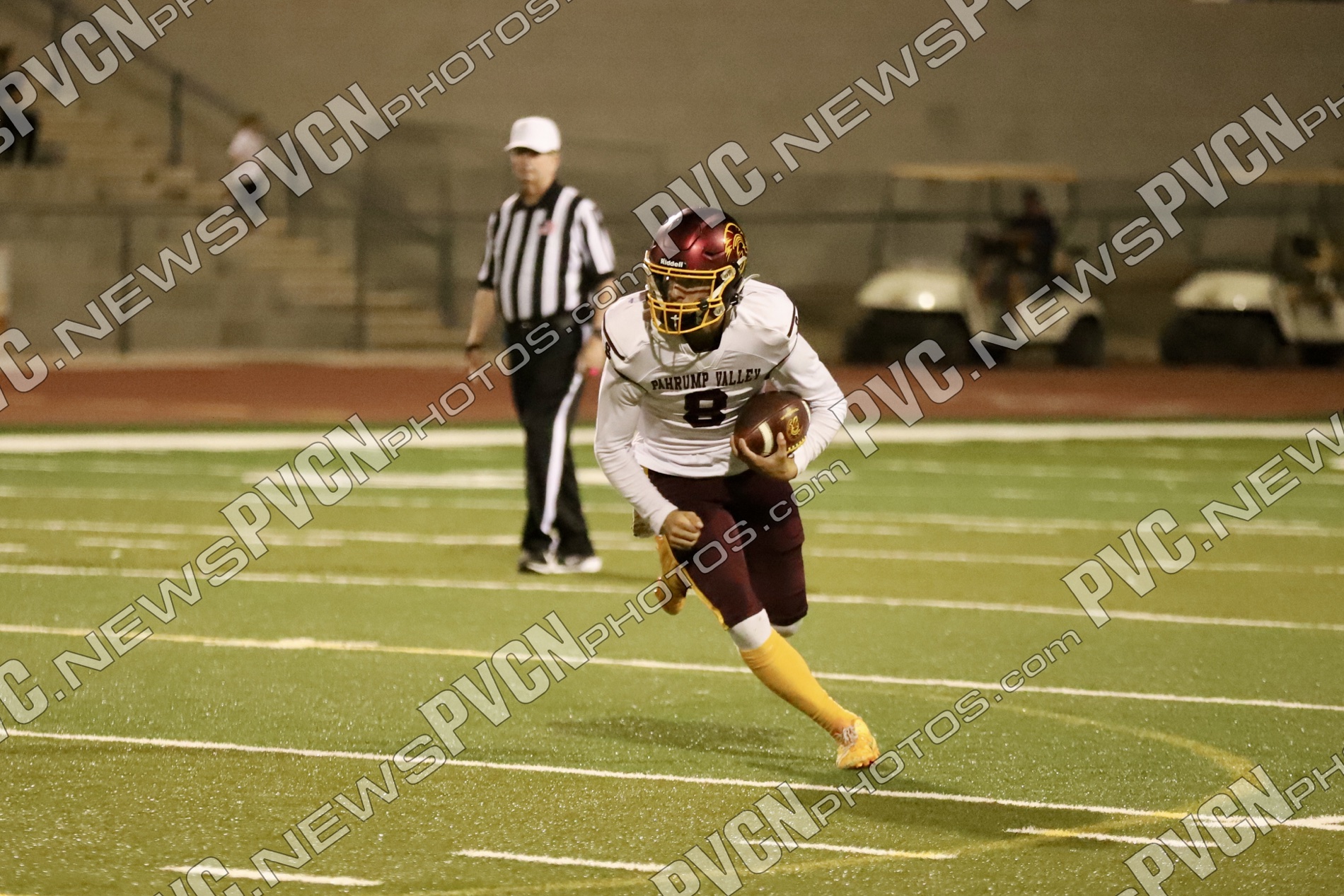 Pahrump’s defense came ready from the opening drive, halting Boulder City’s first possession and setting up solid field position for the offense. Quarterback Kayne Horibe and running back Austin Alvarez worked to establish the ground game early, with short gains moving the ball methodically downfield. After a defensive stand deep in Trojan territory that ended with Ashton McClard snagging a critical interception in the end zone, Pahrump’s offense seized the momentum.