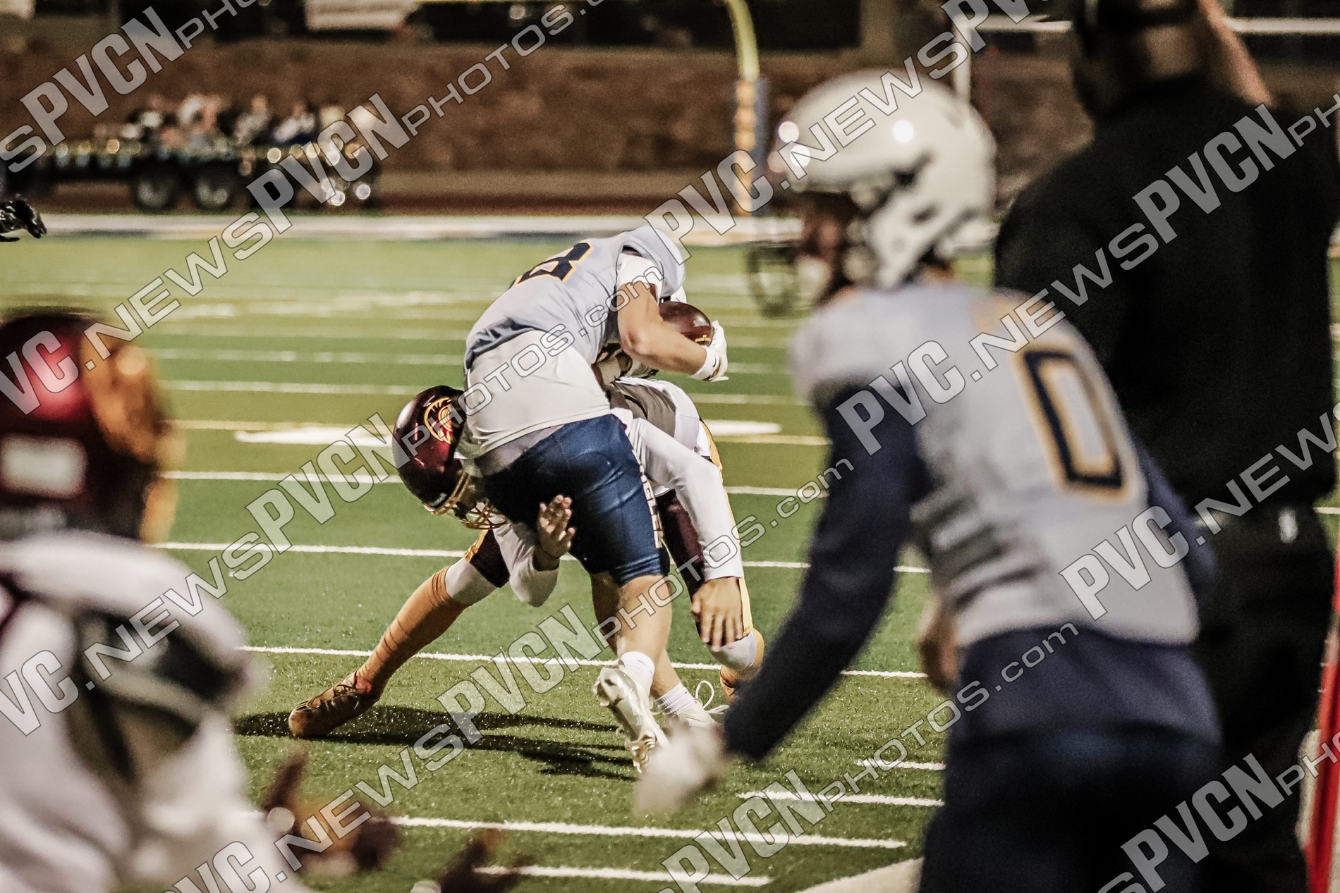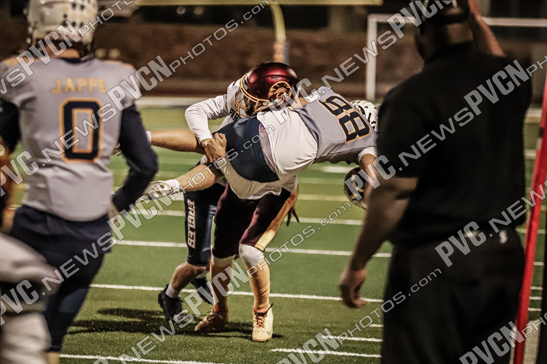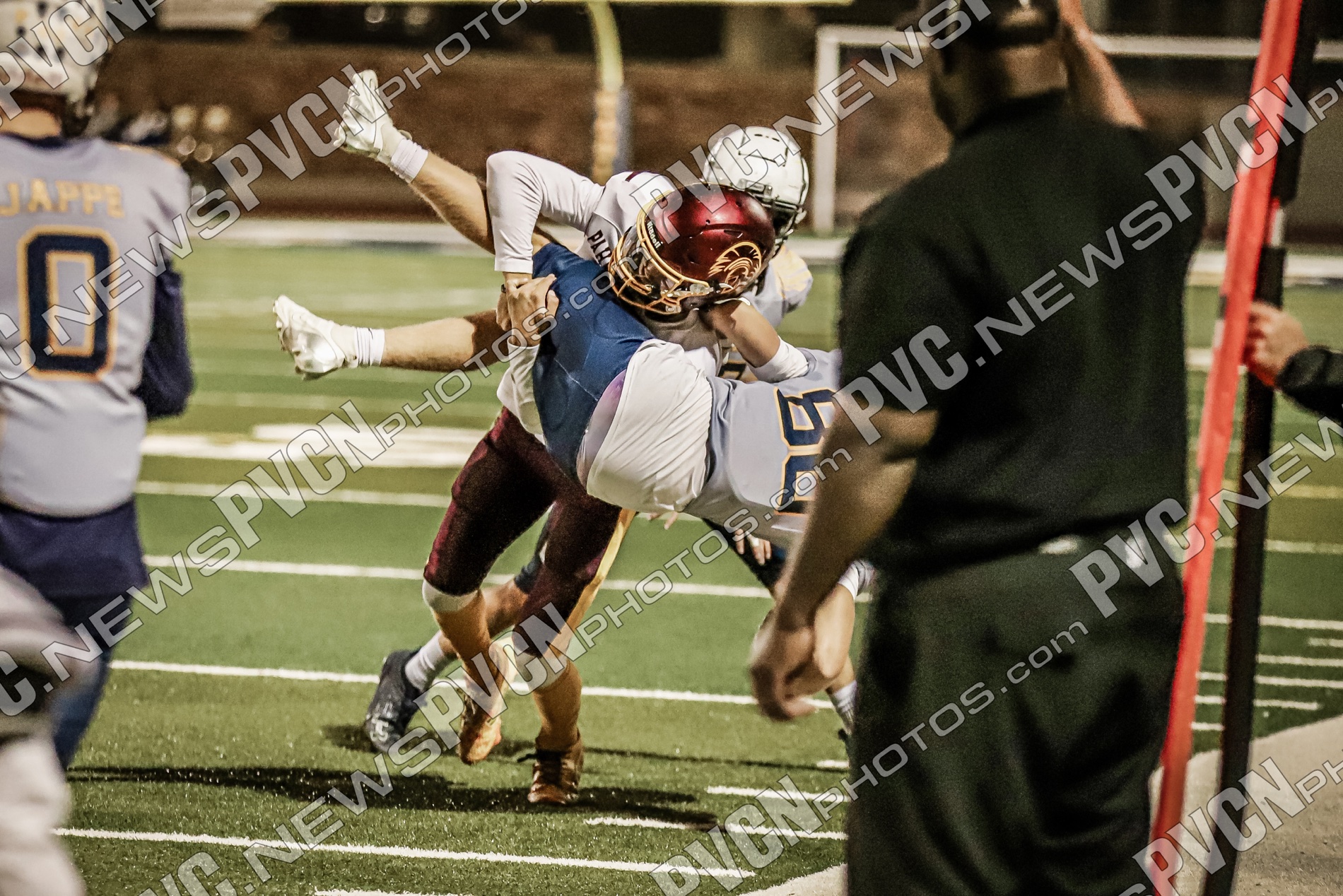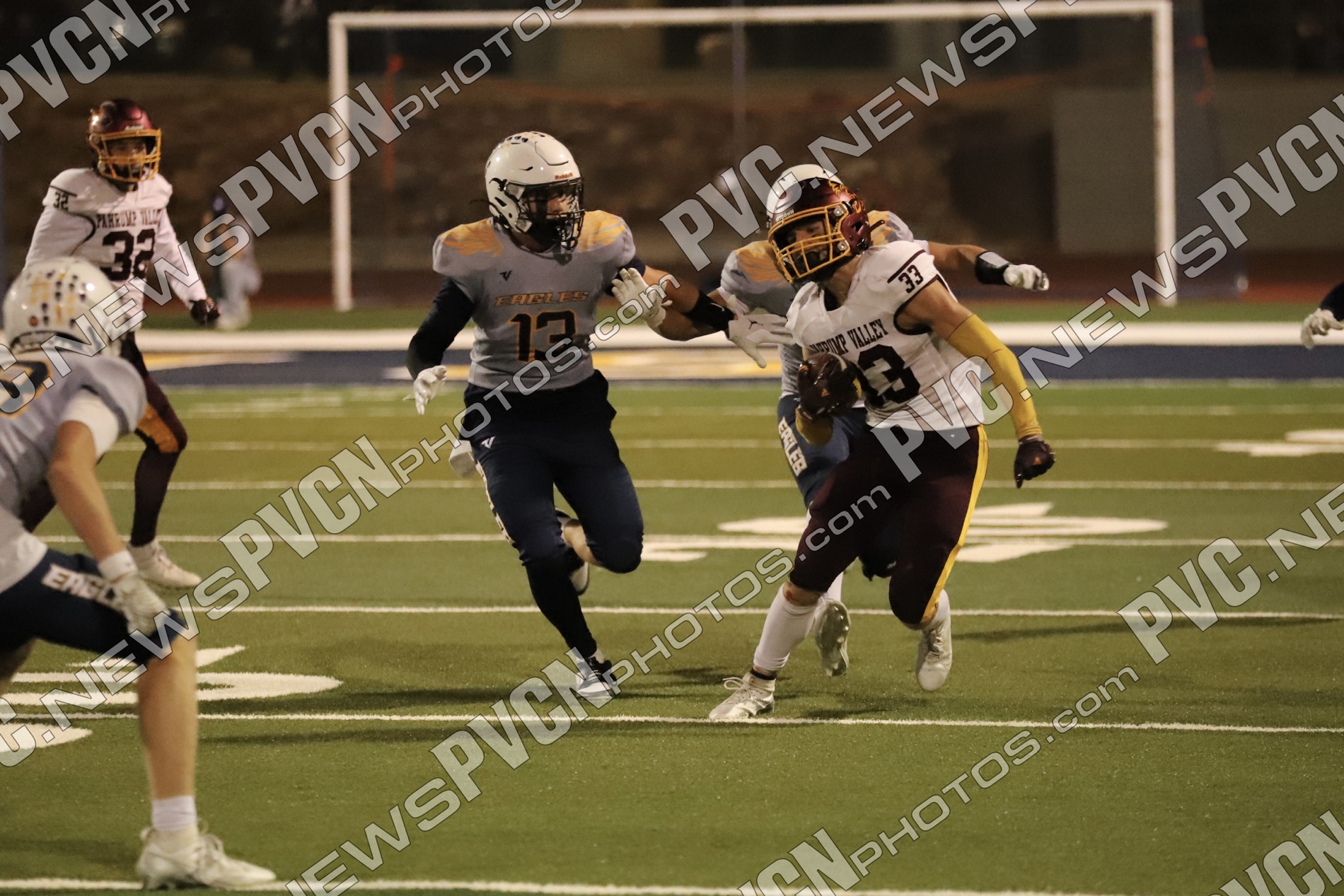 Pahrump’s defense came ready from the opening drive, halting Boulder City’s first possession and setting up solid field position for the offense. Quarterback Kayne Horibe and running back Austin Alvarez worked to establish the ground game early, with short gains moving the ball methodically downfield. After a defensive stand deep in Trojan territory that ended with Ashton McClard snagging a critical interception in the end zone, Pahrump’s offense seized the momentum.
