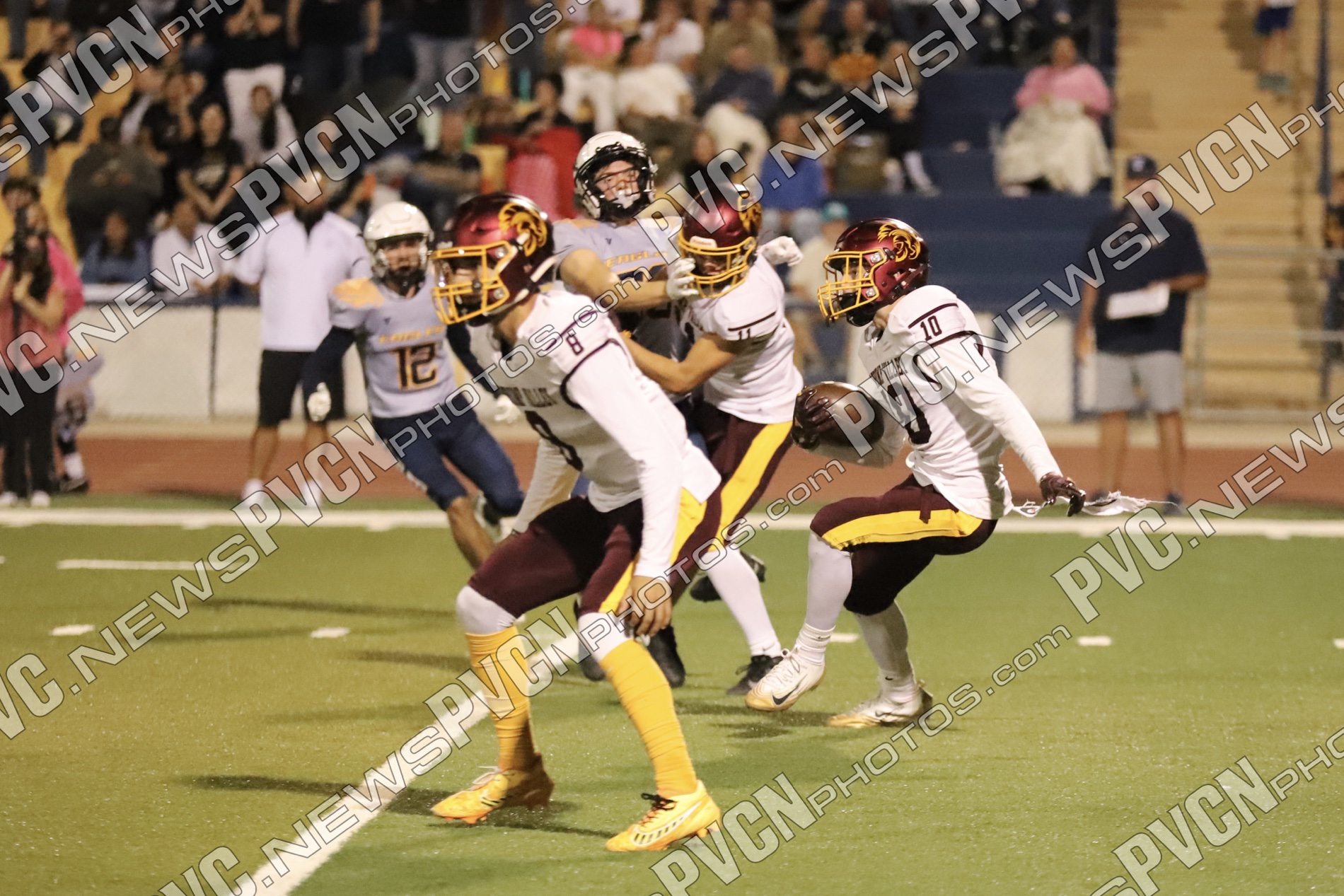 The Pahrump Valley High School Trojans fought through a tense, penalty-heavy battle on the road Friday, October 24, to earn a 14–6 victory over the Boulder City Eagles. The matchup tested the Trojans’ composure and grit as they overcame questionable calls, heated moments on the field and mounting frustration from both sidelines to close out their regular season with a statement win.