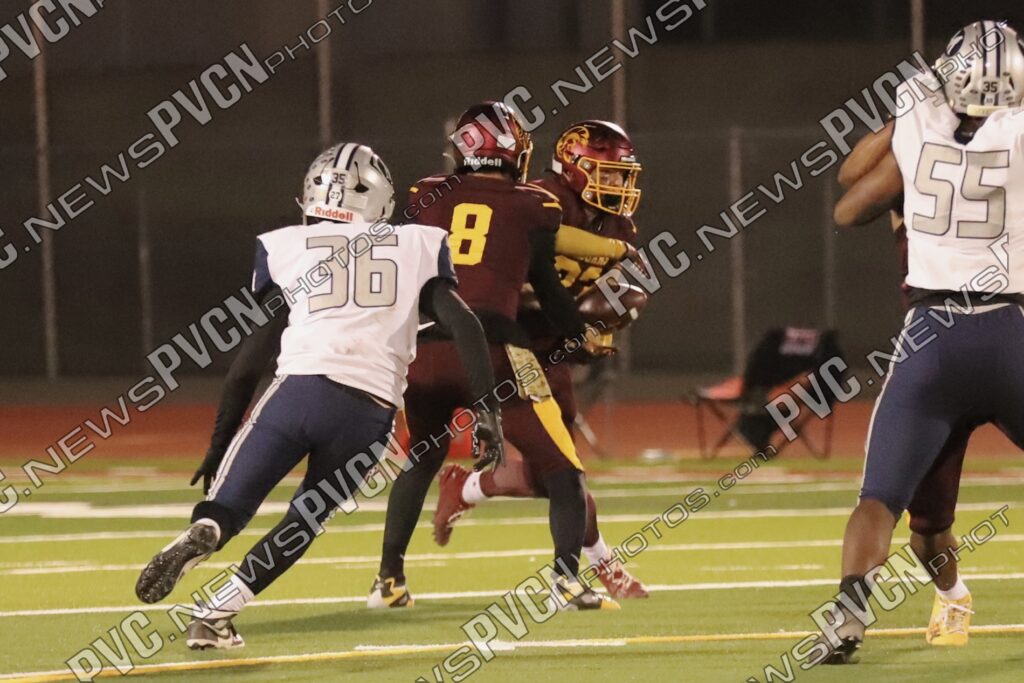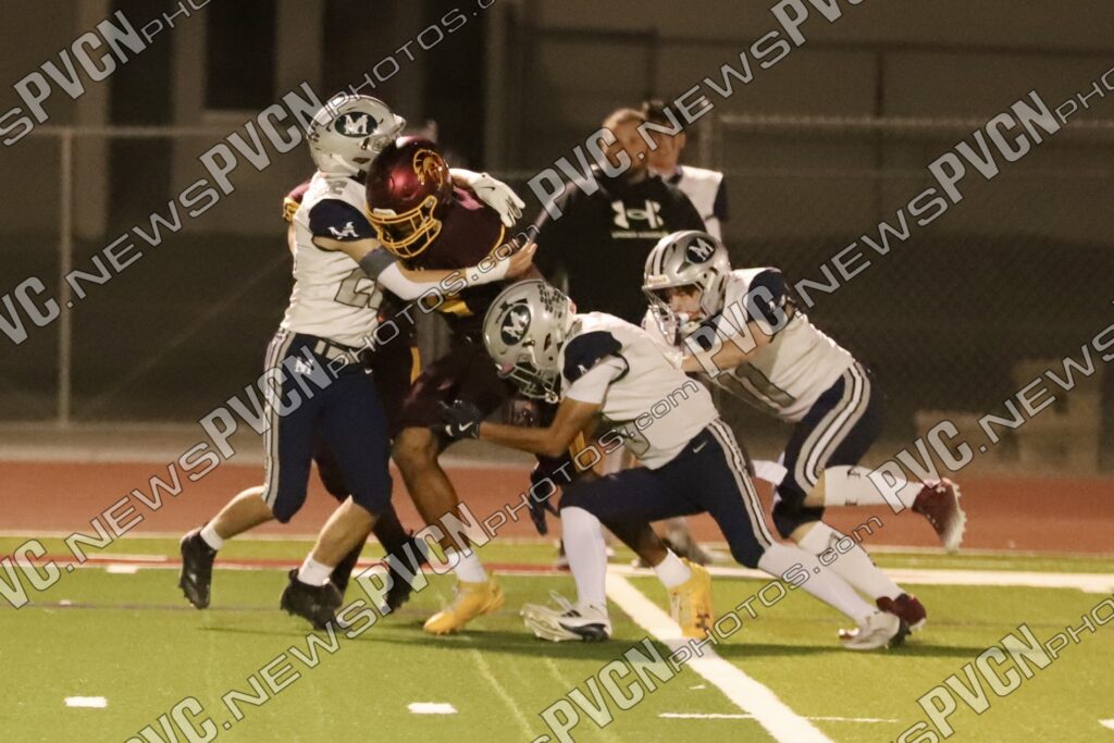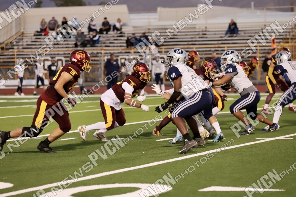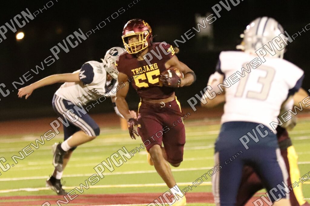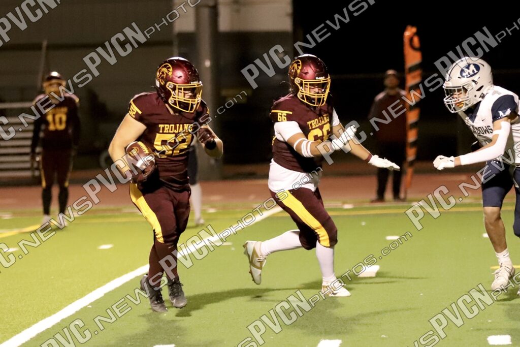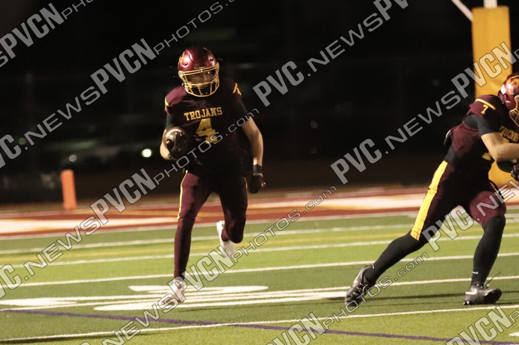 The defense continued to dominate as Jack Walker and Iyan Bosket stopped the Mustangs behind the line, and Ashton McClard and Ryan Hamlin each broke up pass attempts. After a blocked punt, the Trojans took over again near the 39-yard line. A keeper by Horibe moved the ball to the 4-yard line, setting up Alvarez for his third touchdown of the quarter. Slusher’s extra point was good, and Pahrump was ahead 21–0 with just over five minutes left in the first.