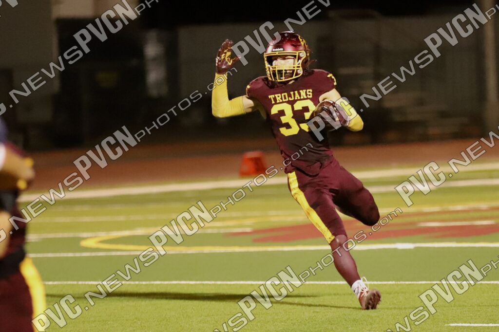 Just minutes later, Alvarez struck again—breaking tackles on his way to yet another rushing touchdown, capped by a good extra point from Slusher. With 7:59 left in the second quarter, the Trojans led 42–6, and the game moved into a running clock. Before halftime, Bosket powered through defenders for a touchdown run with a minute remaining, sending Pahrump into the break with a 49–6 lead.