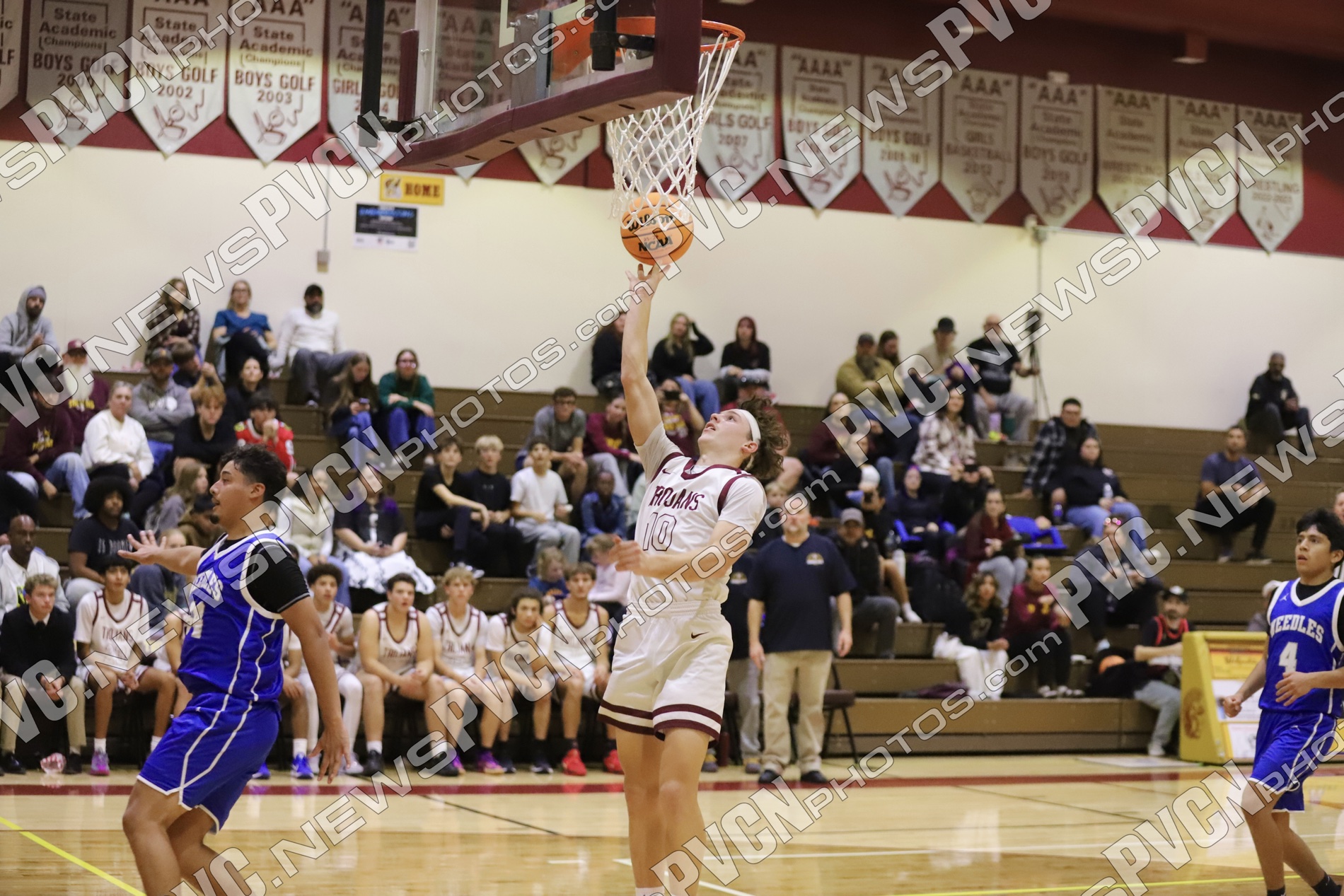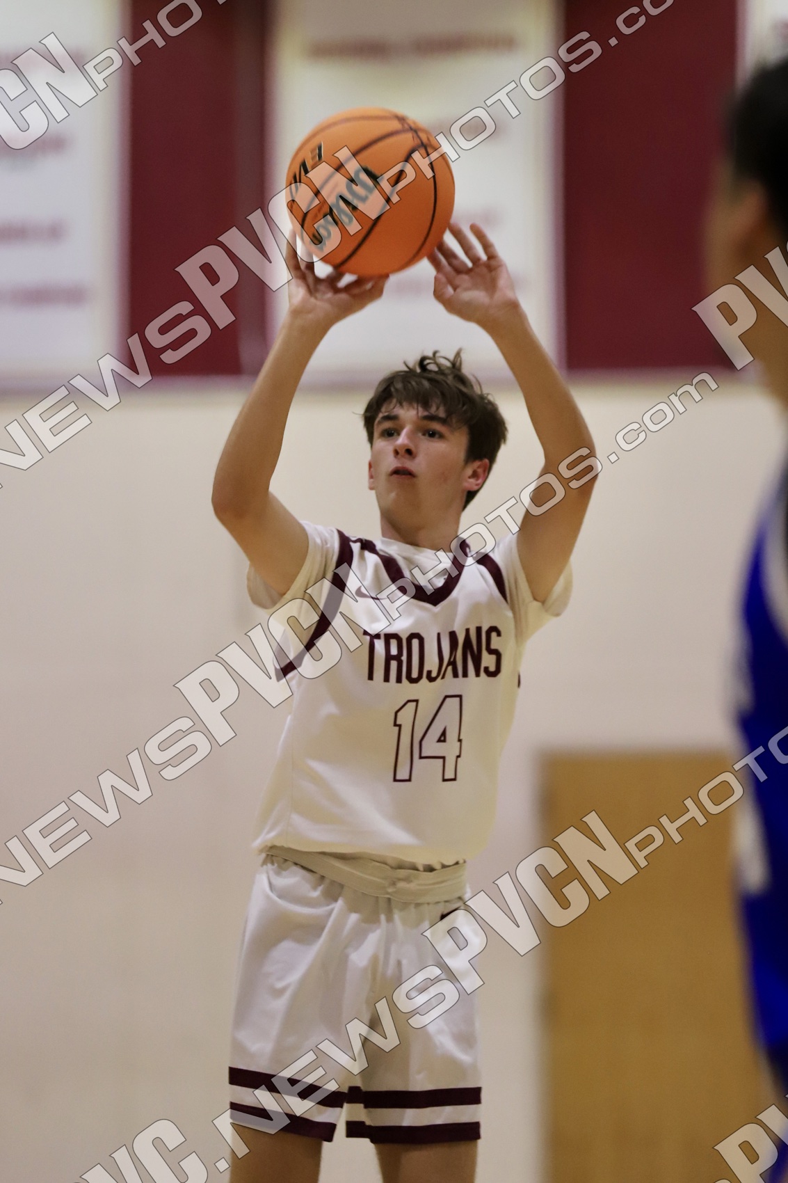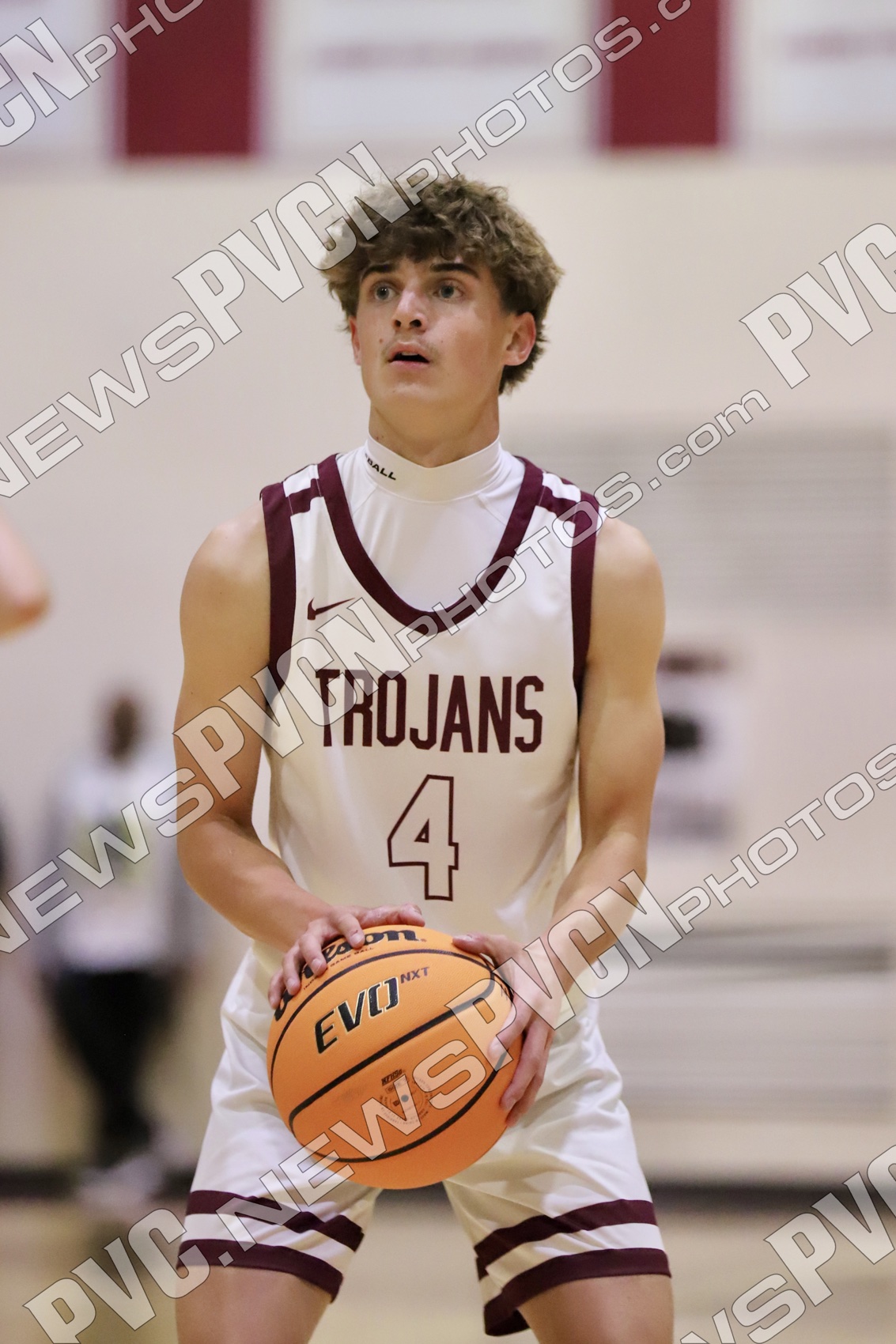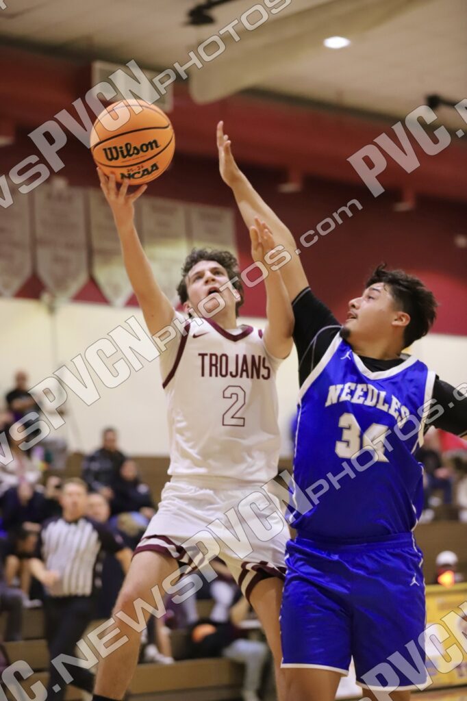 Needles struck quickly out of the gate, hitting two early baskets — first a short jumper, then a strong drive to the rim — to go up 4–0. But the Trojans responded with composure. At 5:48, Keir Sheppard knocked down PVHS’s first points of the season, and Lucas Gavenda followed almost immediately with the game-tying layup. Needles briefly regained the lead with a three-pointer, but the Trojans answered with one of their sharpest offensive bursts of the night.