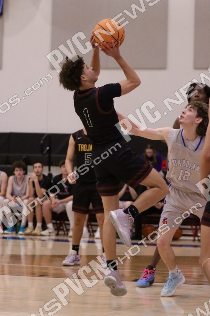 The Guardians jumped out to a brief lead, but Pahrump Valley answered quickly. Sheppard drove from the top of the key for a tying basket, and Lucas Gavenda added a strong post finish on an inbound play to keep the Trojans competitive. Despite GV Christian knocking down a three-pointer to stretch the margin to 13-6, Pahrump Valley responded with determination. Slusher threaded a pass through traffic to Gavenda for a tough bucket, and Aydon Veloz followed with a spinning putback after an offensive rebound to cut into the deficit.