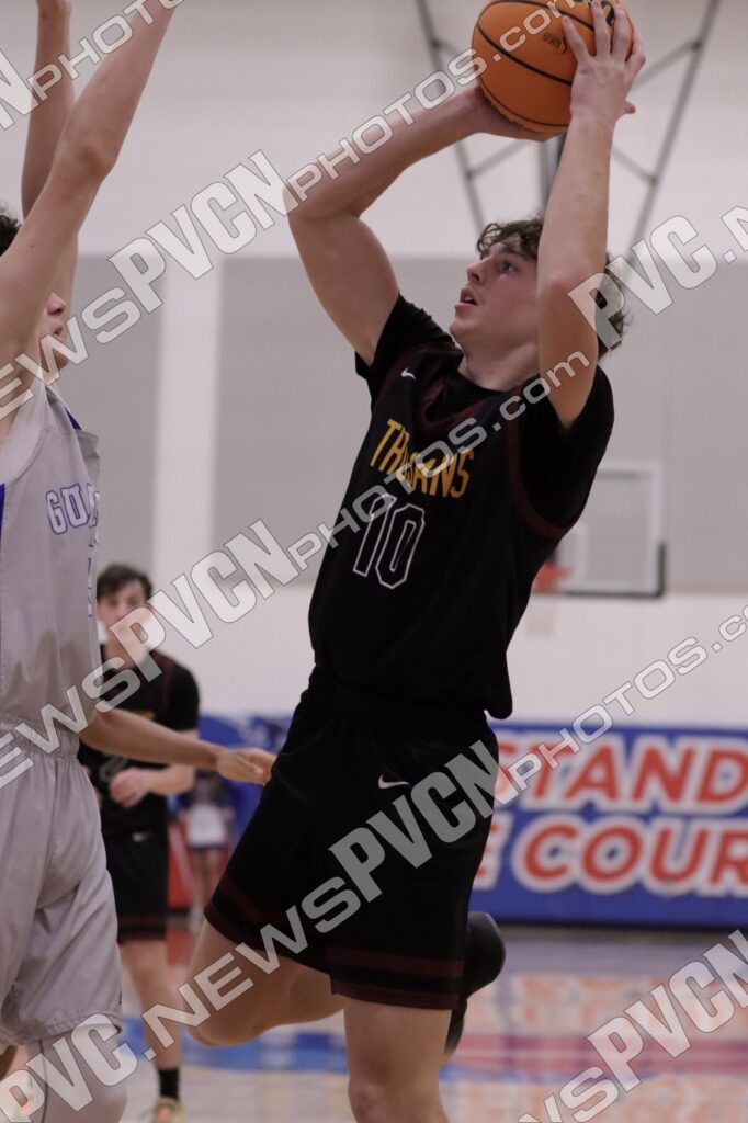 Pahrump Valley’s transition game became a major factor as Briscoe scored on a on a pass down court, where he waiting under the net, and then connected with Plein again for another layup to cut the deficit to one possession. With 1:45 remaining in the half, Sheppard finished a quick transition layup to give the Trojans their first lead at 27-26. After GV Christian regained a slim edge, Plein grabbed an offensive rebound and earned a trip to the free-throw line with just seconds left, sinking one to send the teams into halftime tied at 28-28.