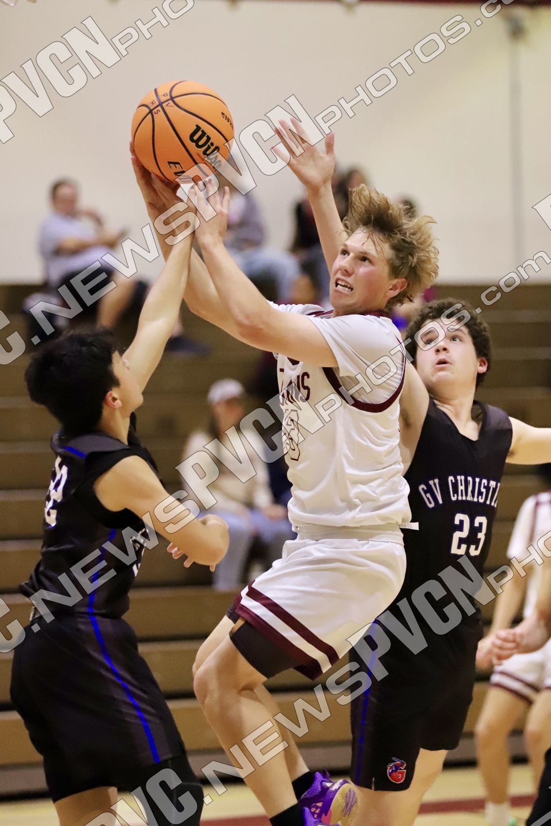 The Pahrump Valley High School boys’ varsity basketball team hosted the Green Valley Christian Guardians at home on Wednesday, Dec. 10, in a game that provided valuable experience as the Trojans continue to grow through the early portion of the season.