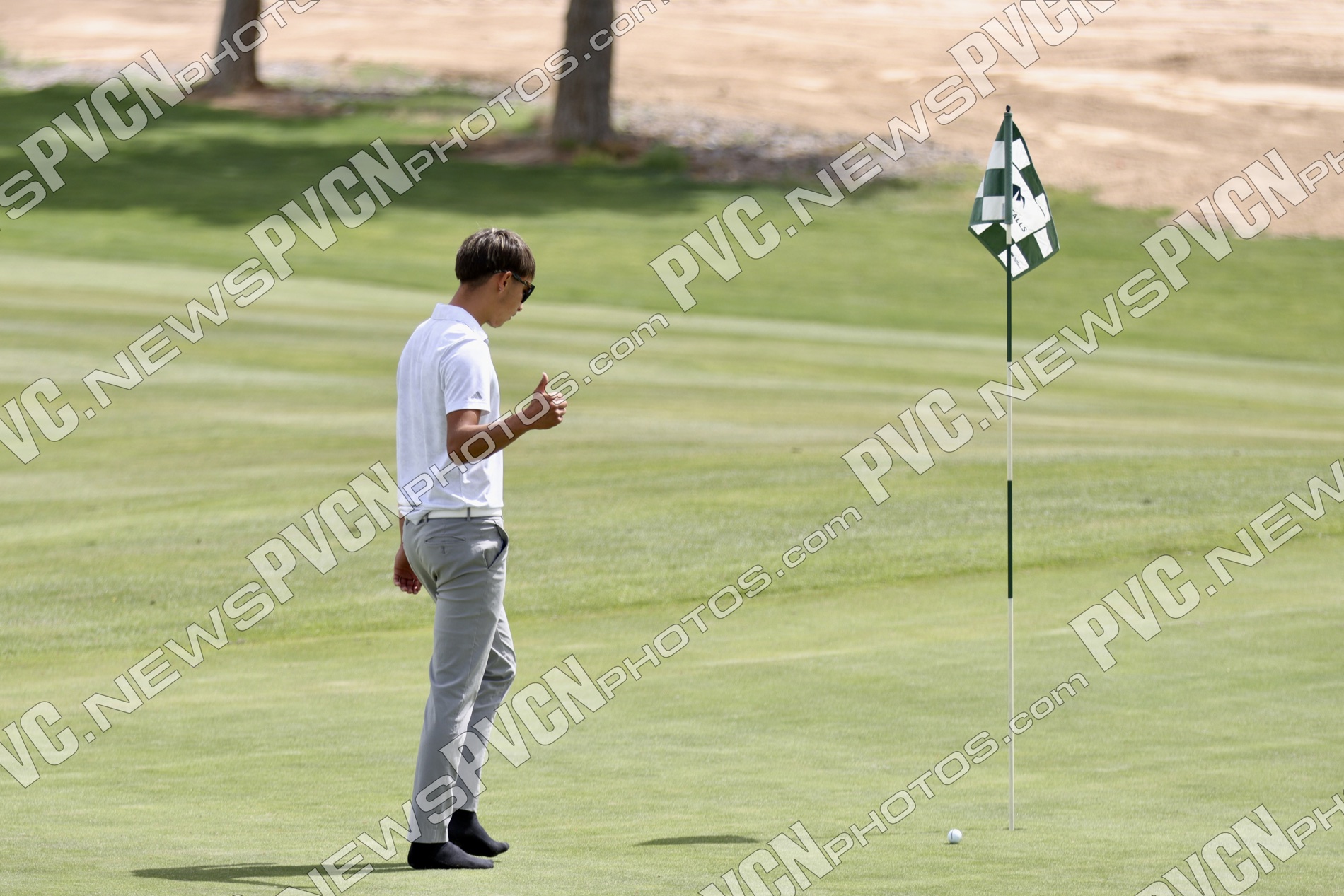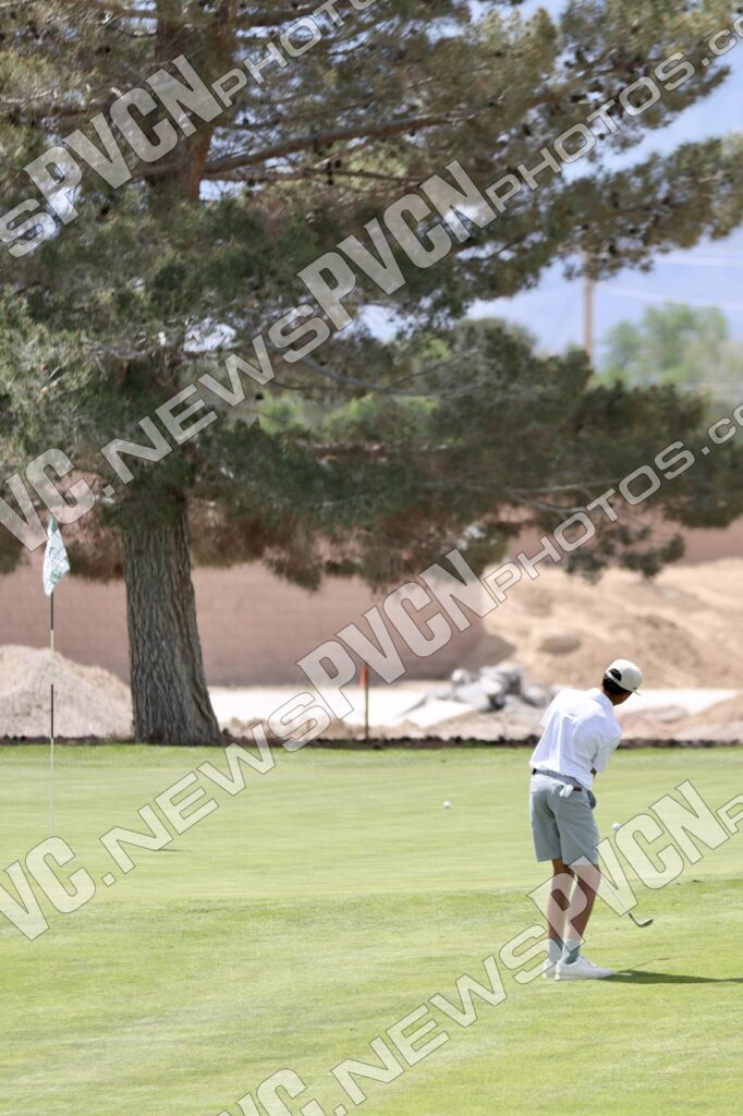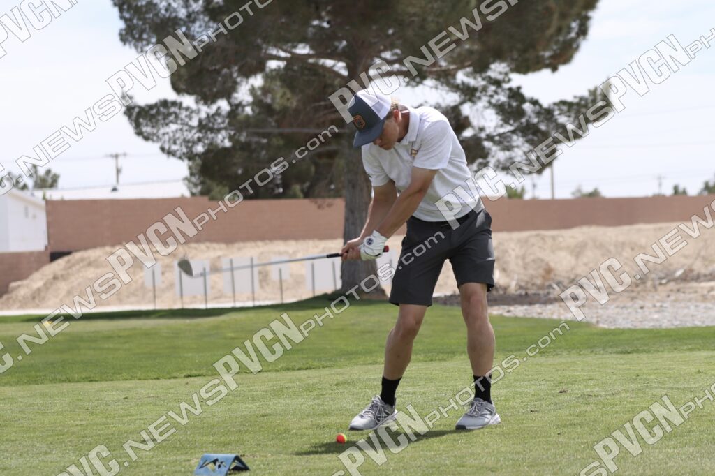 The Pahrump Valley High School boys’ golf team delivered a strong performance on its home course Monday, April 6, finishing second overall in a competitive 3A league match at Mountain Falls Golf Club, just four points behind the top team.