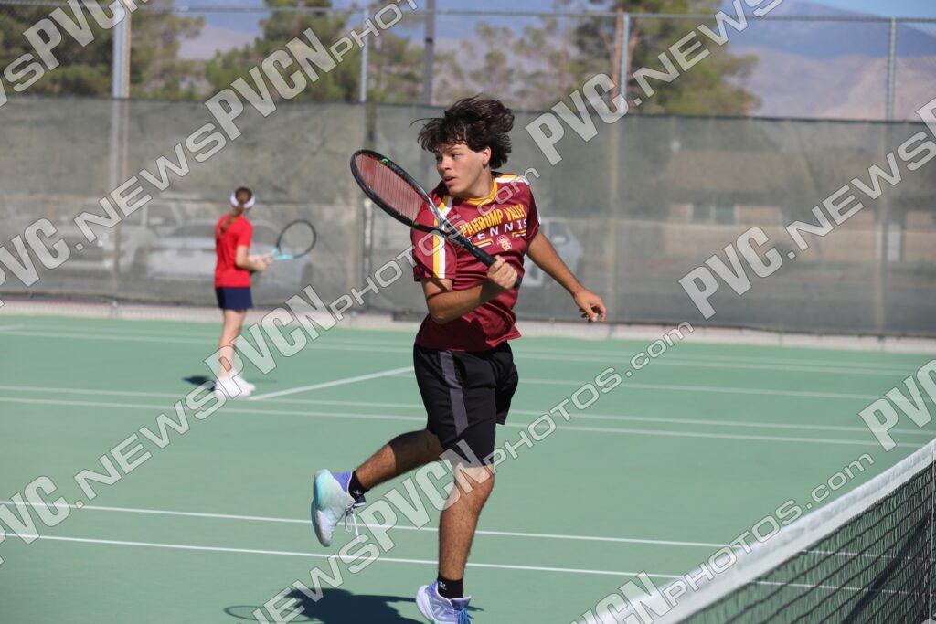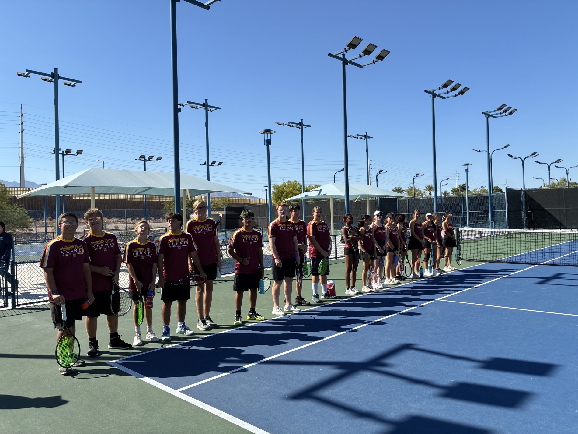 The Pahrump Valley High School Trojans tennis team traveled to Las Vegas on Tuesday, September 16, to face Adelson, bringing home both a victory and a challenge. The girls’ team secured a win by forfeit, while the boys fought through close sets to capture a 10-8 victory.