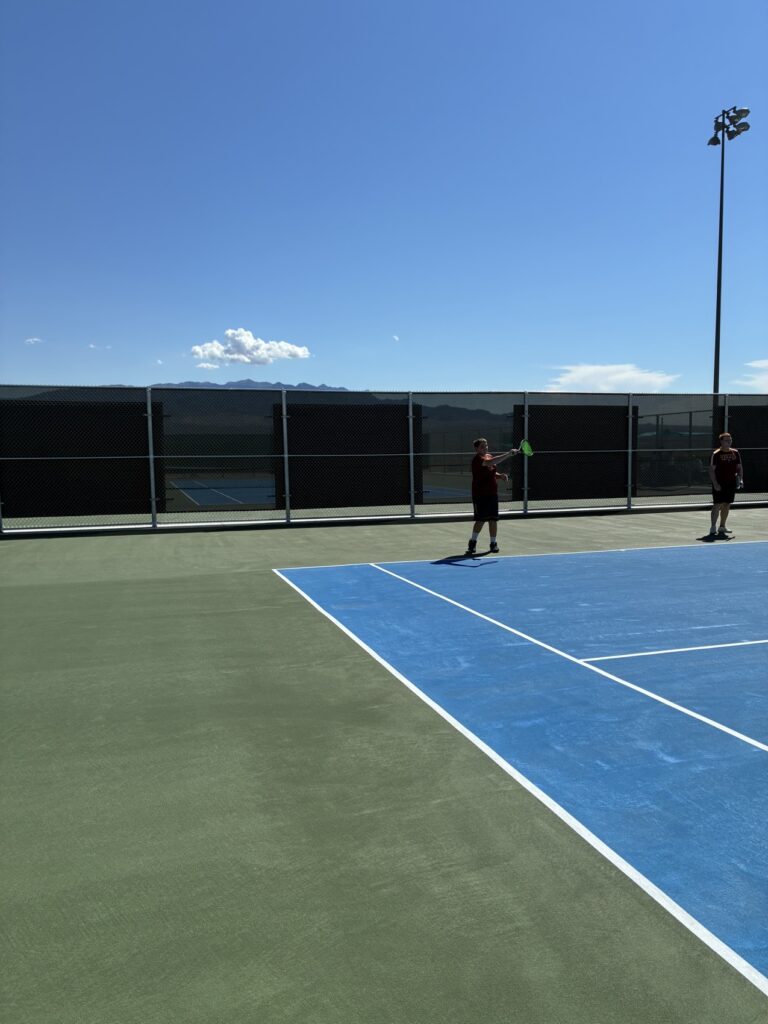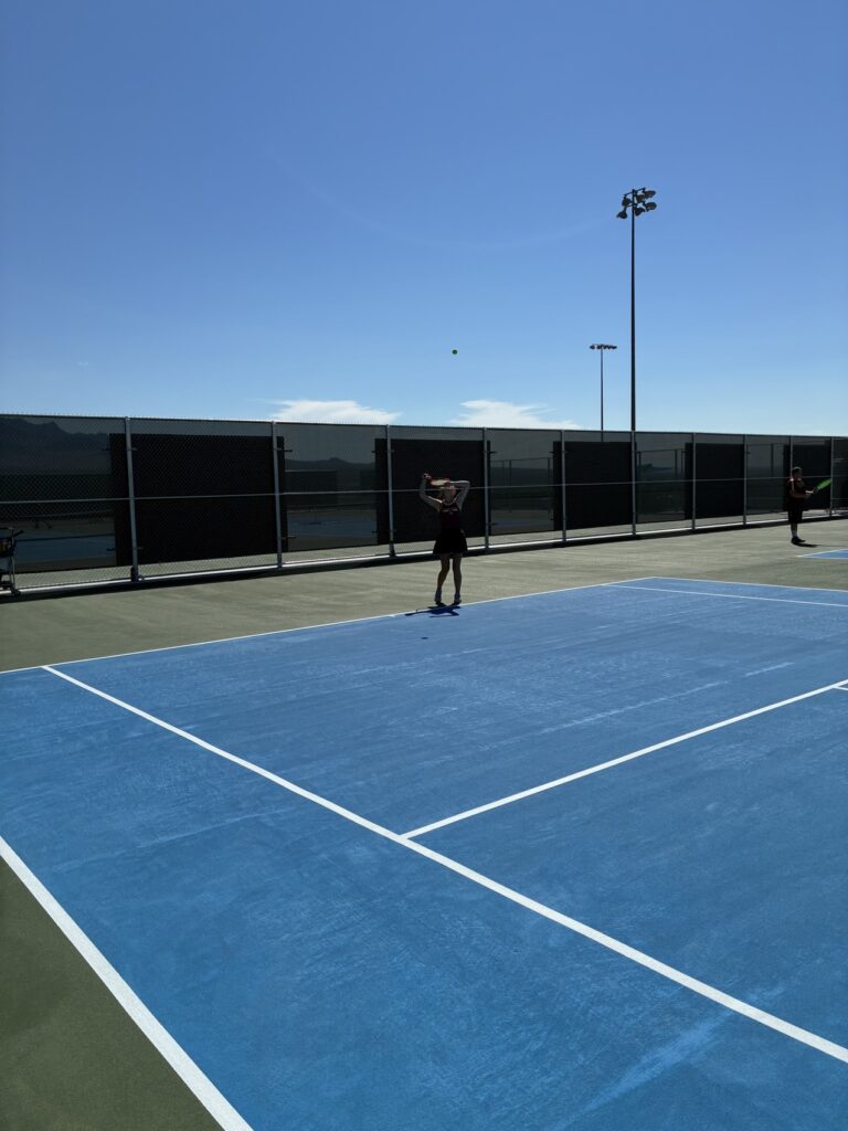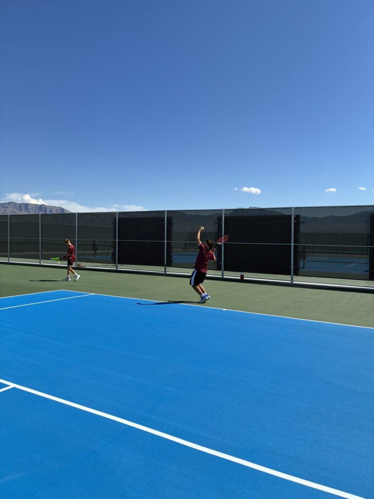 The Pahrump Valley High School tennis program had a strong showing against Virgin Valley High School, with both the boys and girls teams coming out on top in their matchups on the Bulldogs’ newly renovated courts. The Lady Trojans secured an 11-7 victory, while the boys team earned a 12-6 win.