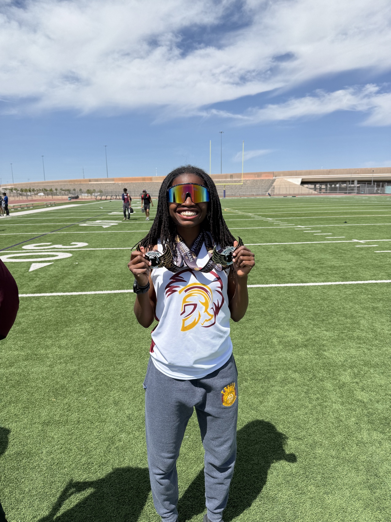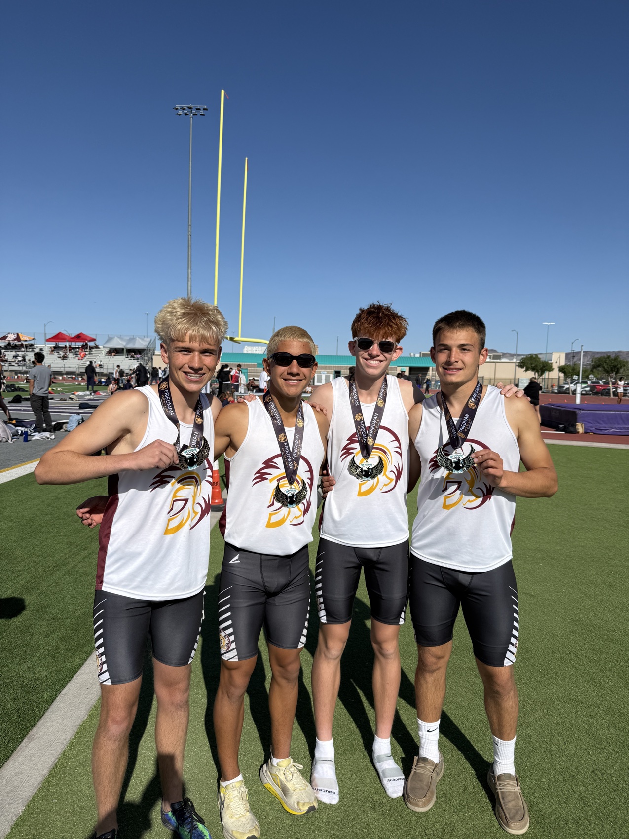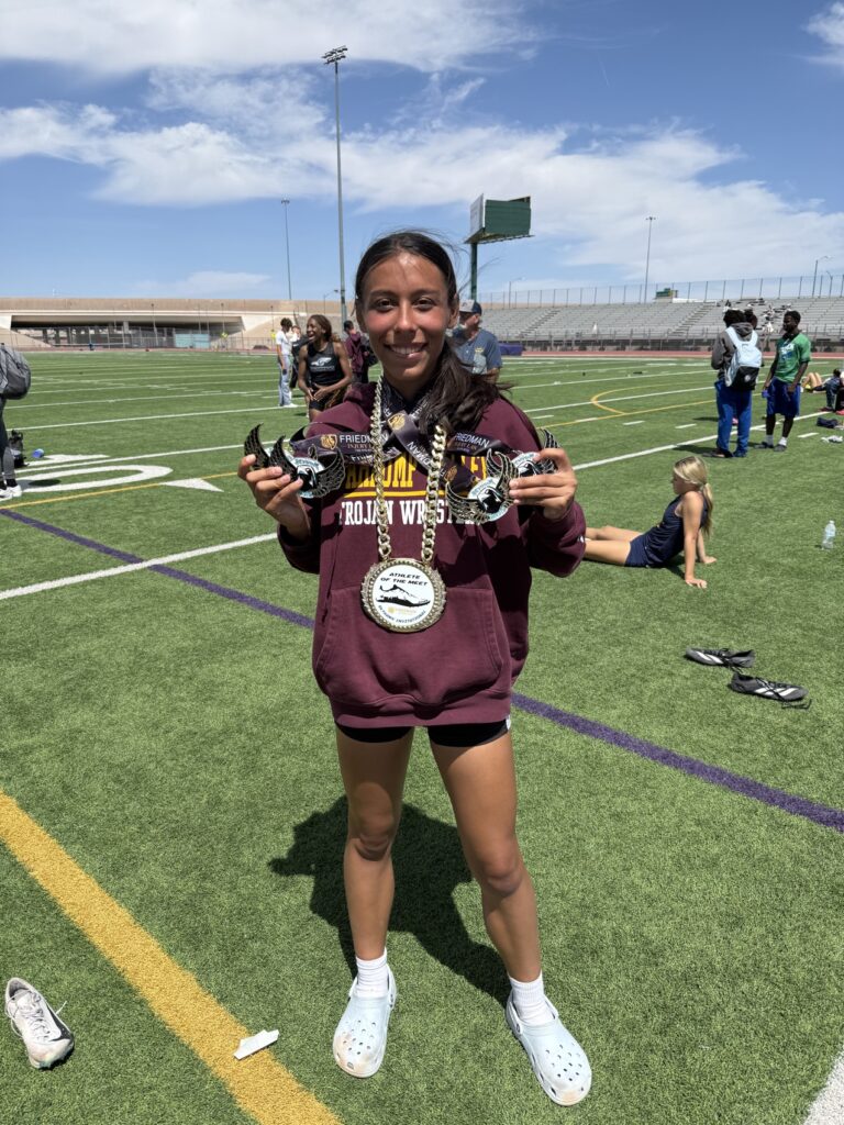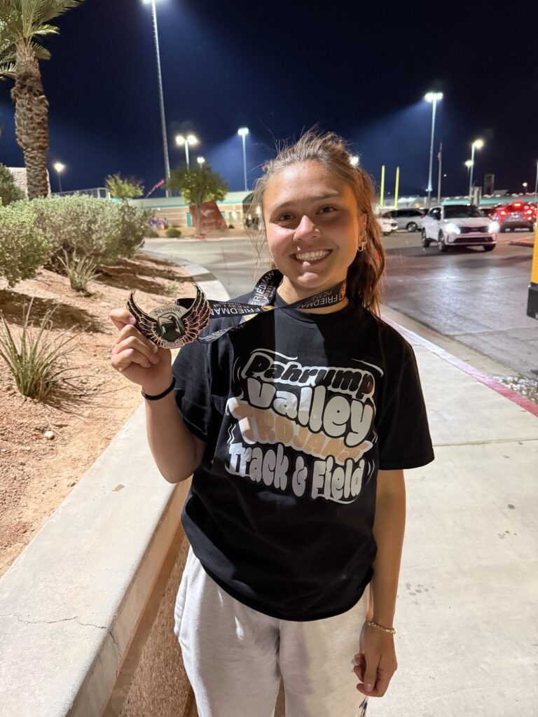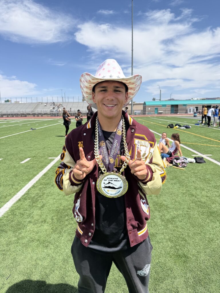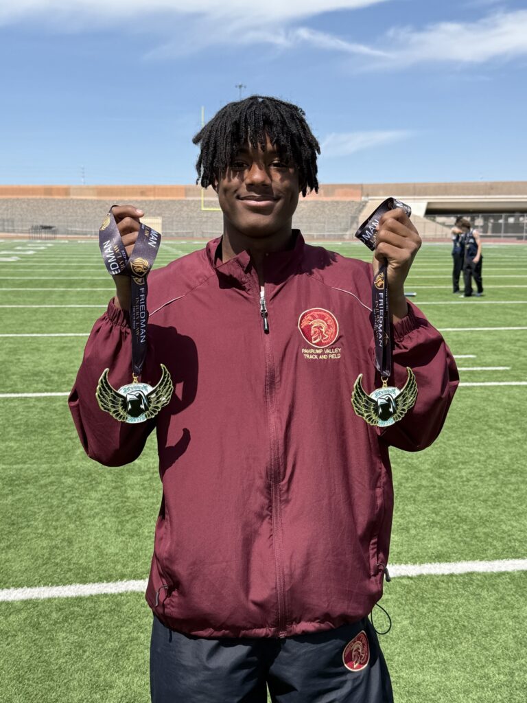 The Pahrump Valley High School varsity track and field team got a full preview of postseason competition at the Skyhawk Invitational, held April 17–18 at Silverado High School. Structured to mirror the format of regional and state meets, the two-day event challenged athletes across a wide range of events, with only the throwing competitions absent due to facility limitations.