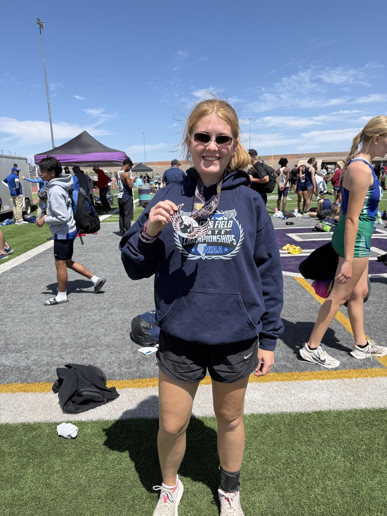 Field events on the first day produced strong marks as well. Jayden Crisler won the boys triple jump among small schools with a jump of 43 feet, while Daniel Thompson reached 33 feet, 7.25 inches. In the girls long jump, Diona Nixon placed third in small schools at 15 feet, 4 inches, followed by Savannah Thompson at 14 feet, 8 inches and Sedona Norton at 14 feet, 0.5 inches. Crisler also cleared 9 feet in the boys pole vault, while Kimberly Trejo and Aurora Bowers each cleared 4 feet, 6 inches in the high jump, with Bowers marking a personal best.