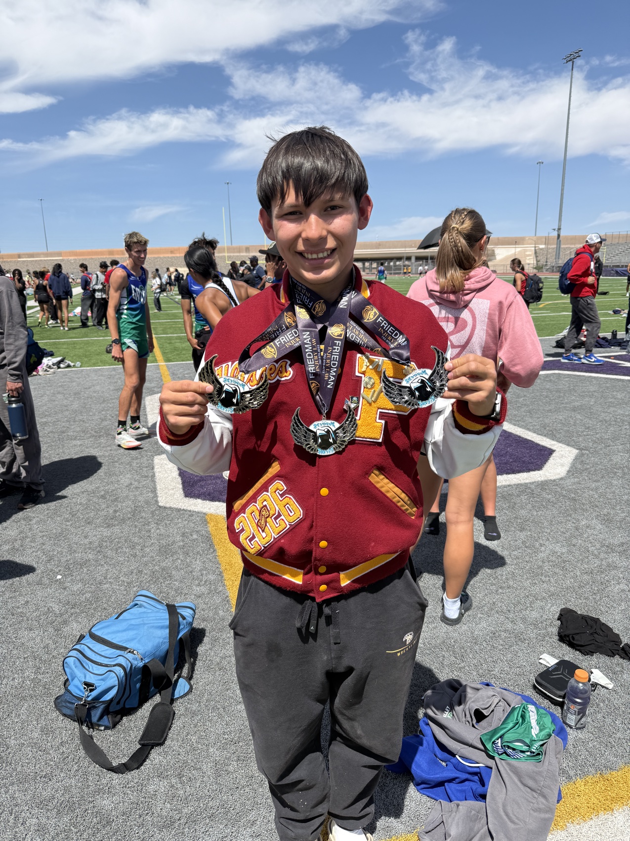 The meet concluded with the 4×400 relays, where the boys team of Wulfenstein, Kris Trejo, Slusher and Evan Strain ran 3:52.85 to place second in small schools. The girls team of Ella Odegard, McKinsey Nottingham, Avery Farruggia and Anjolina Mercado also took second in small schools with a time of 4:47.03.