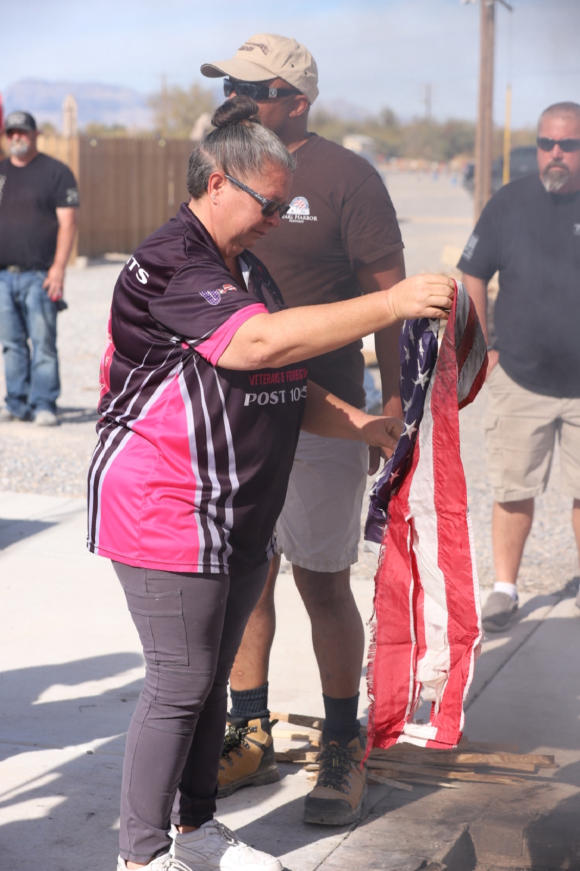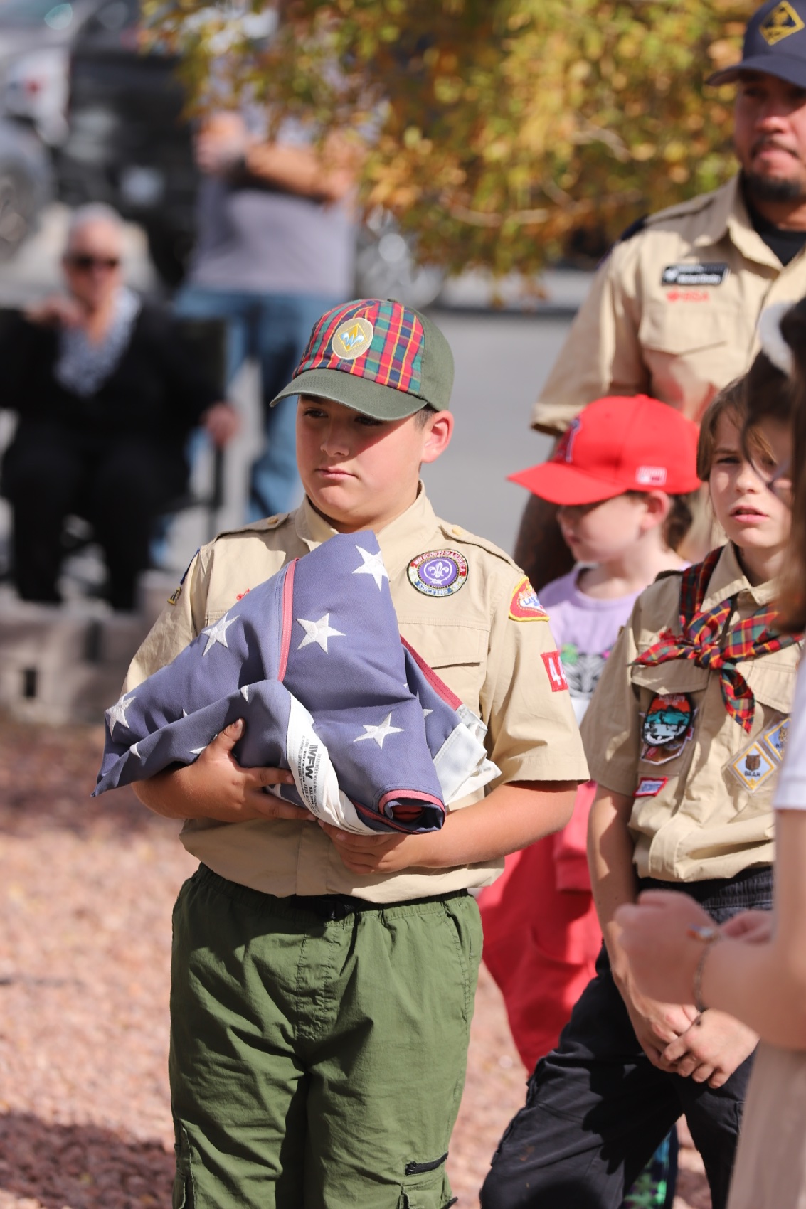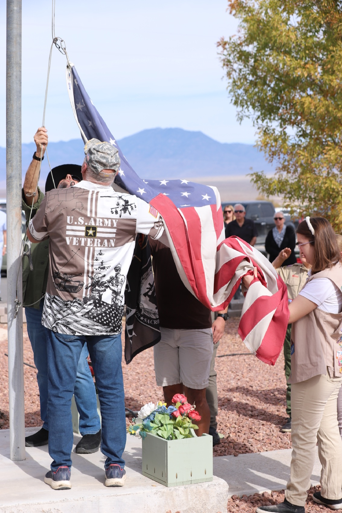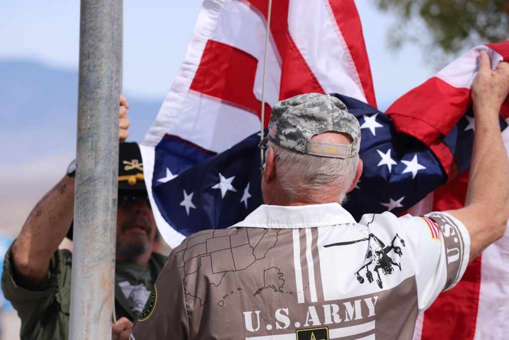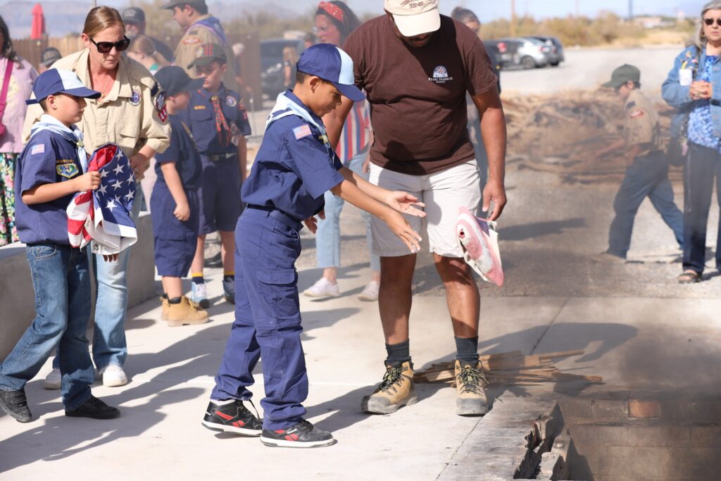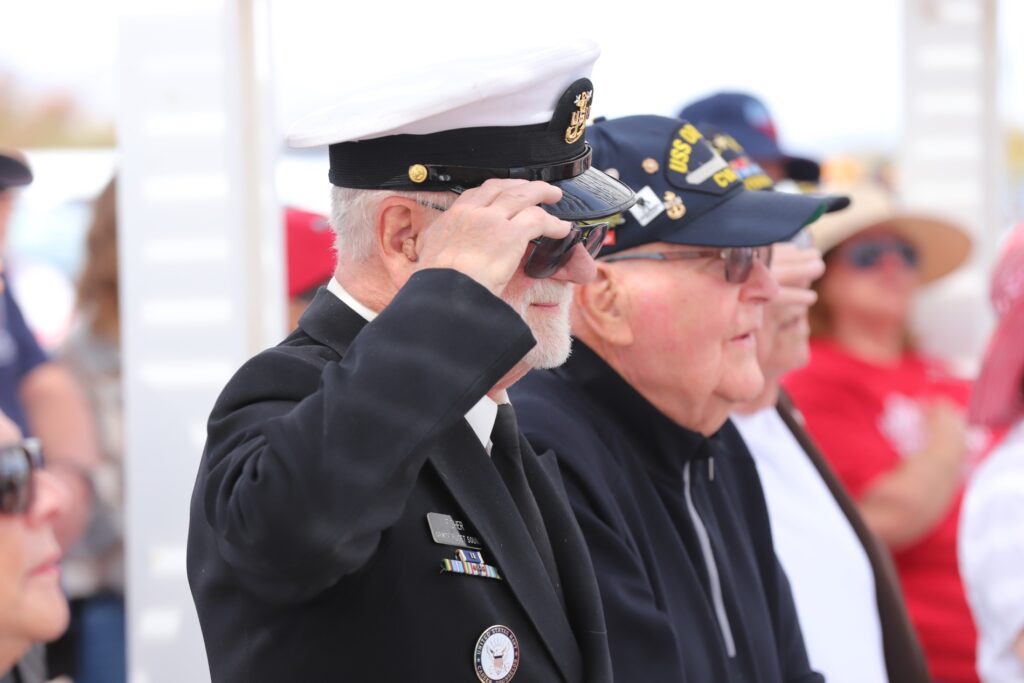The event included a moving flag retirement ceremony, with local scouts learning how to properly fold the flag as well as carefully burning flags as a way to respectfully retire worn American flags. “We are not in distress,” one veteran joked warmly to the crowd, earning a ripple of laughter before solemnly continuing the ritual. Others in the audience were invited to participate in this part of the ceremony in honor of any veterans they may know.