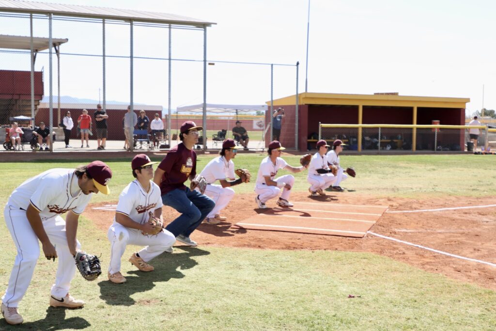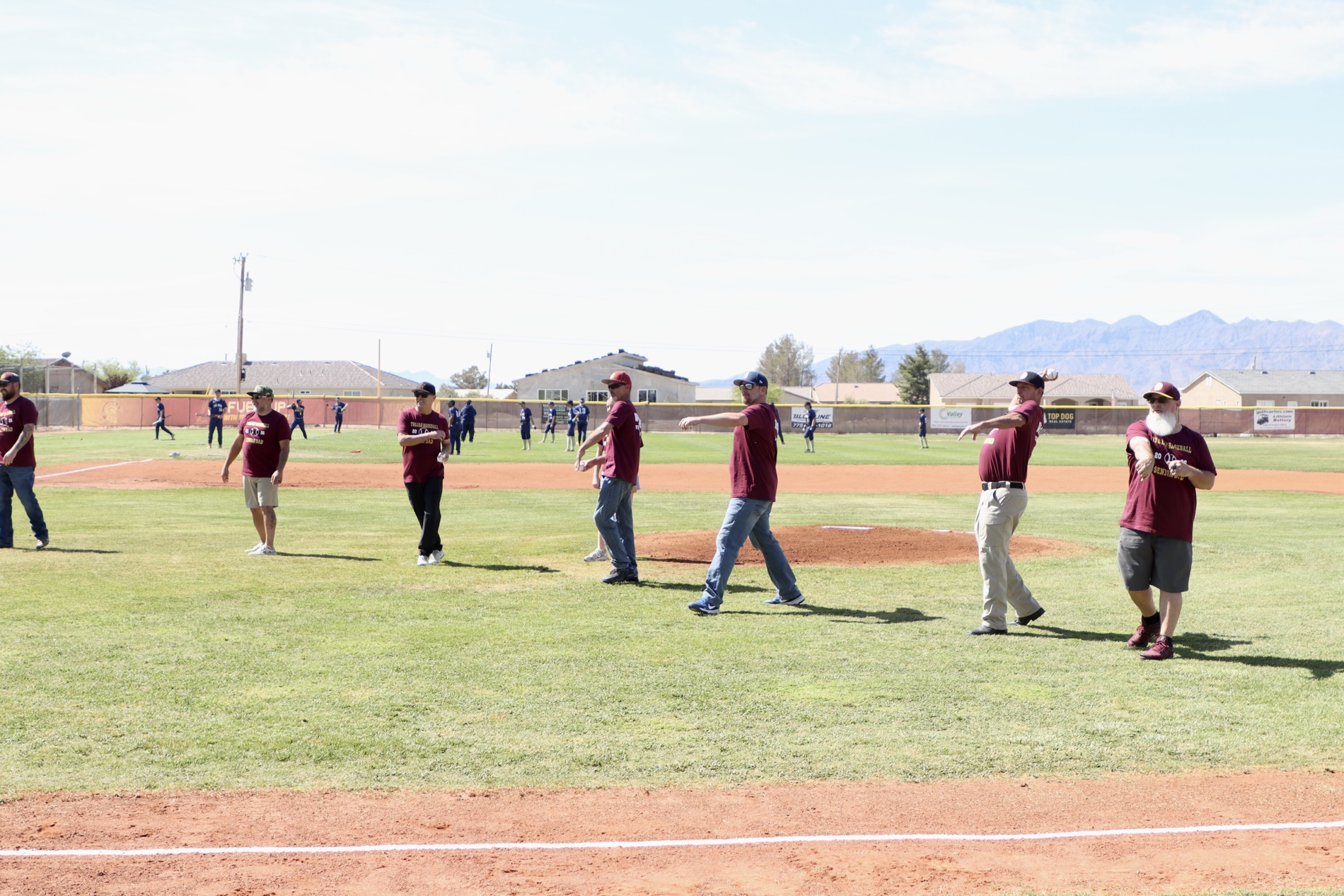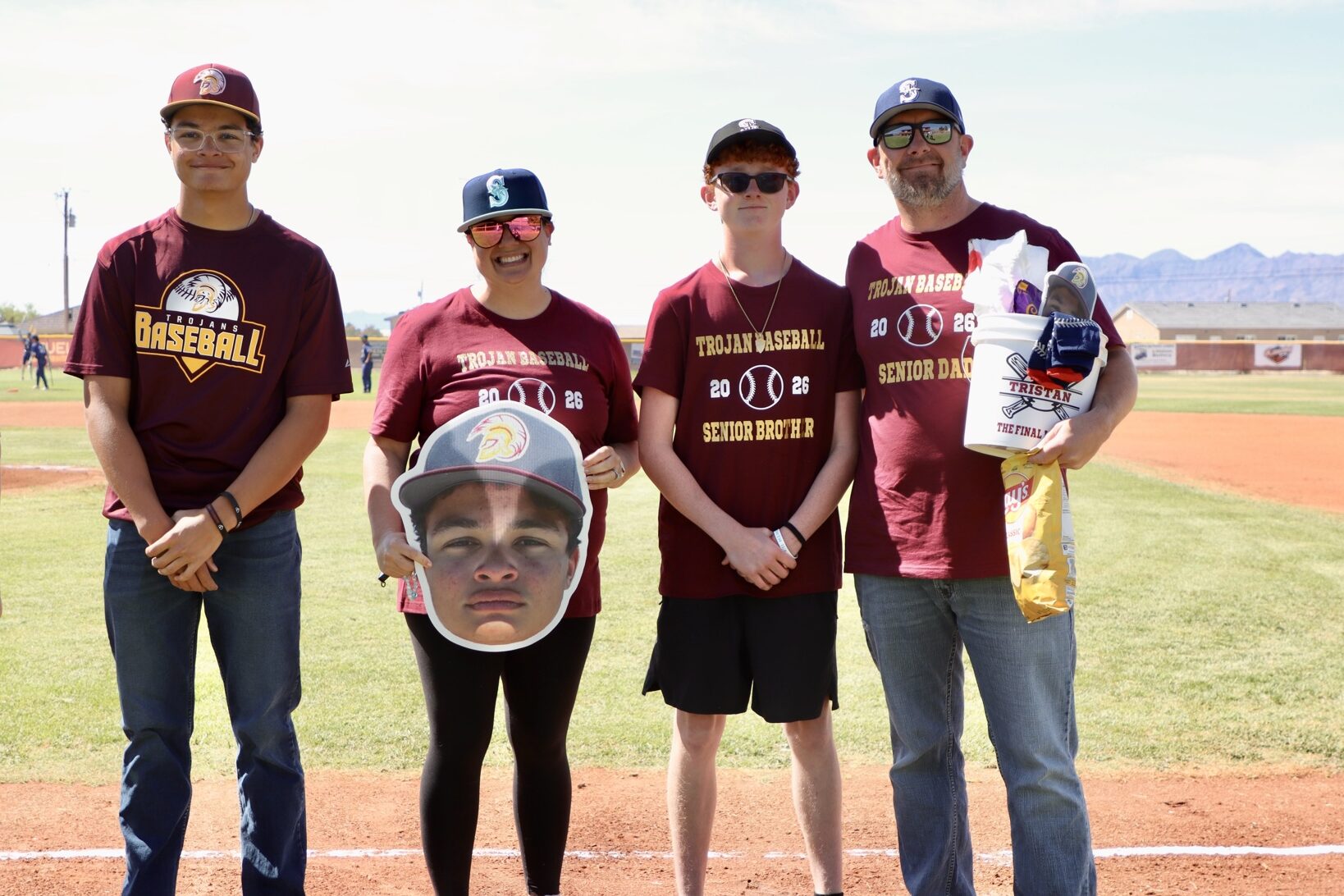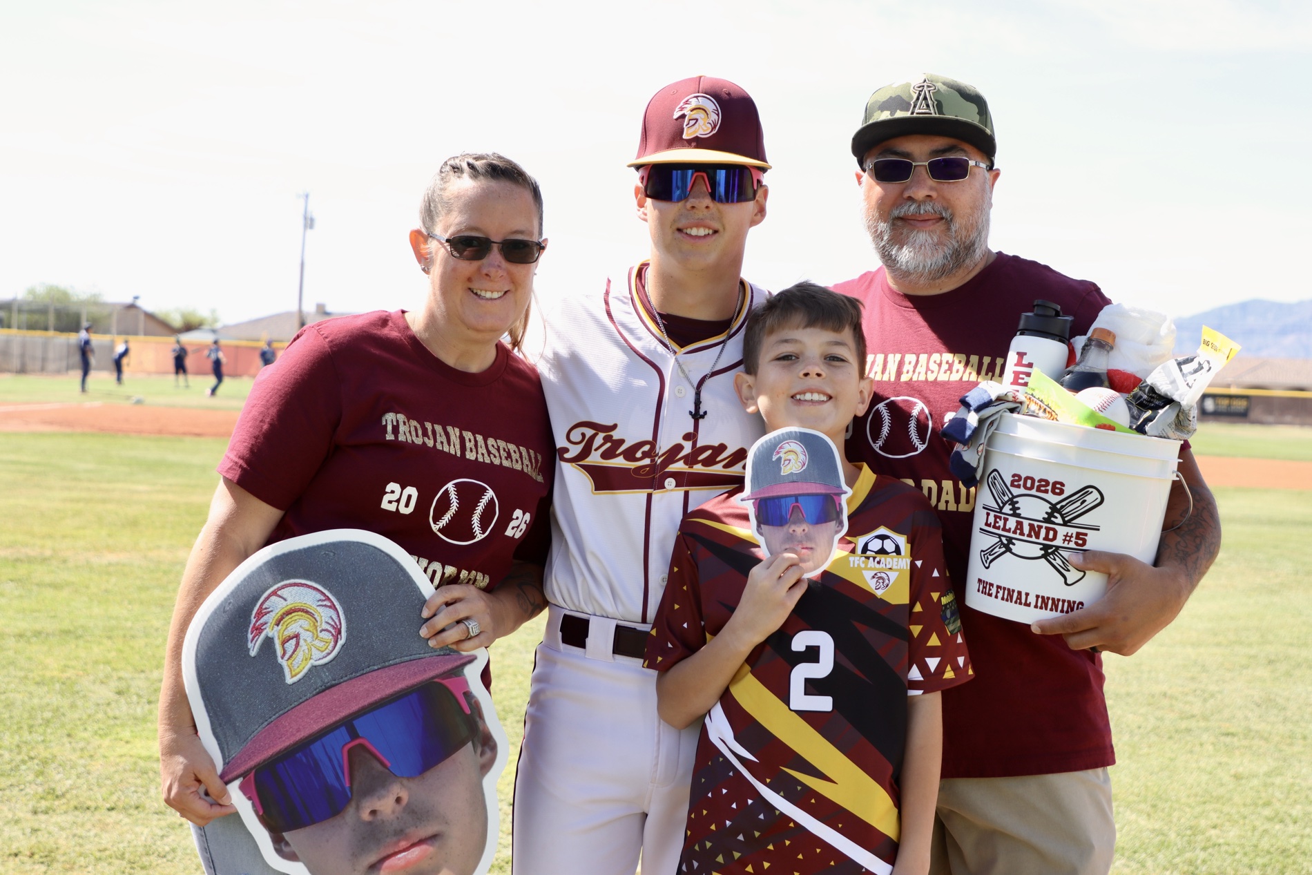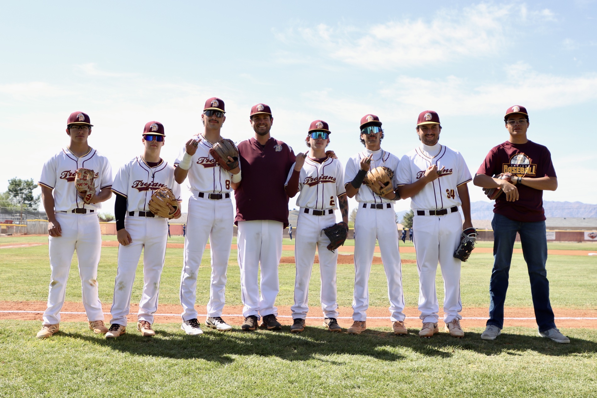Before the first pitch was even thrown, Saturday’s matchup between Pahrump Valley High School and Lake Mead Christian carried a special meaning. The Trojans honored their senior class—Manager Tristan Brown, and players Dominic Chiancone, Leland Delgado, Kayne Horibe, Jack Walker, Vinny Whitney, and Dominik Wilson—alongside their families in a pregame ceremony that included a memorable first pitch from each senior’s father.