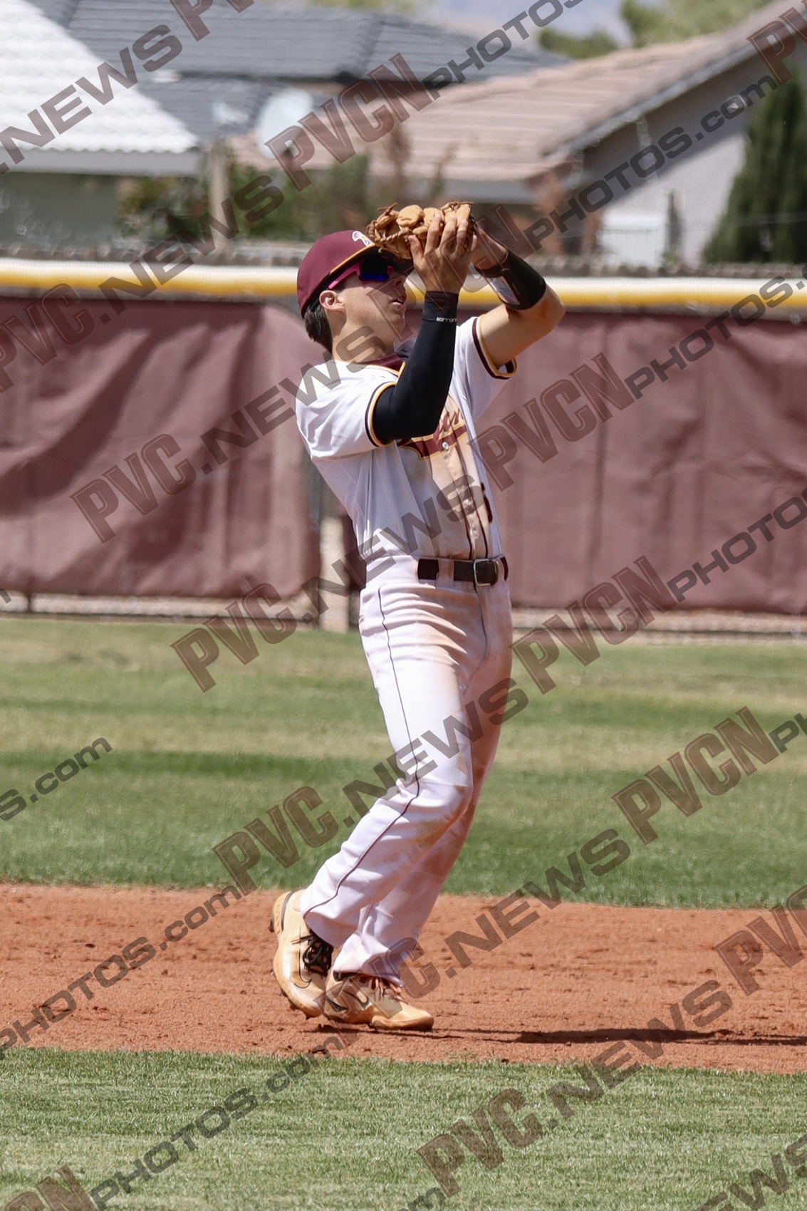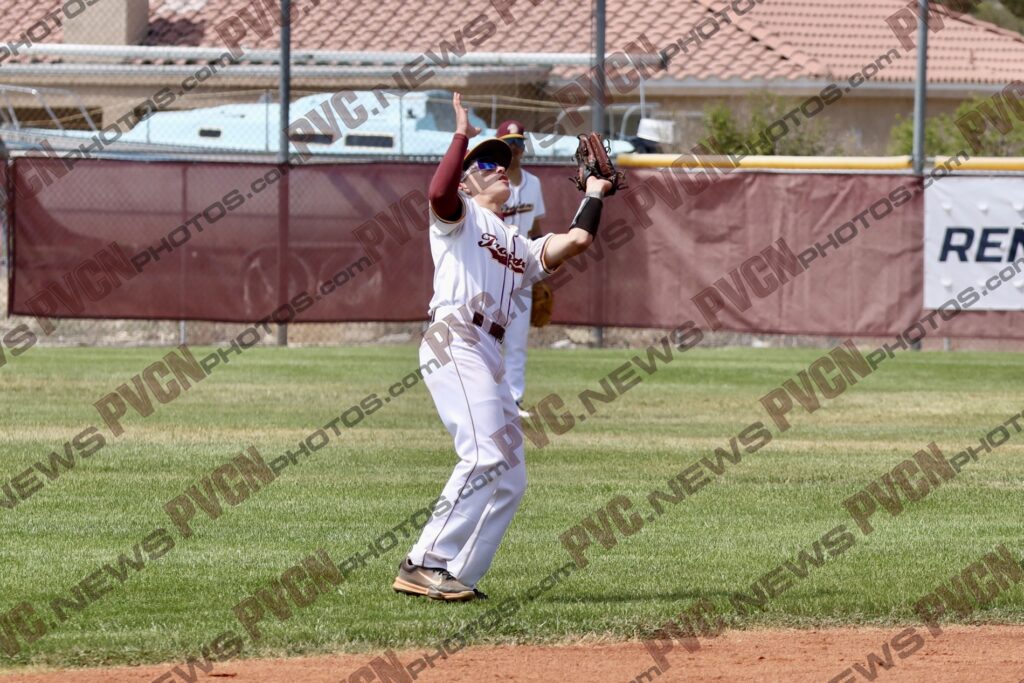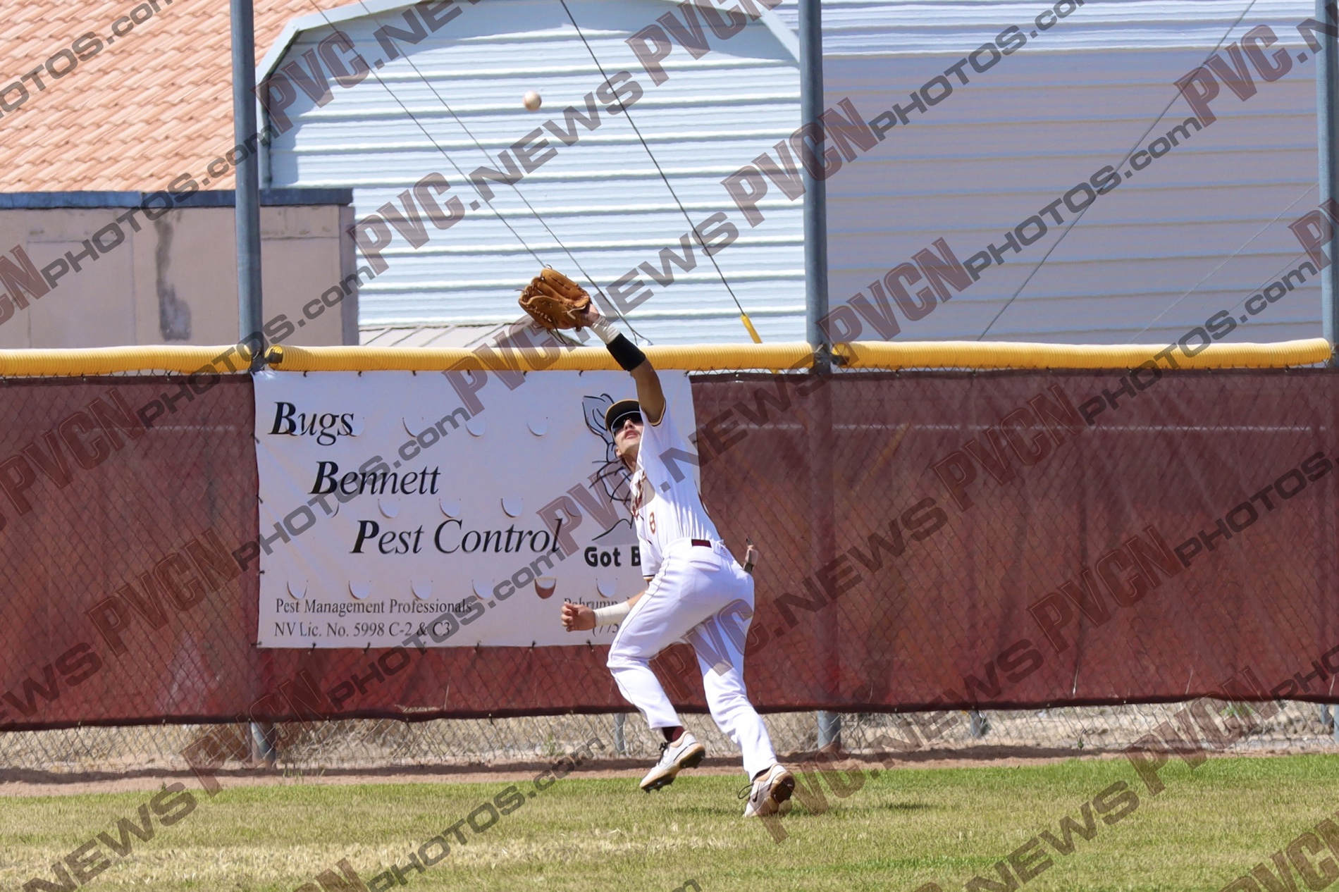 Lake Mead Christian threatened early in the top of the first, but Vinny Whitney, getting the start on the mound for Pahrump Valley, set the tone immediately with a strikeout to open the game. After a fly out made it two quick outs, the Eagles got a piece of a pitch and drove it deep into left-center. Their dugout erupted on contact, but Kayne Horibe tracked it all the way back to the fence, making a running catch to end the inning and quiet the momentum before it could build.