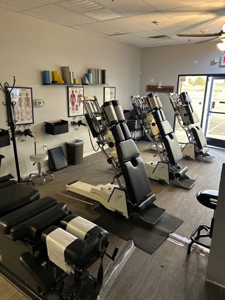 Walking into Pahrump Spine and Wellness, patients immediately notice that this is not a typical chiropractic office. The entire downstairs of the building is dedicated to patient care, with clearly defined areas designed to support every phase of recovery. The rehabilitation space features advanced isokinetic equipment used for strength, balance, and reflex training, alongside guided exercise stations tailored to each patient’s abilities. Massage chairs, traction, heat and electrical stimulation therapy, and laser treatment areas help reduce pain and inflammation while supporting the body’s healing process. Chiropractic adjustment and an in-house X-ray suite allow evaluation and treatment to happen seamlessly, while the Stretch area provides a dedicated space where patients work one-on-one with staff to learn proper stretching techniques that improve mobility and help maintain long-term progress.